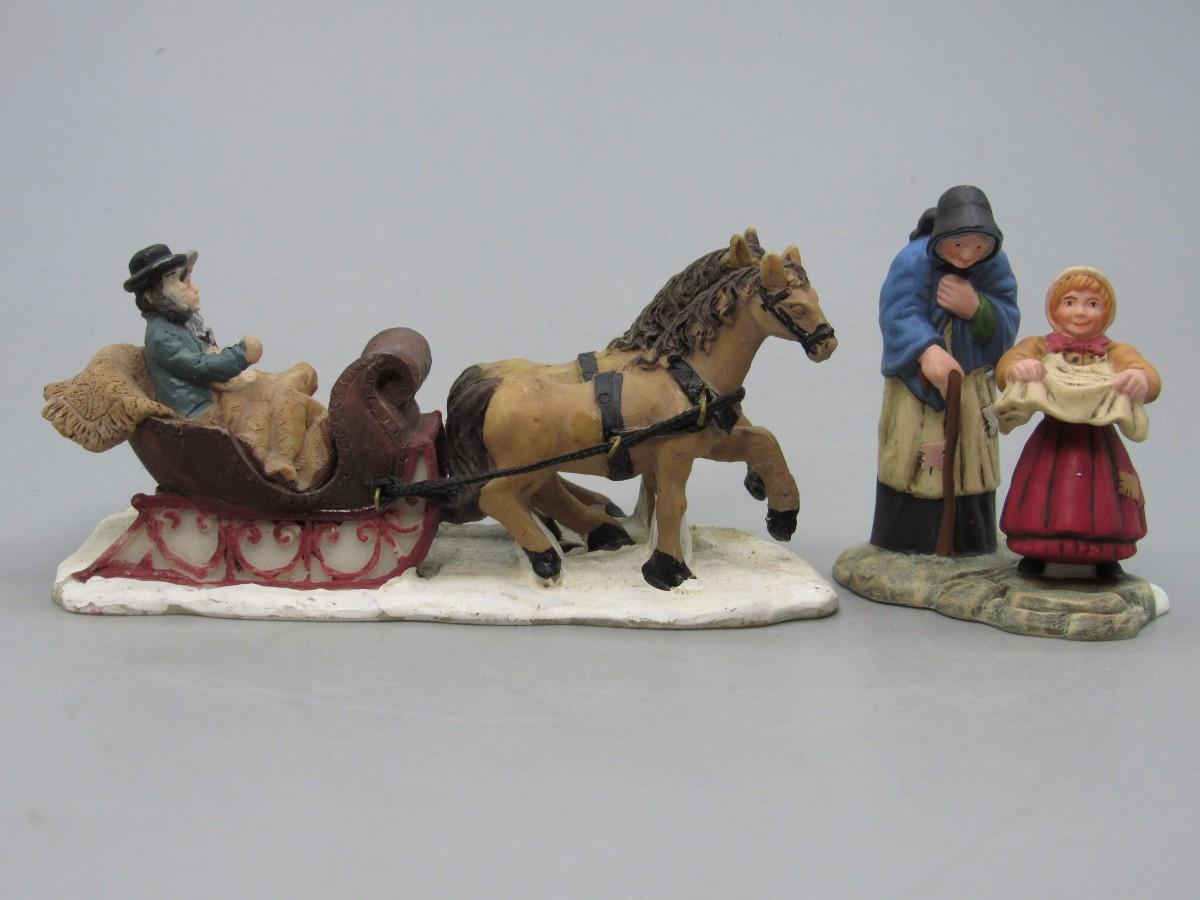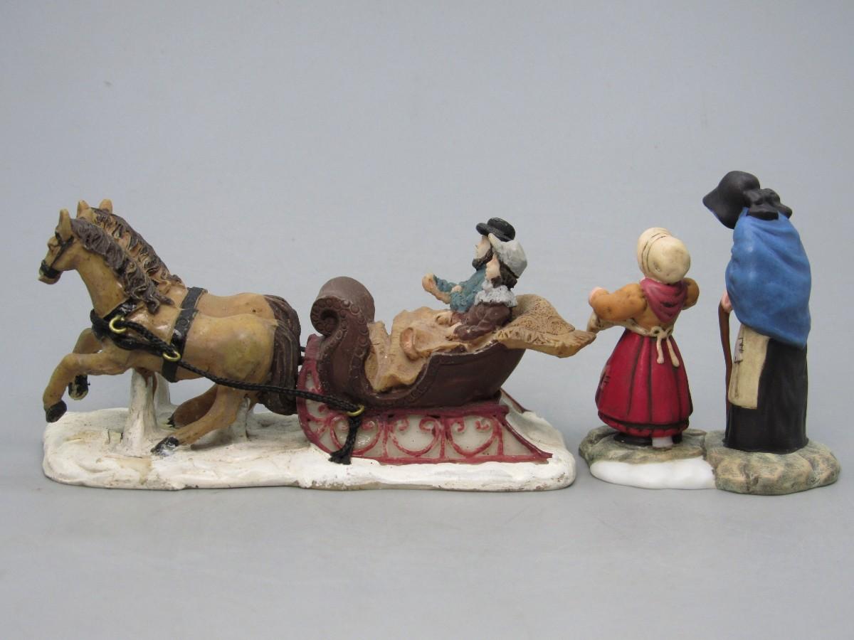 Department 56 Dickens Village Figurines & Horse Drawn Carriage Polyresin Collectible