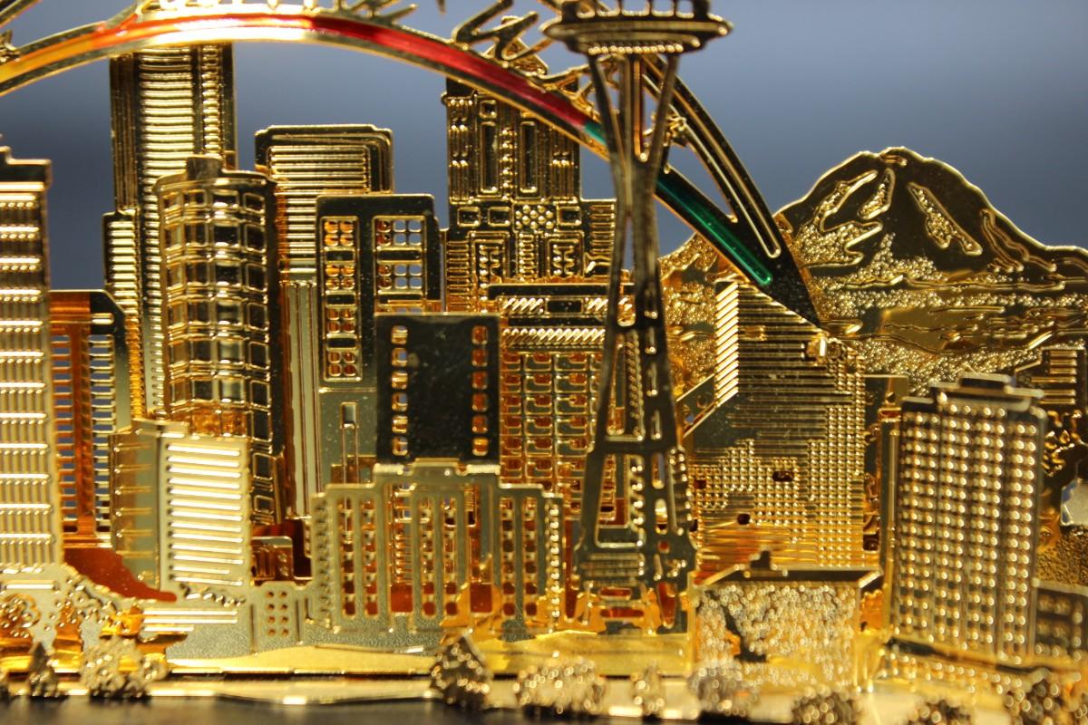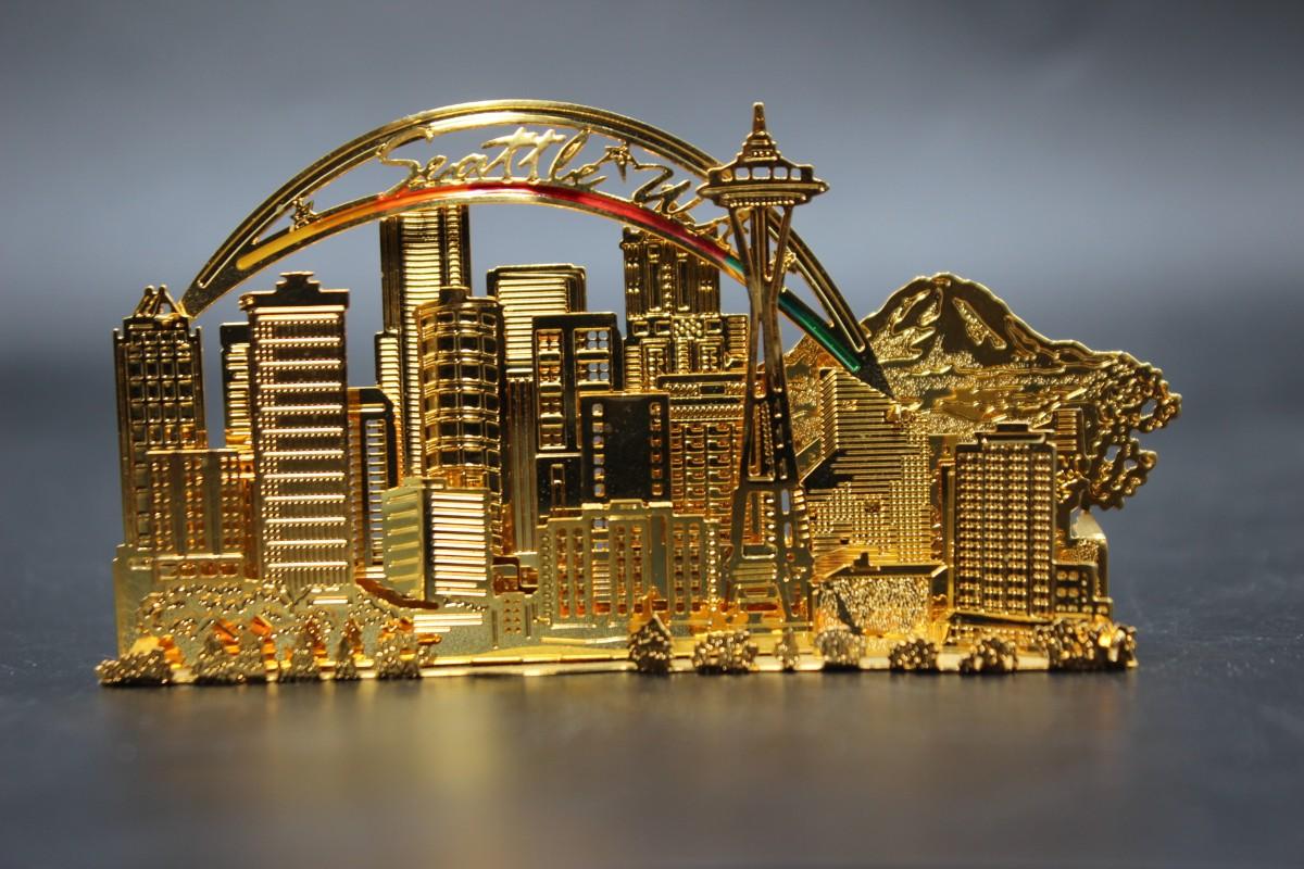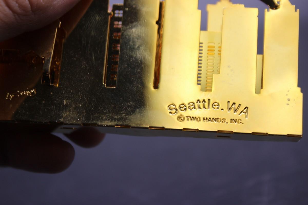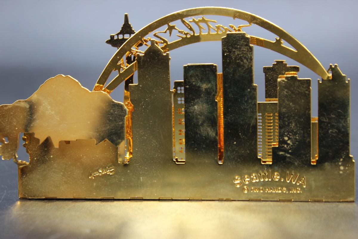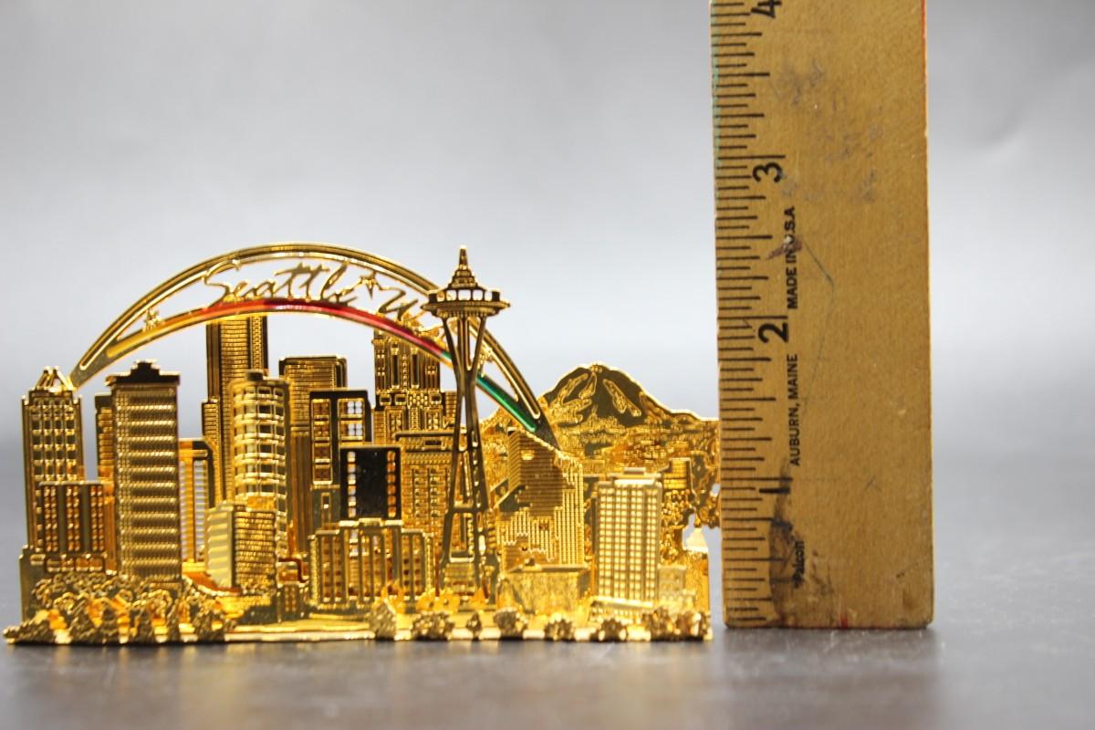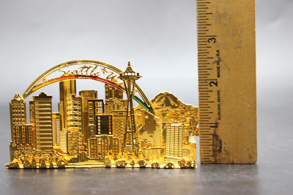 Shiny Brass Gold Tone Seattle Washington Skyline Vacation Souvenir Keepsake
