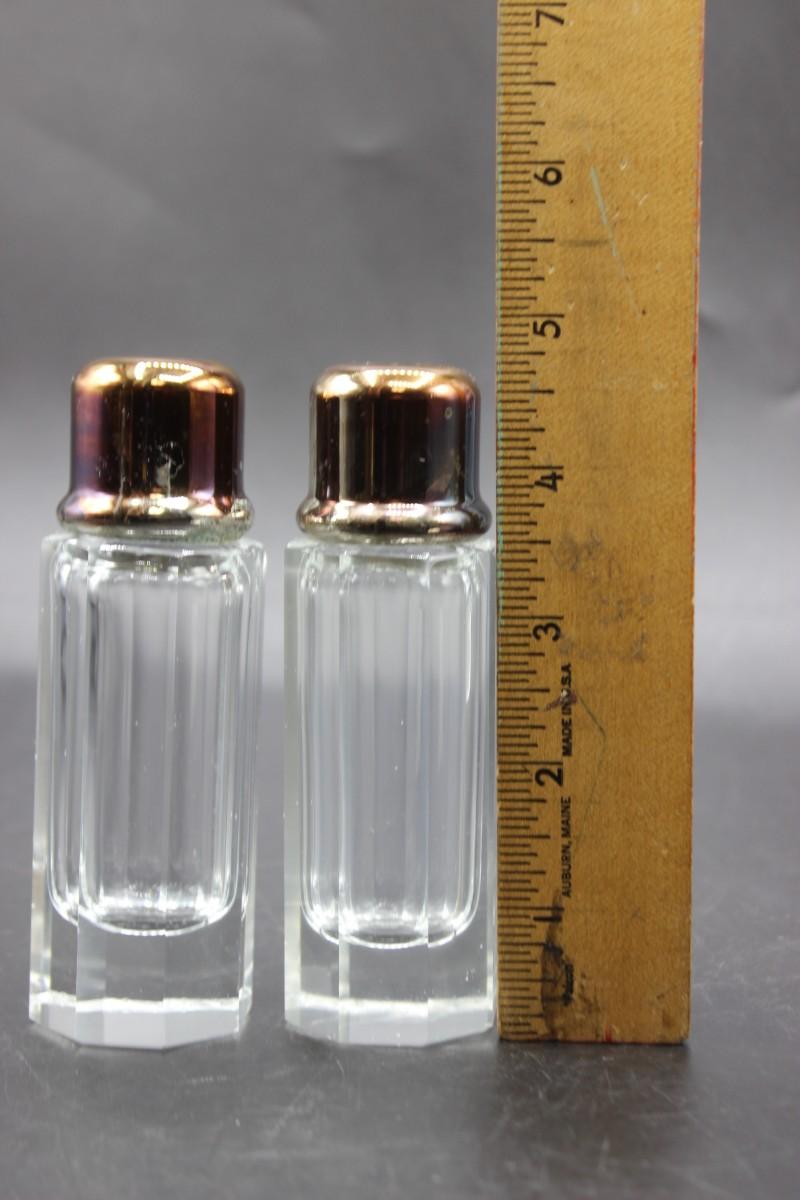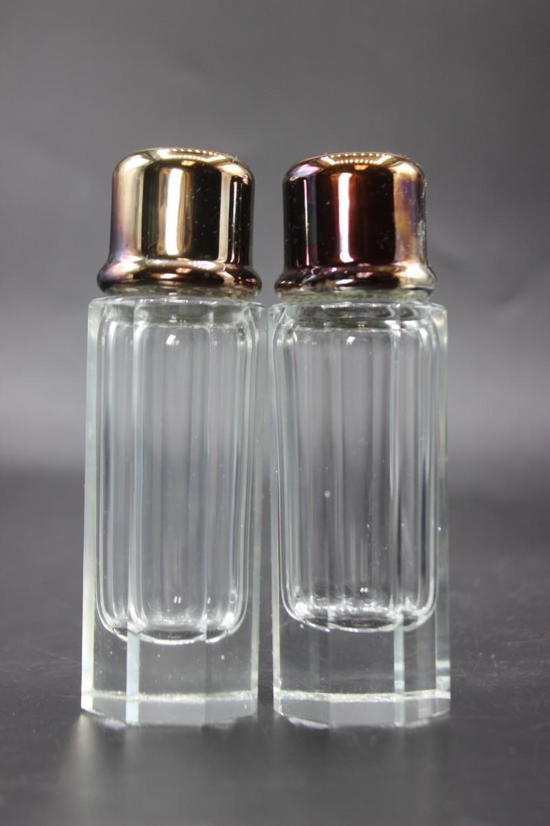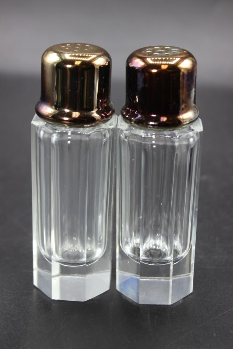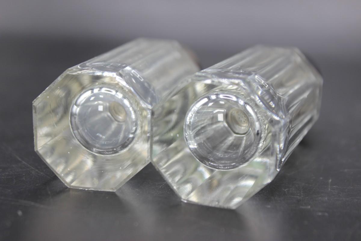 Vintage Mid Century Octagon Base Crystal Glass Salt & Pepper Shakers
