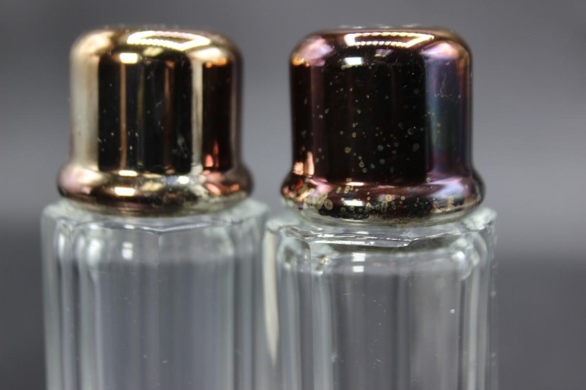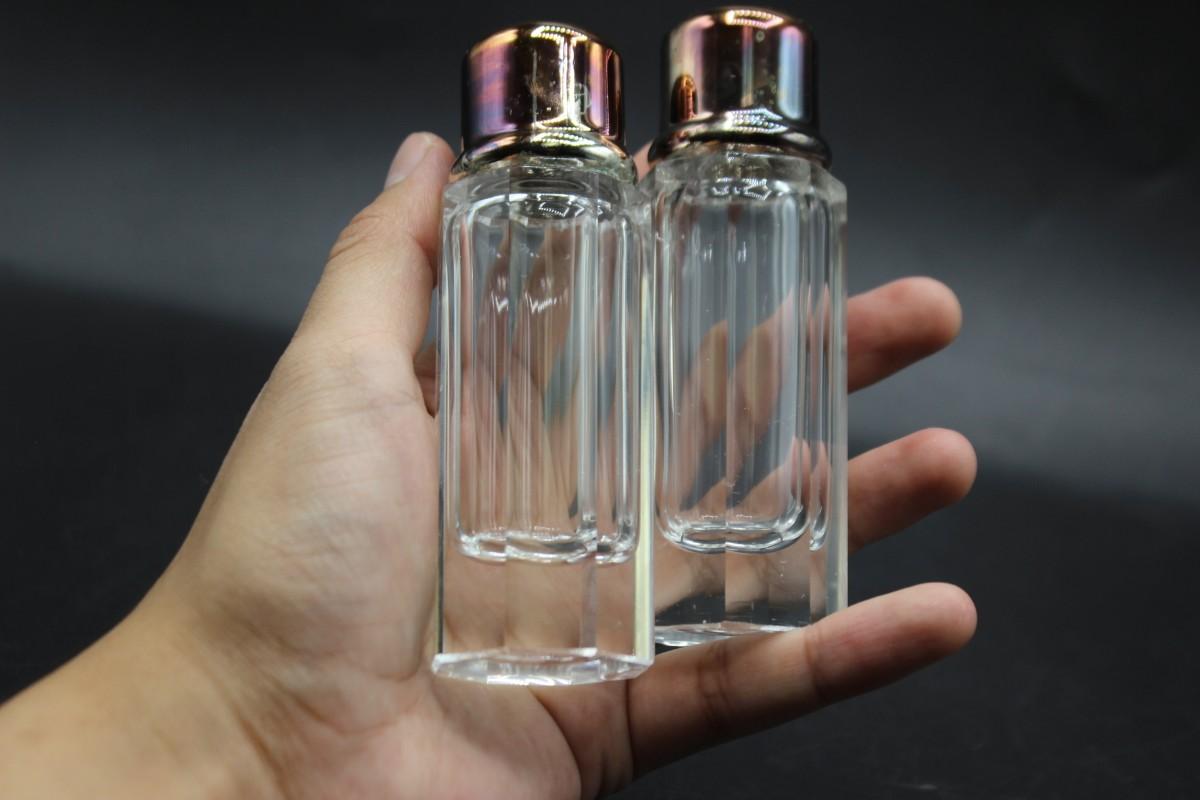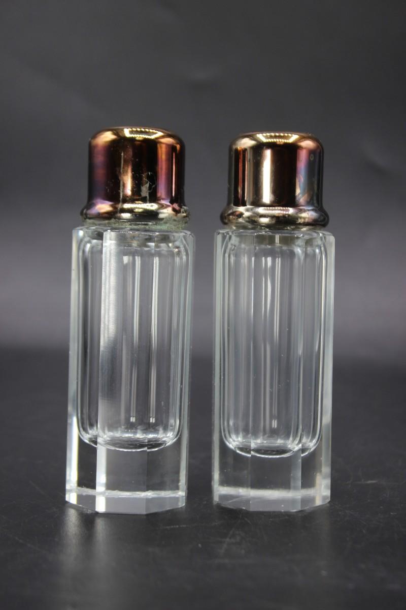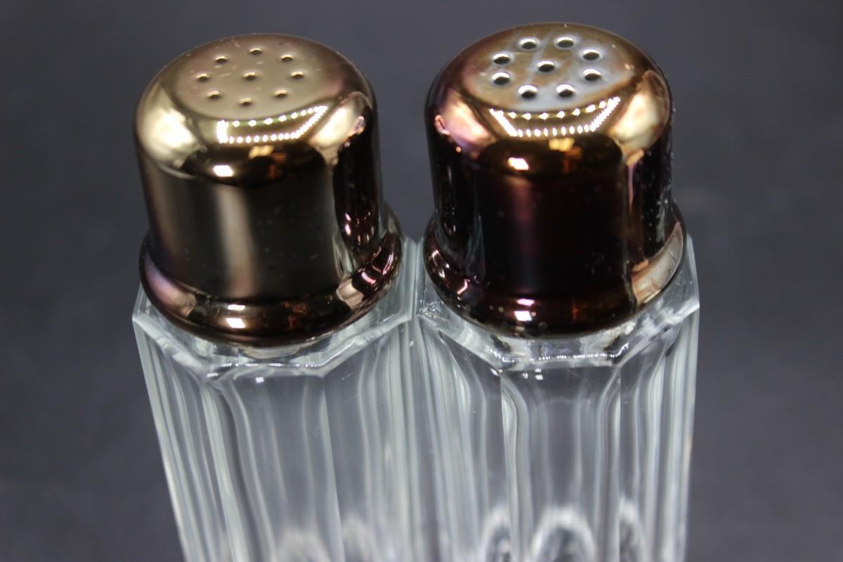 Vintage Mid Century Octagon Base Crystal Glass Salt & Pepper Shakers