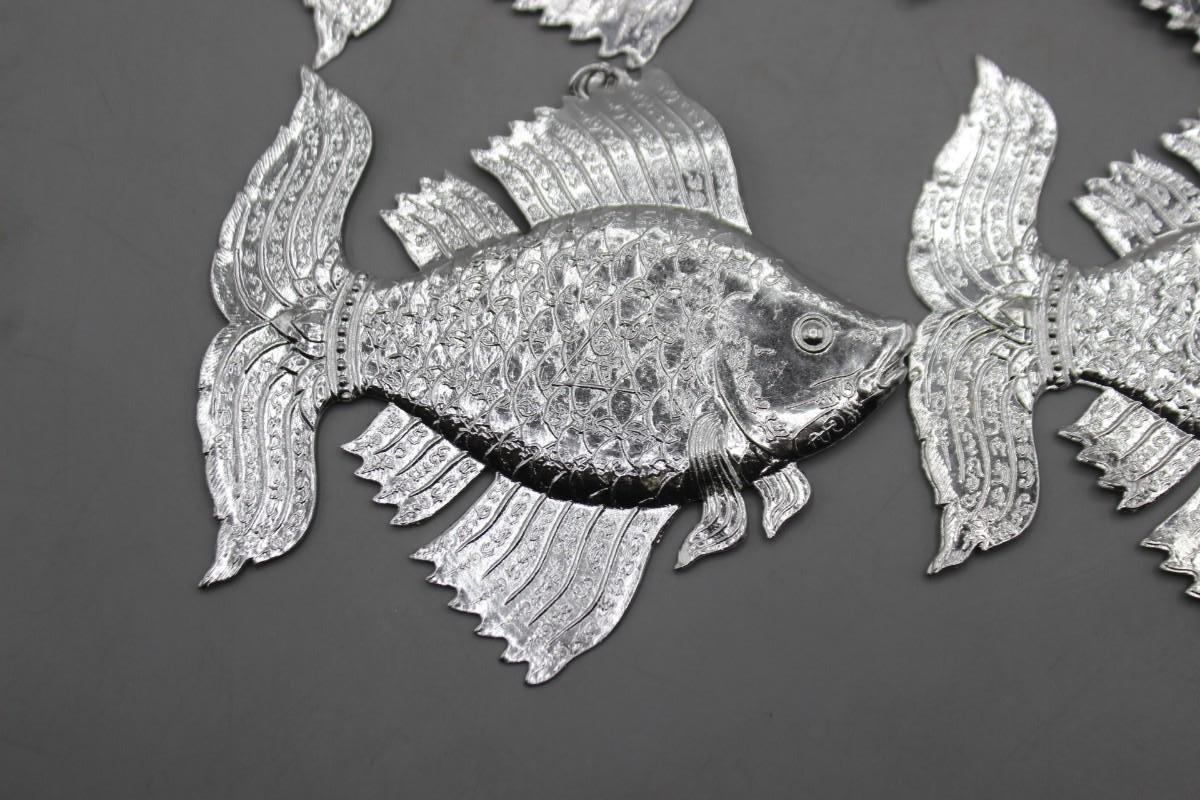 Silver Thin Tin Metal Elegant Detailed Fish Hanging Taiwanese Decor
