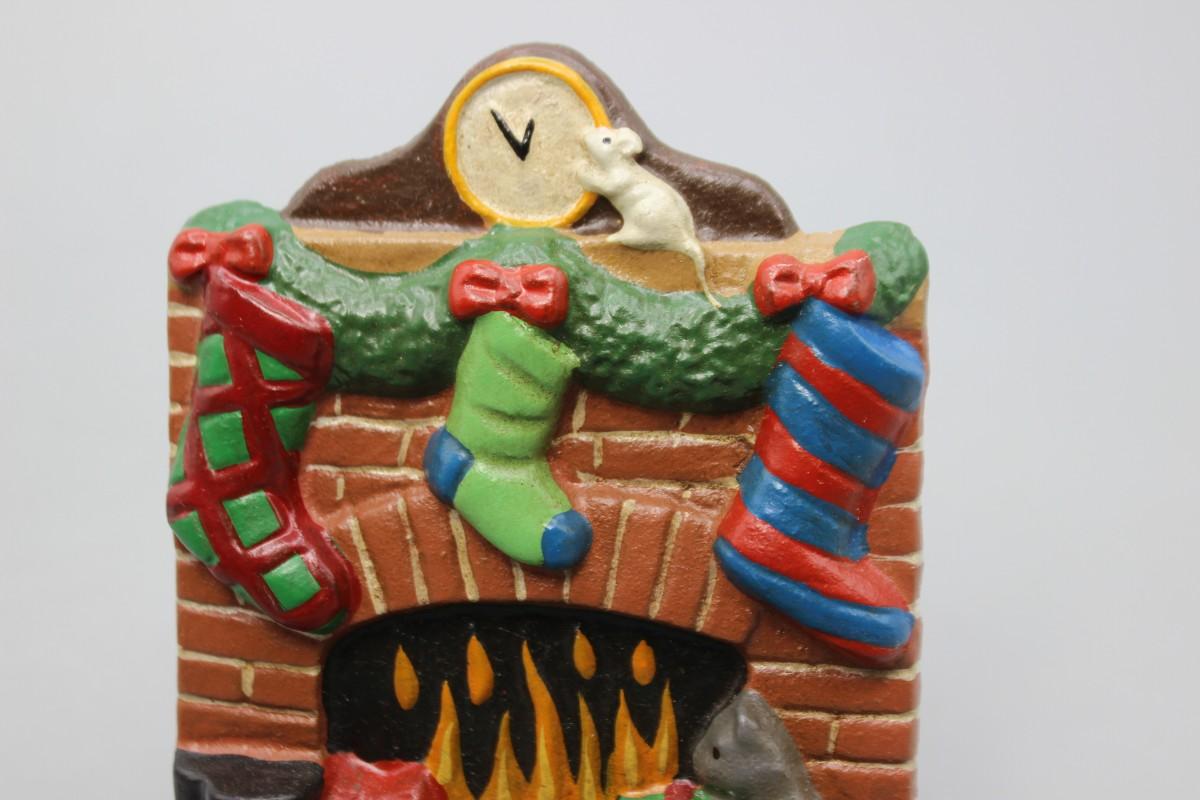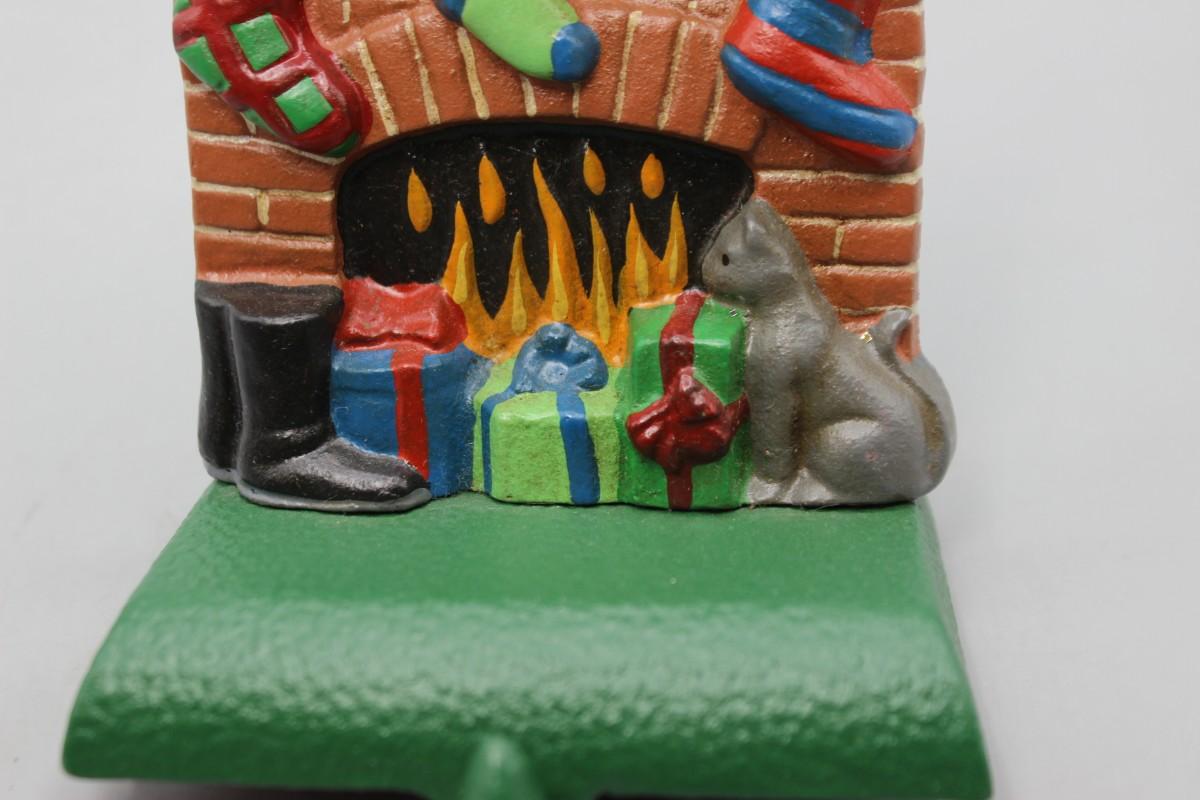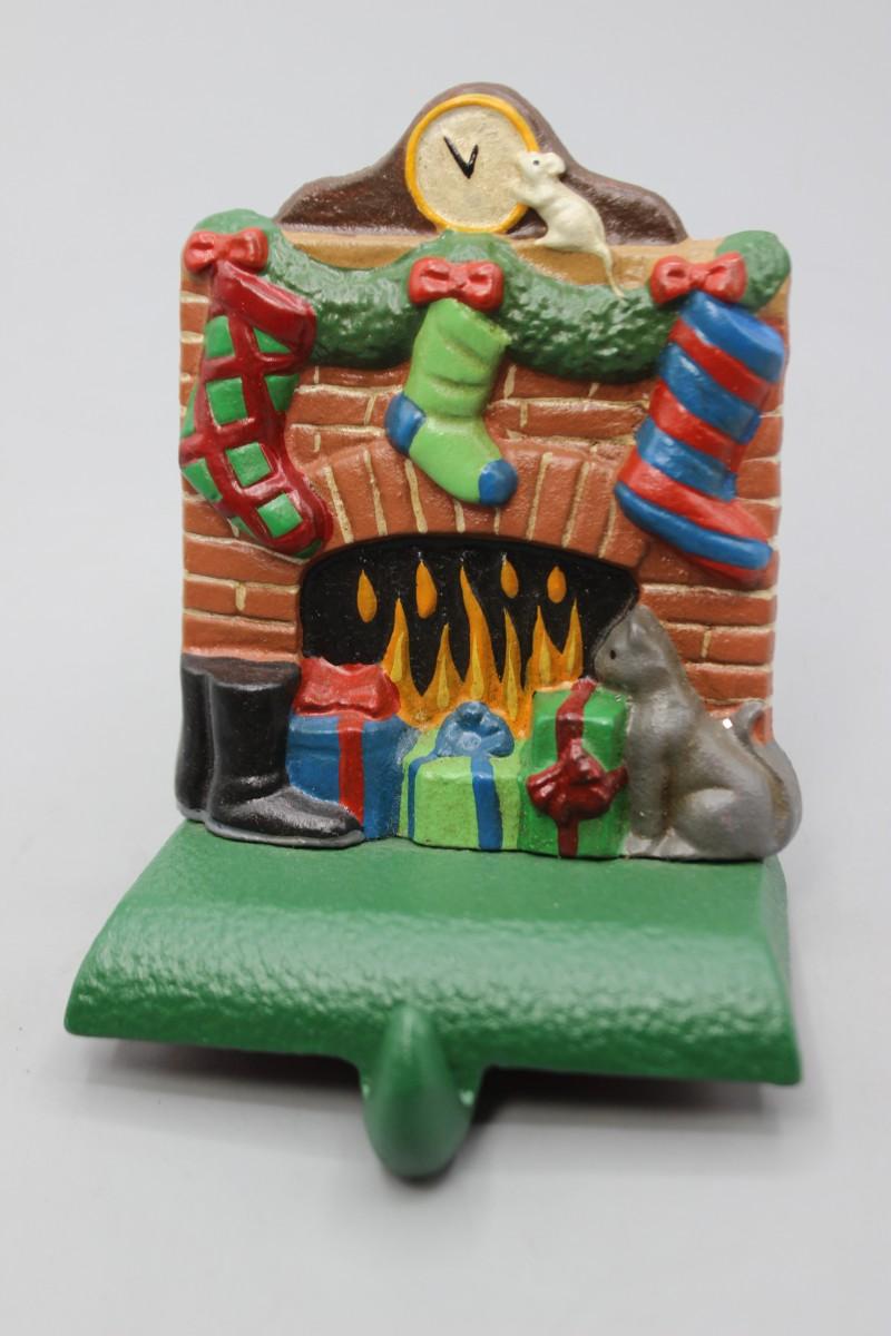 Cozy Fireplace with Presents Cast Iron Mantle Stocking Holder Christmas Decor