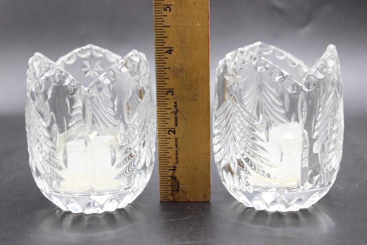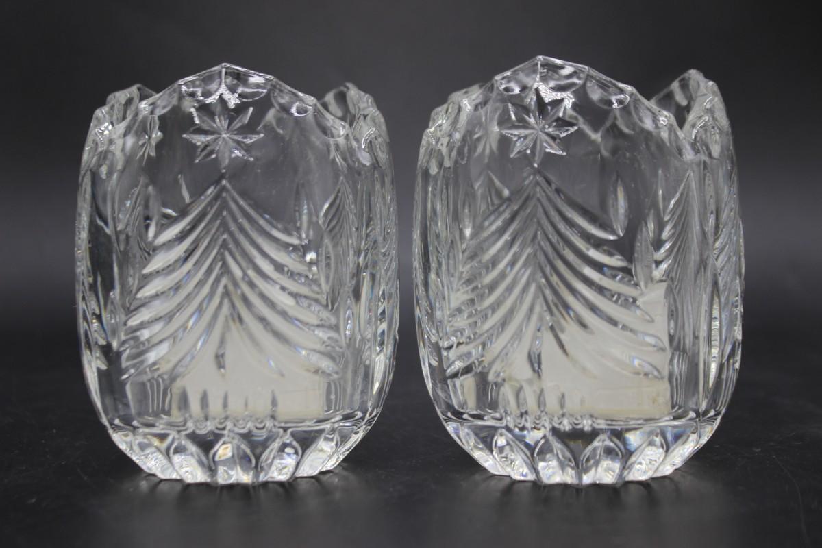 Pair of Mikasa Christmas Tree Glass Votive Candle Holder with Boxes