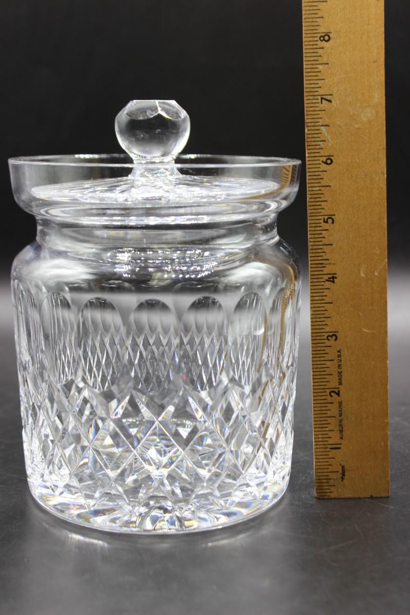 The Waterford watermark is on the base of the jar, but there is no significant damage and is in good collectible or useable condition.