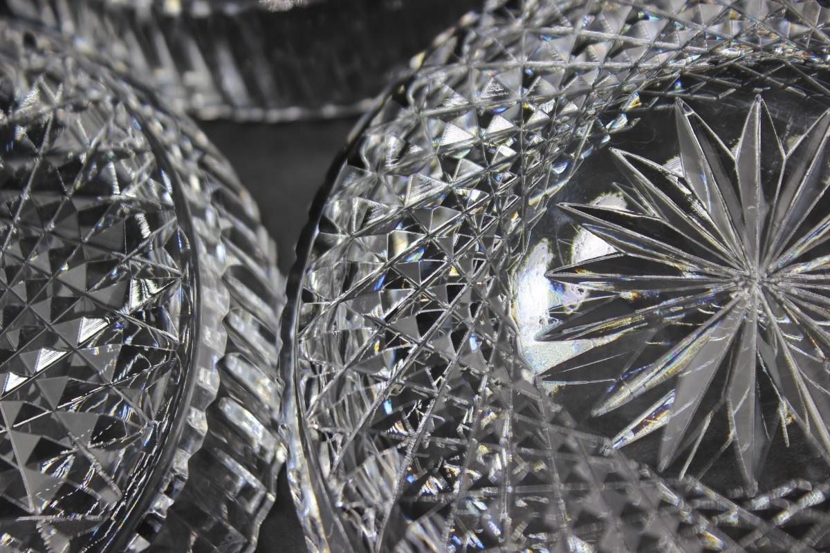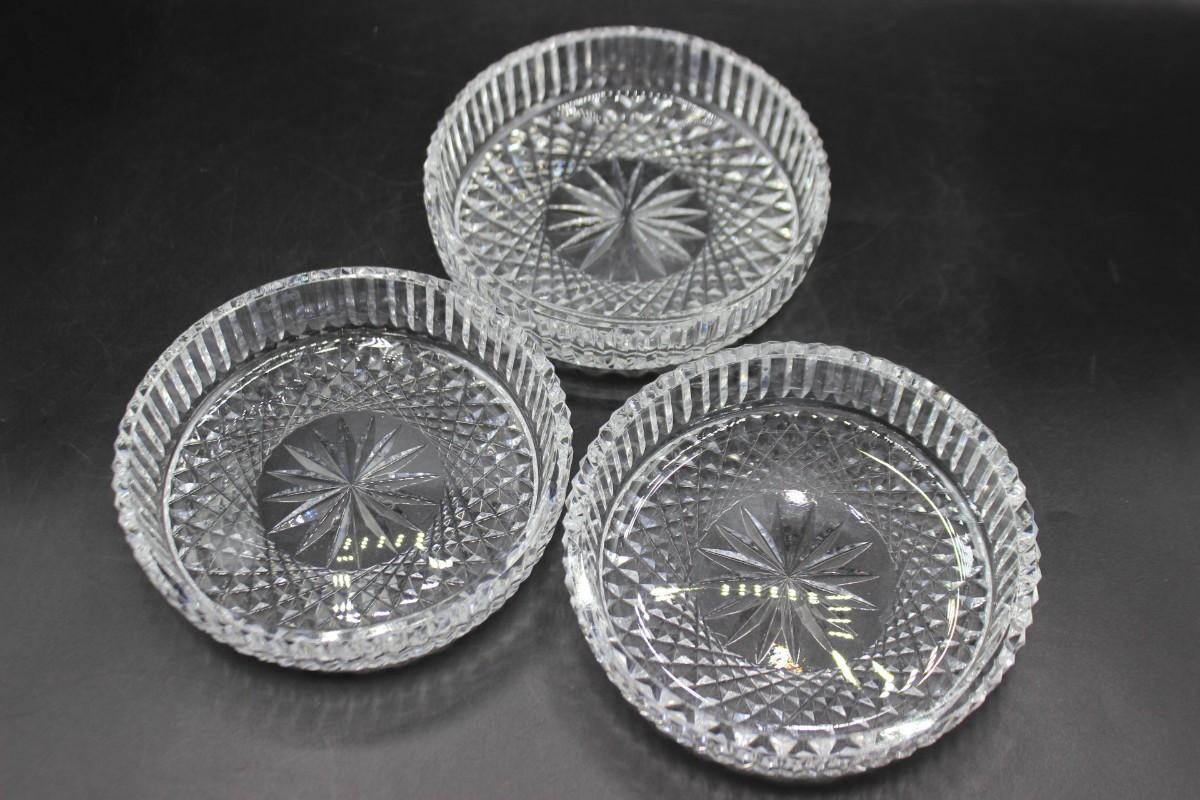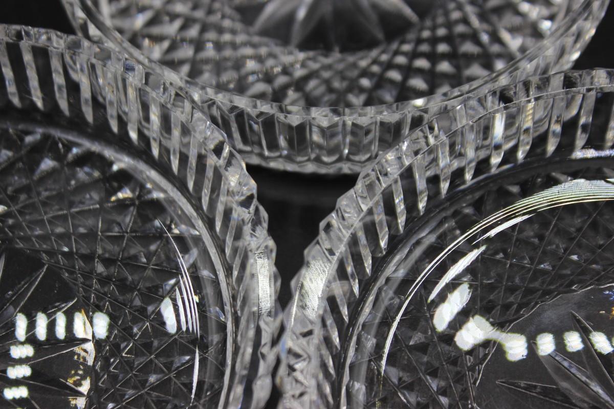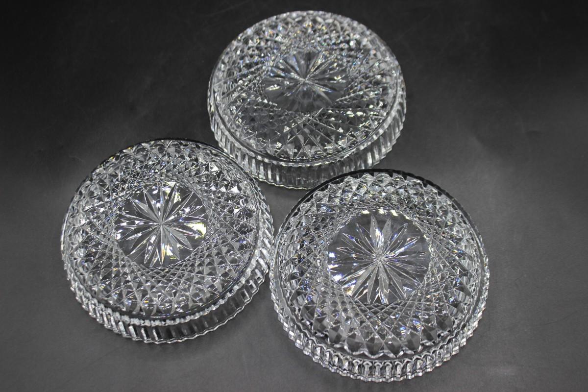 Lot of Vintage Crystal Cut Glass Geometric Pattern Mid Century Ashtray Dishes