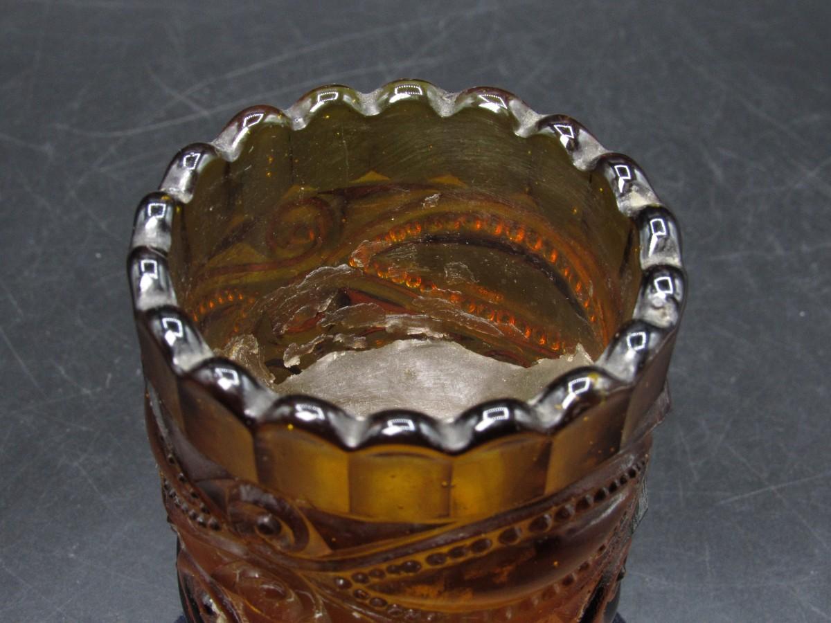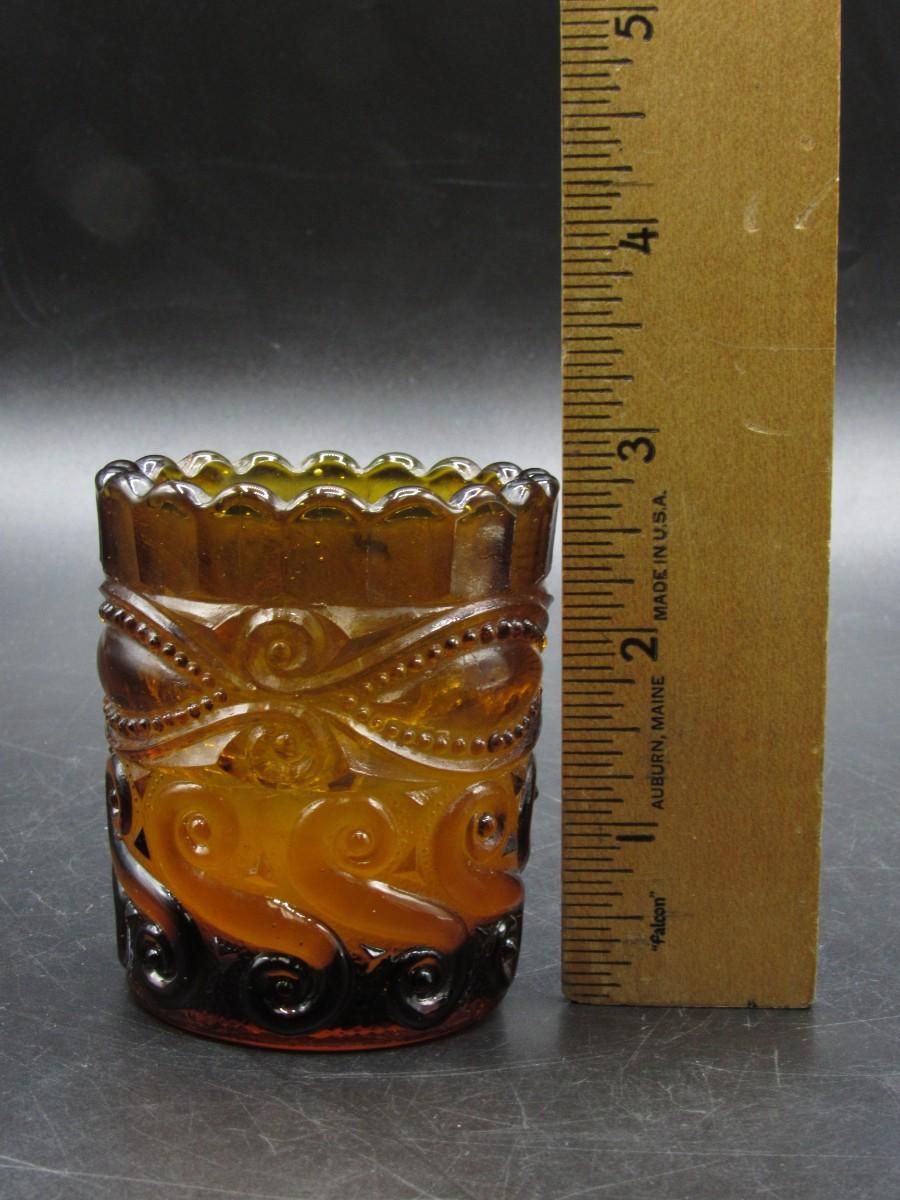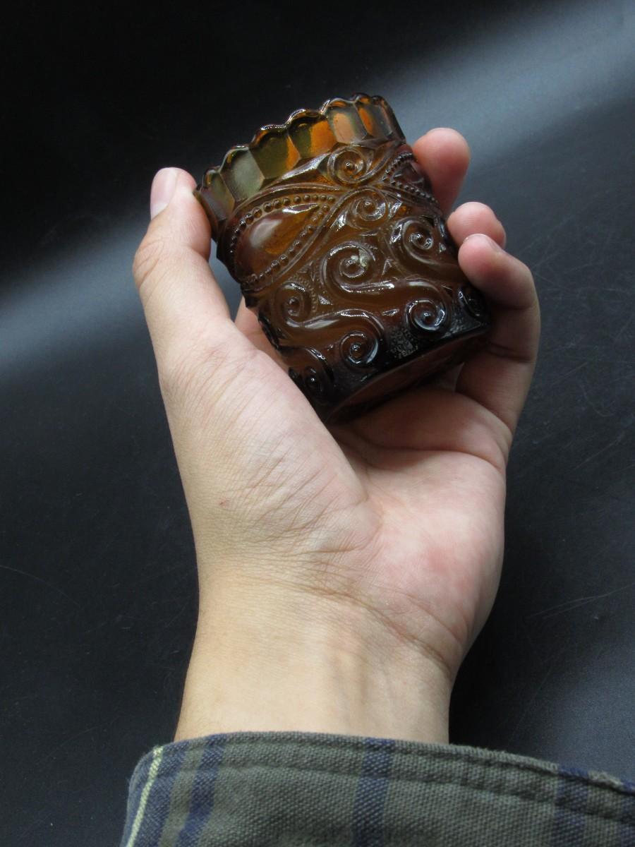 Vintage Groovy Amber Glass Curl Scalloped Edge Candle Holder