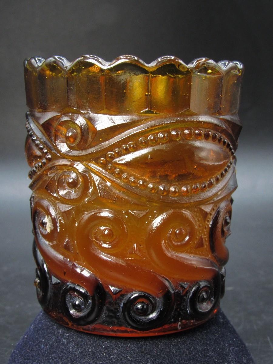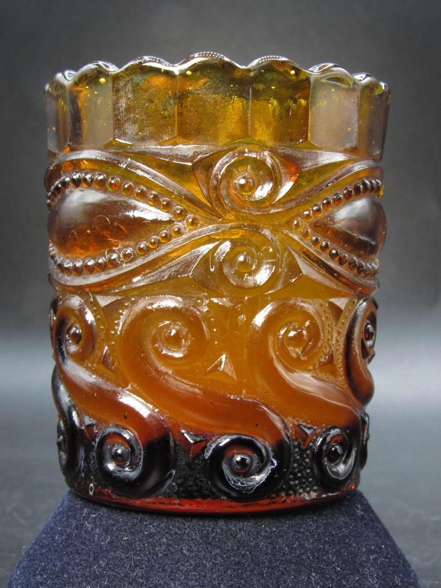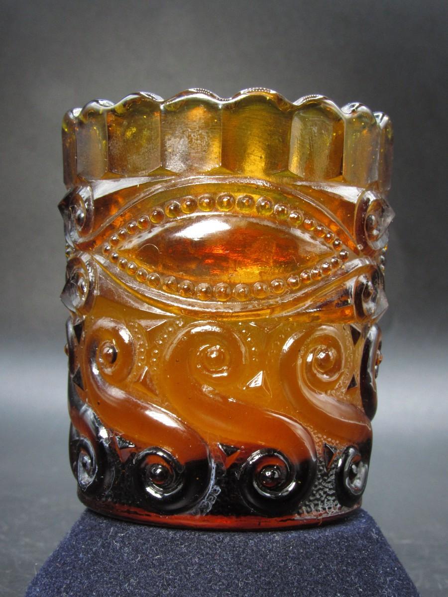 Vintage Groovy Amber Glass Curl Scalloped Edge Candle Holder