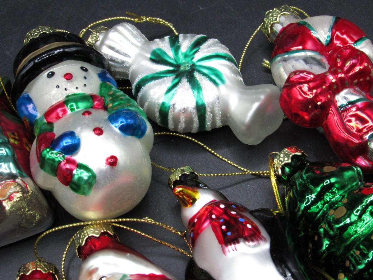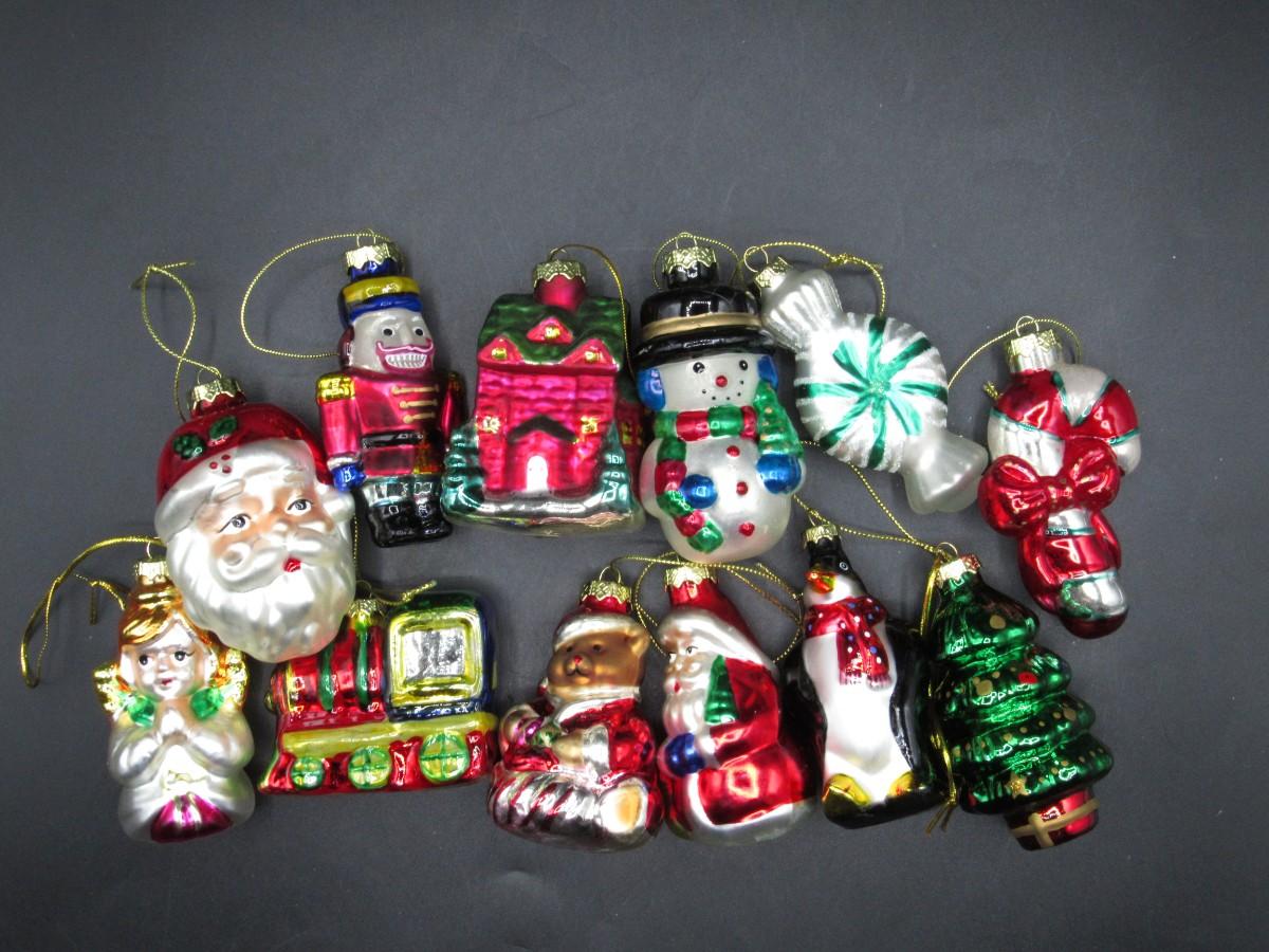 Lot of Boxed Mercury Glass Christmas Tree Ornament Set Santa Claus, Peppermint Candy, Toy Train, & More