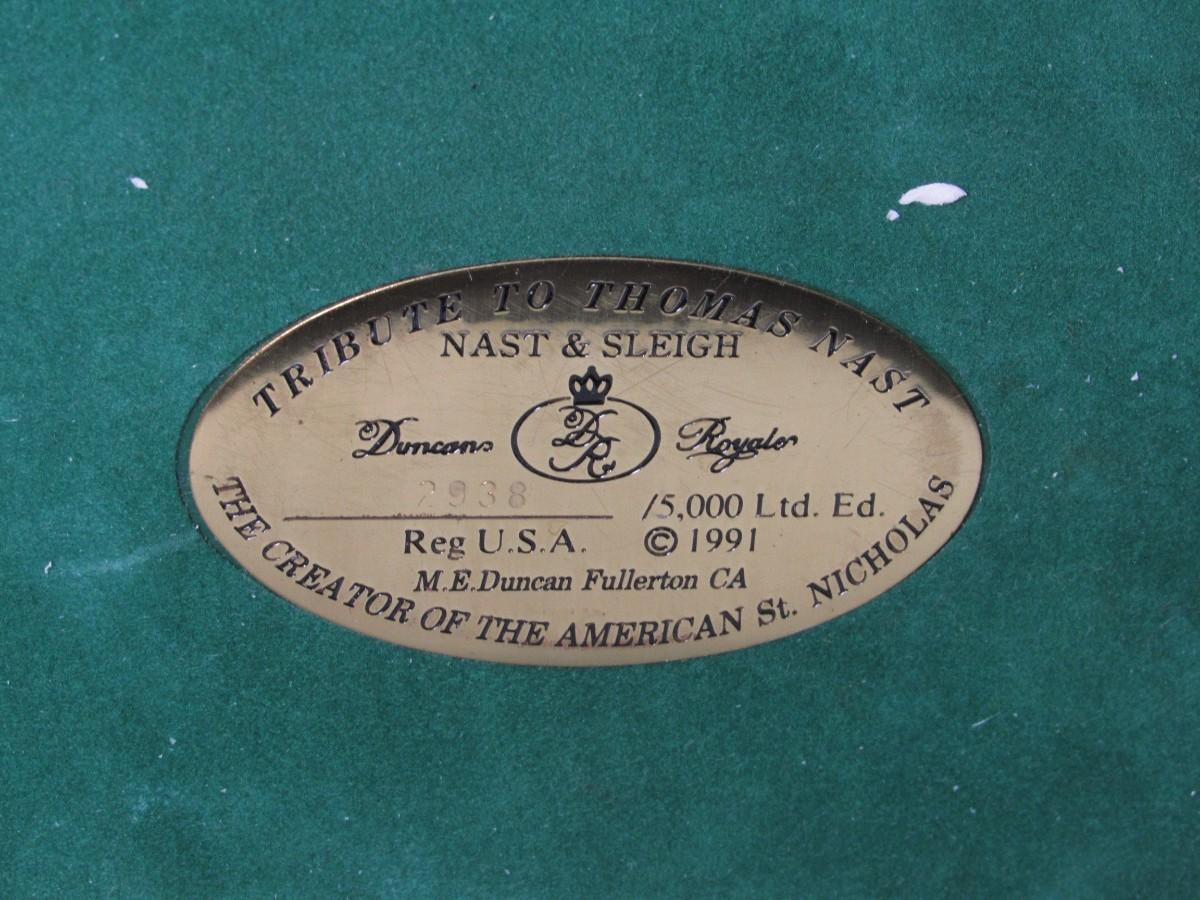 Duncan Royale Santa Nast and Sleigh Collectible Christmas Decor History of Santa Figurine