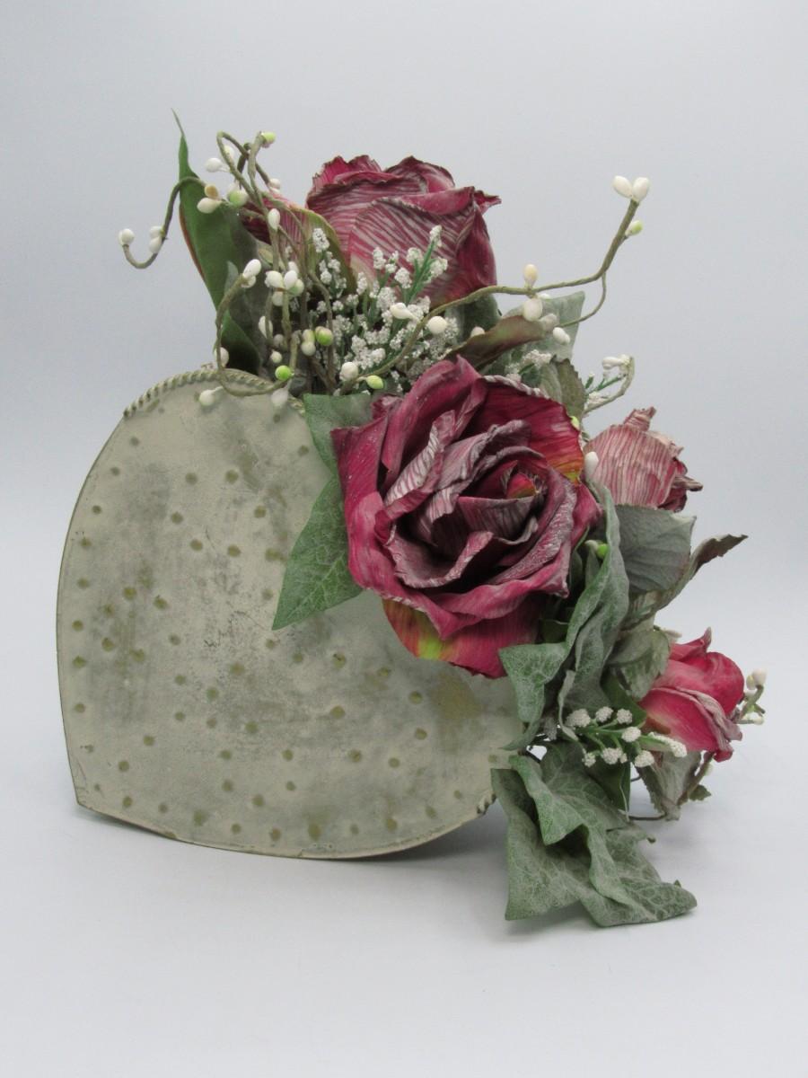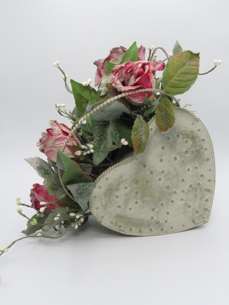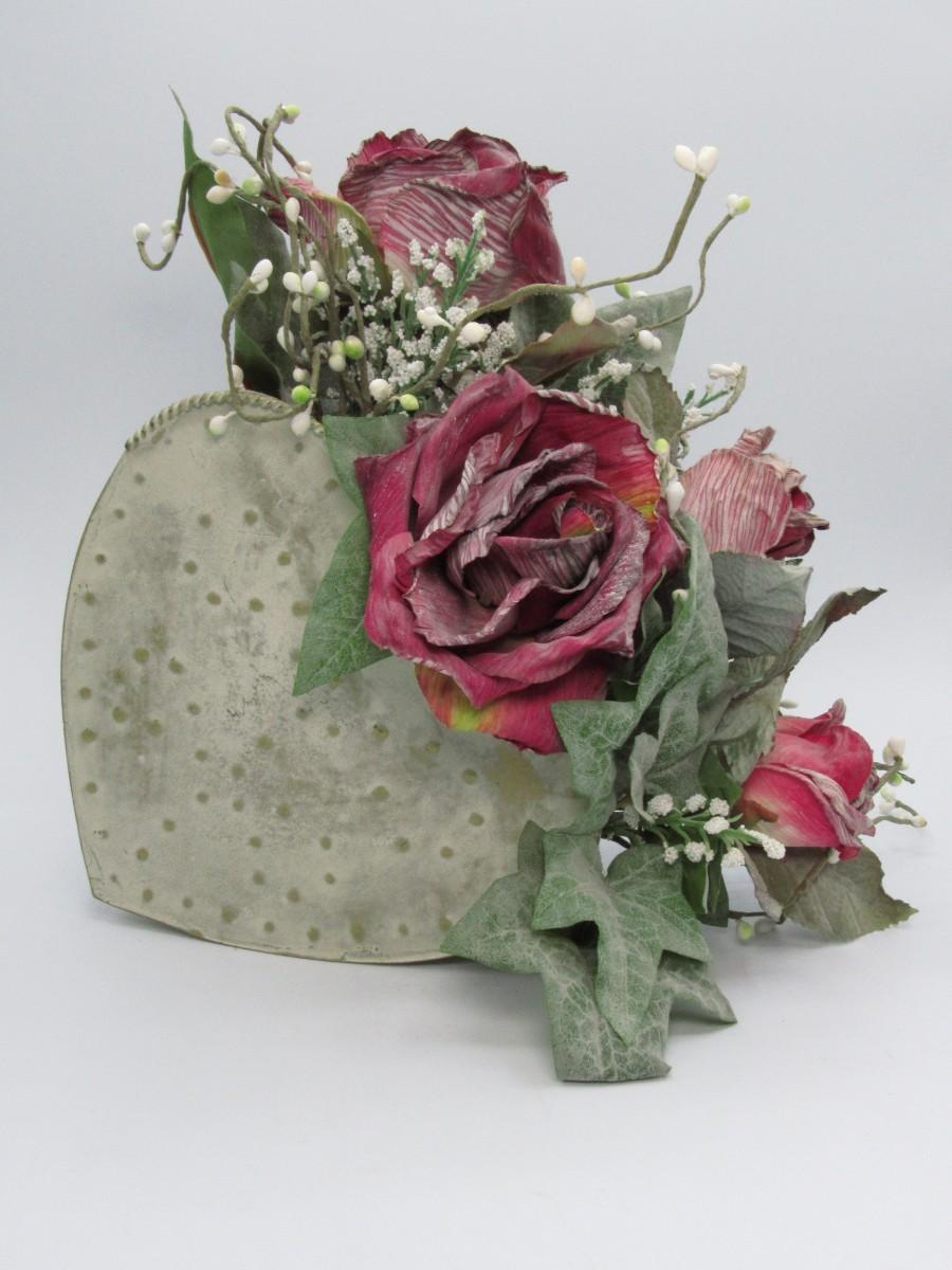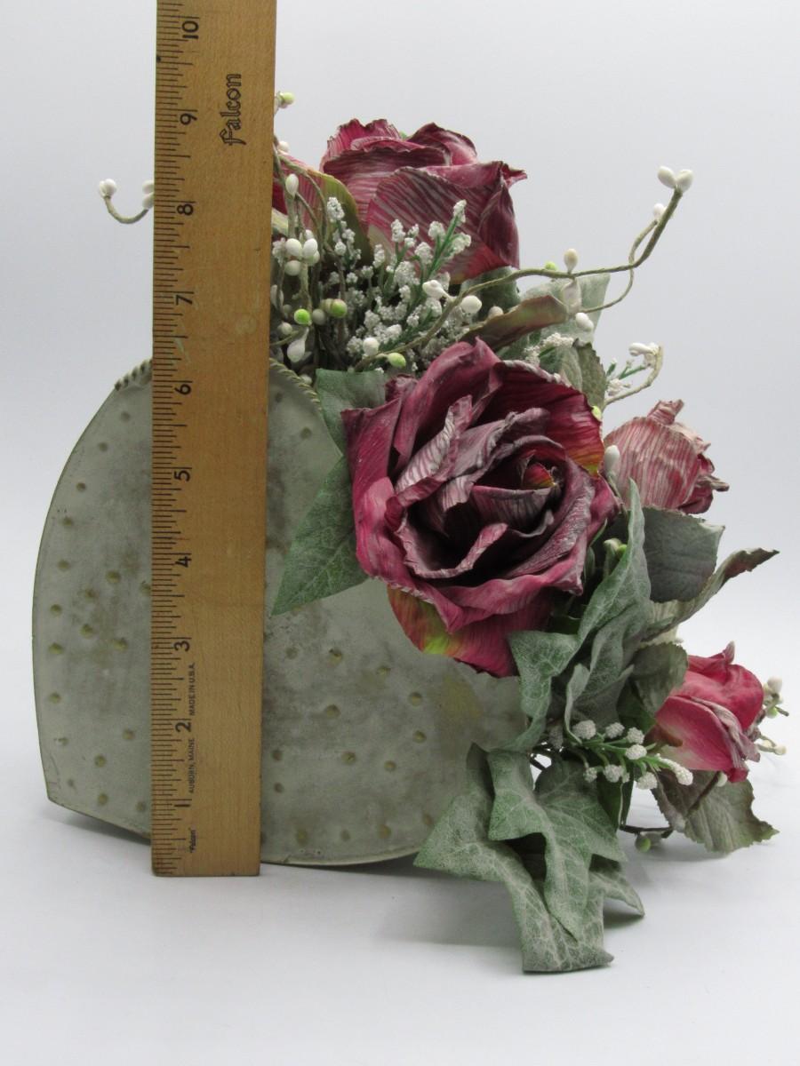 Retro Hanging Metal Heart Tin Faux Roses Cottagecore Home Decor