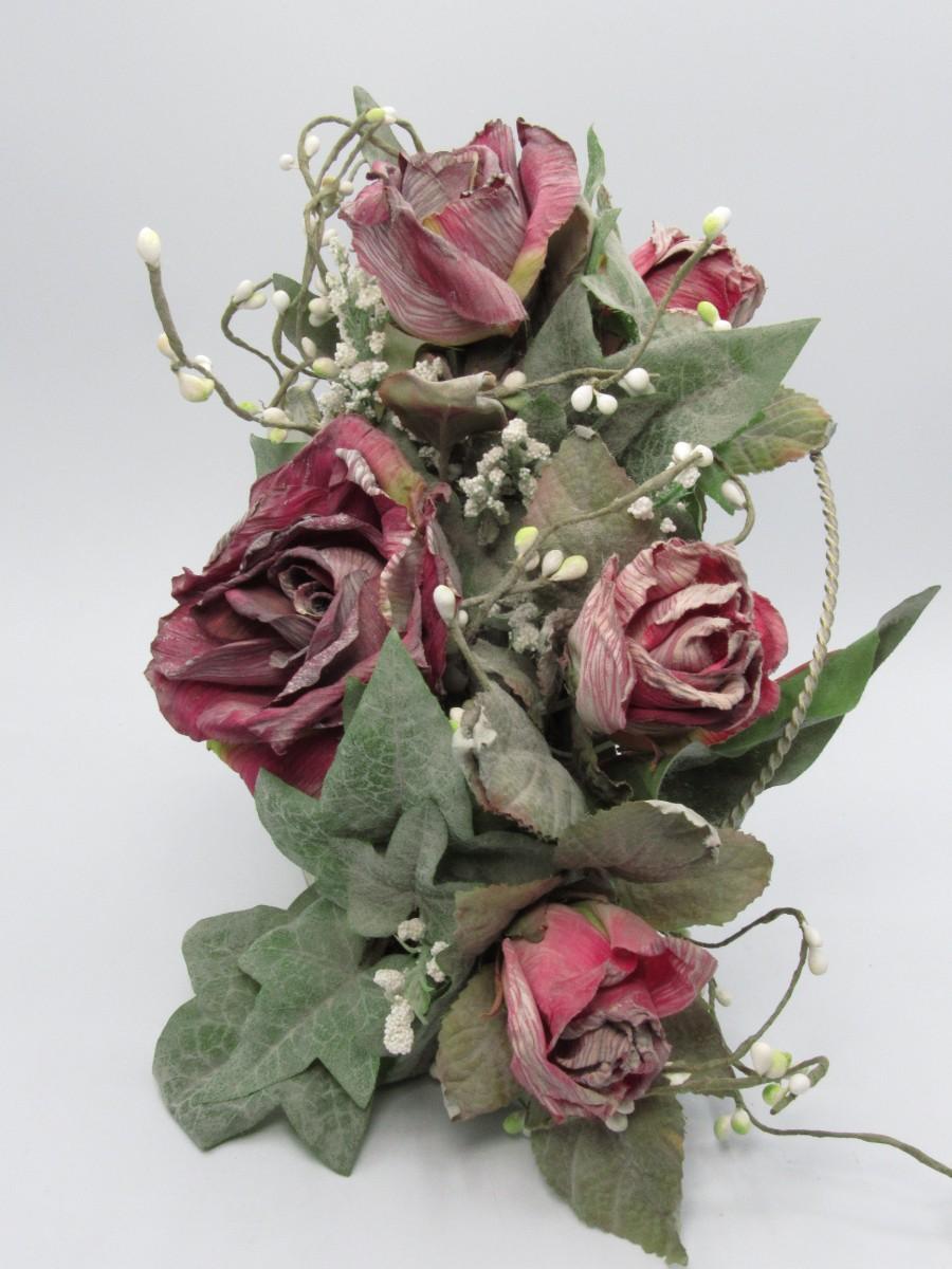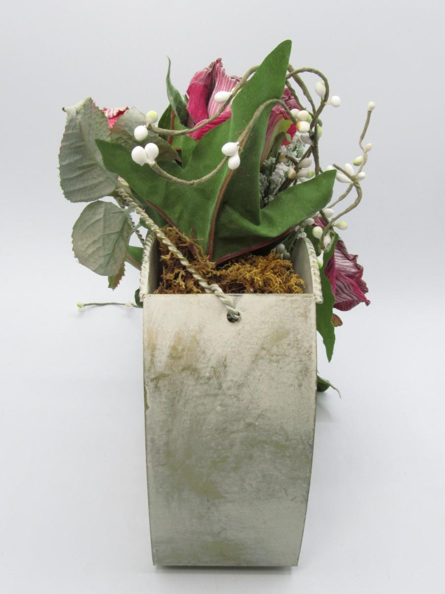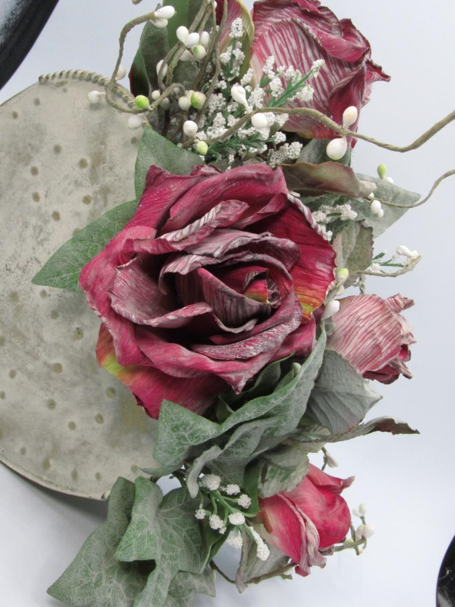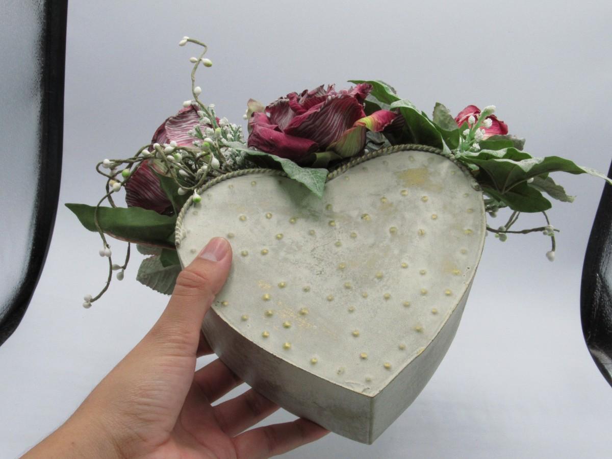 Retro Hanging Metal Heart Tin Faux Roses Cottagecore Home Decor
