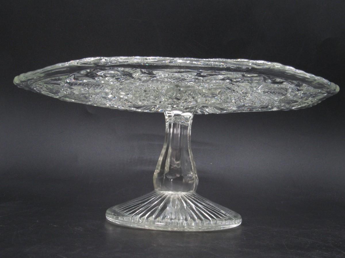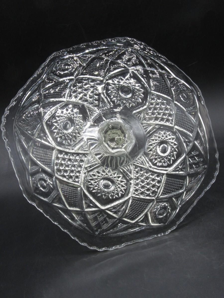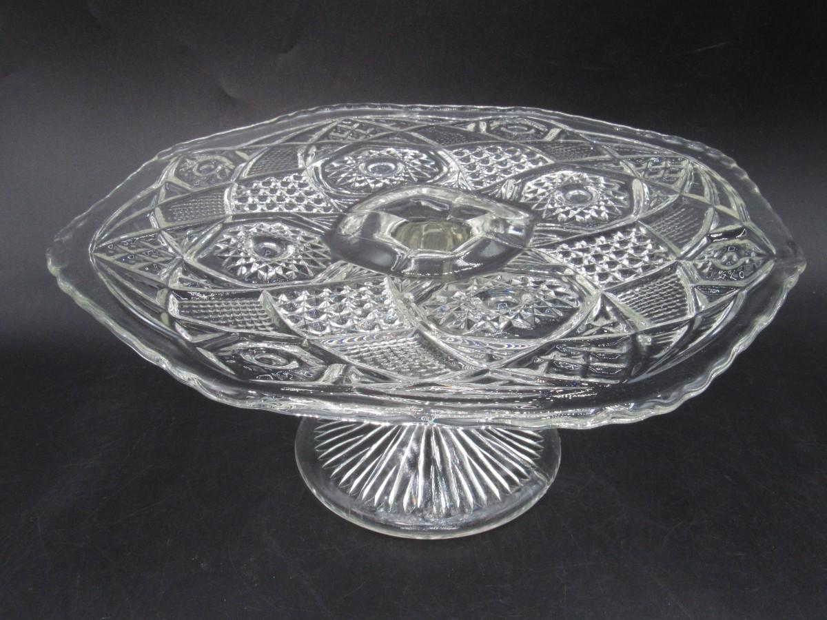 Vintage Mid Century Cut Glass Geometric Design Serving Display Platter