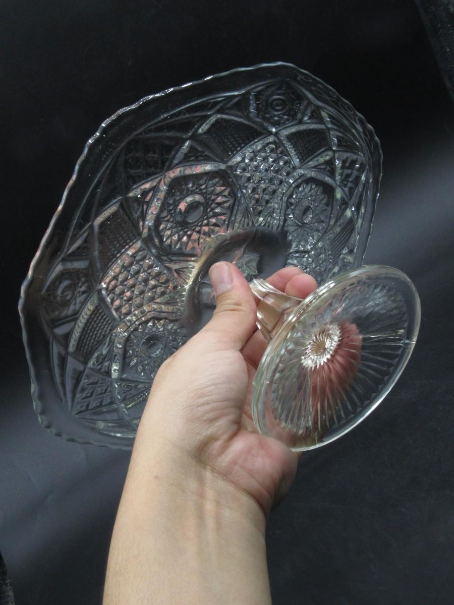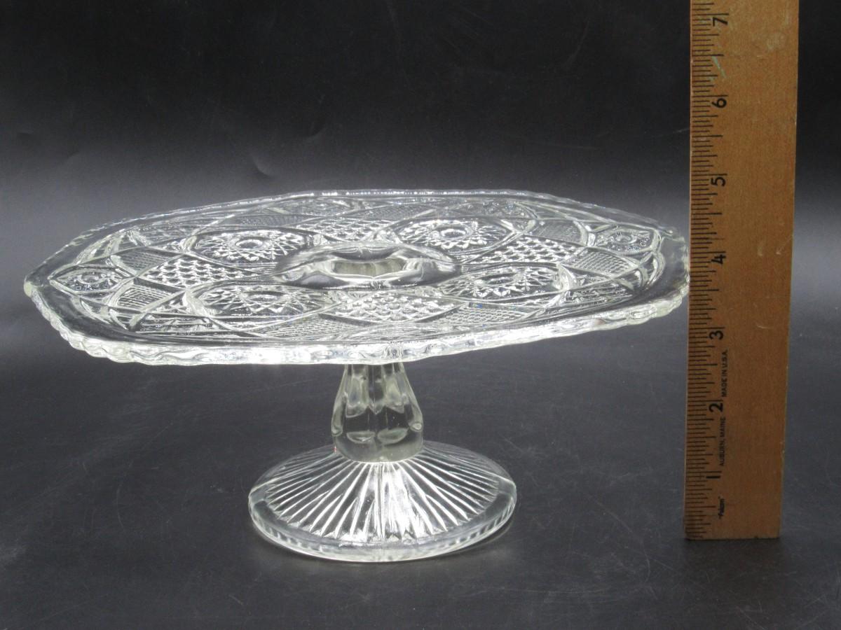 There is no significant cracks or chips to the glass display platter and is in overall good collectible or useable condition. Check pictures for more details and for sizing.