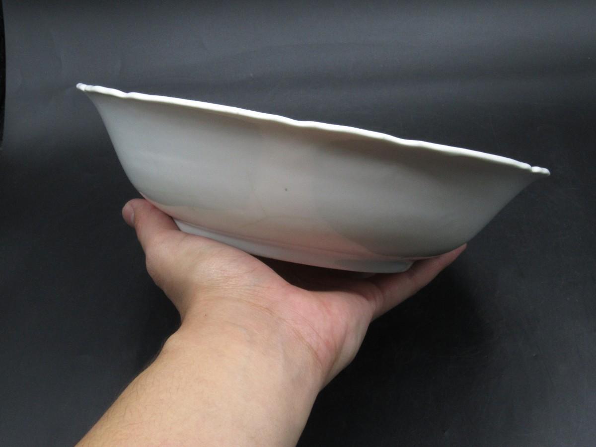 There is crazing on the underside and on top of the bowl, and there is a light yellow crack on the inside of the bowl. Check pictures for more details.