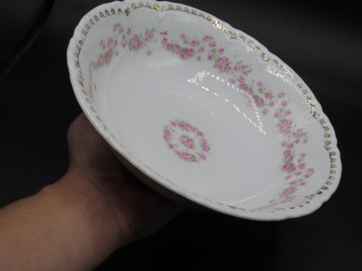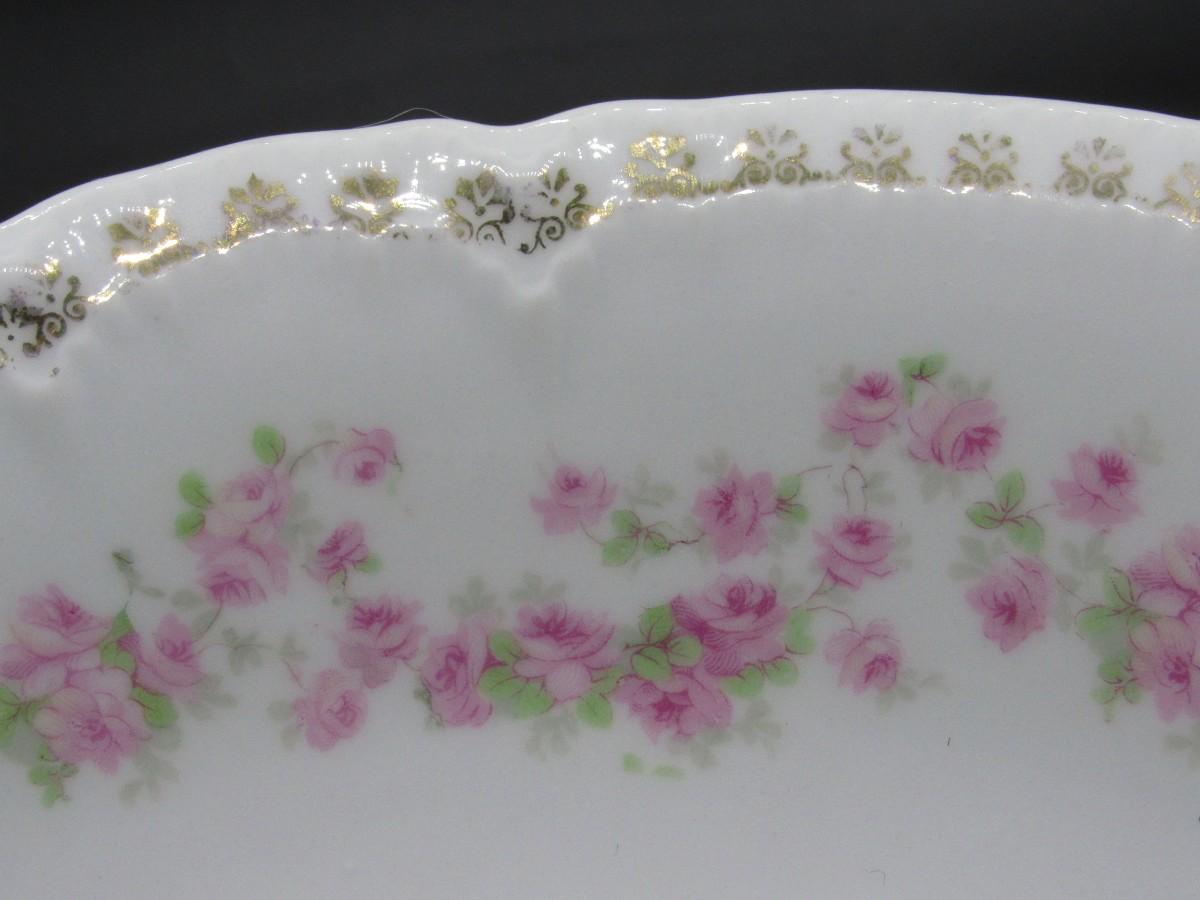 Vintage German Pink Bridal Floral Pattern Soft Rose with Gold Rim Accent