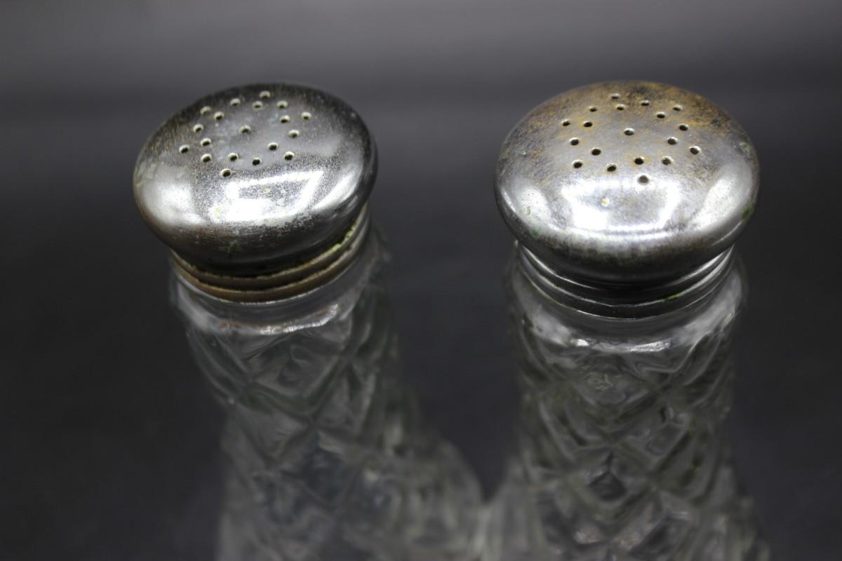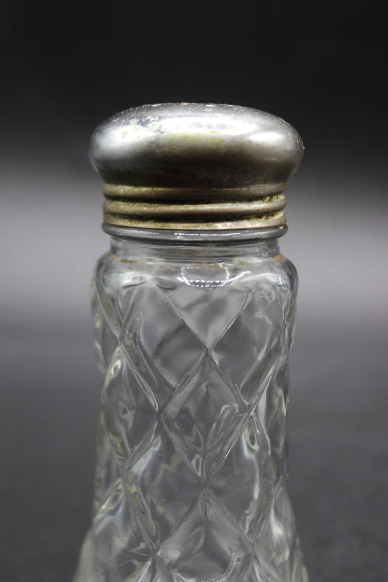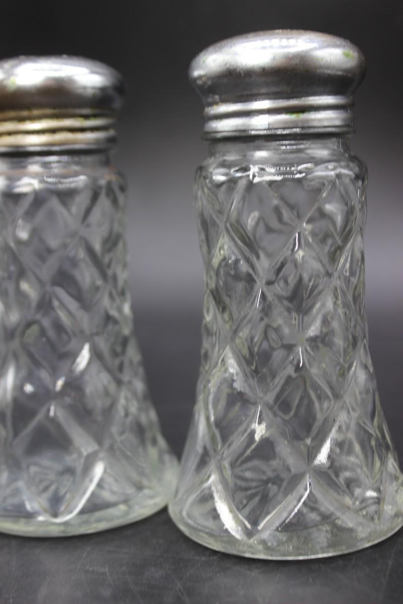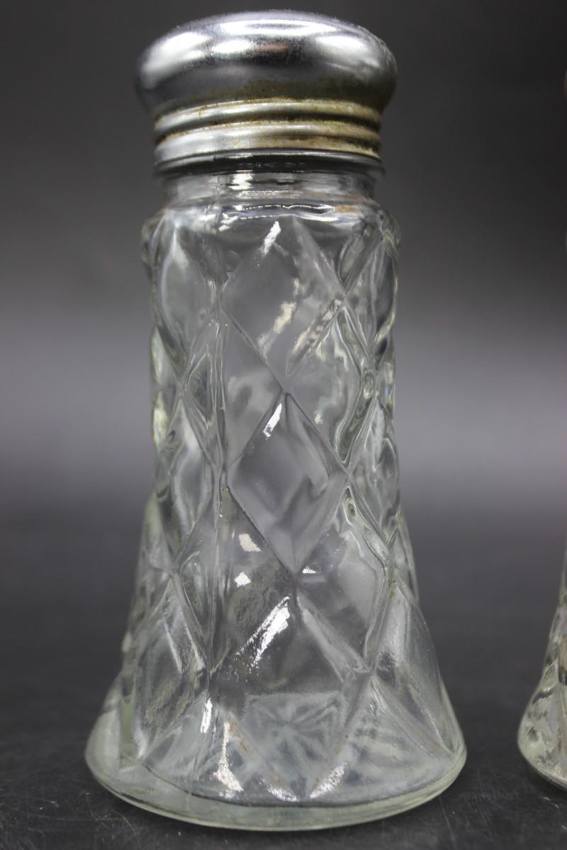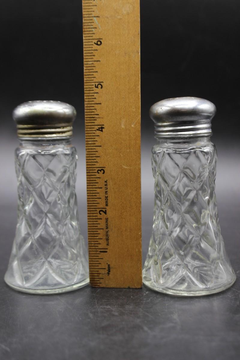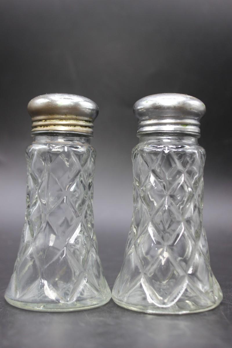 Vintage Diamond Pattern Mid Century Modern Clear Glass Salt & Pepper Shakers