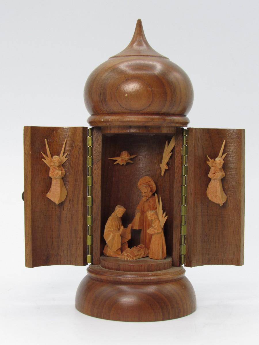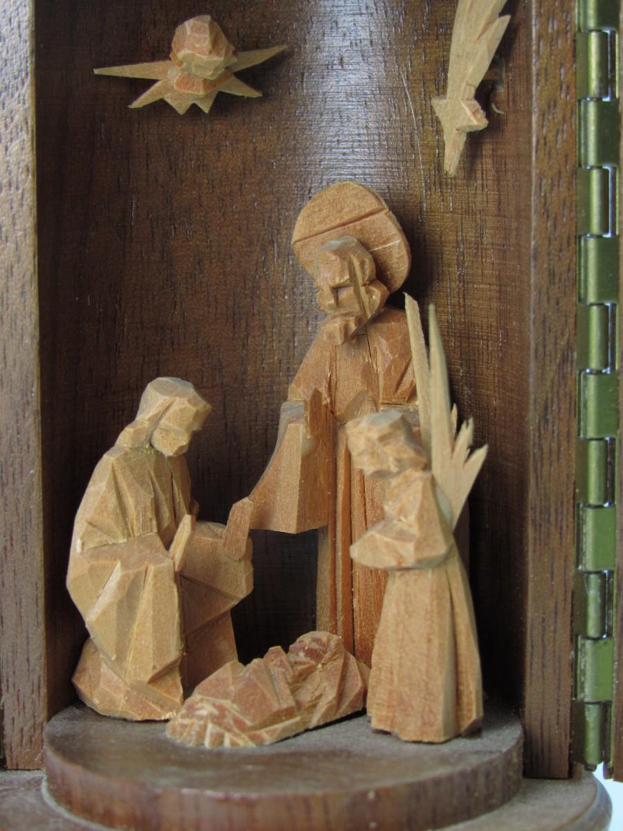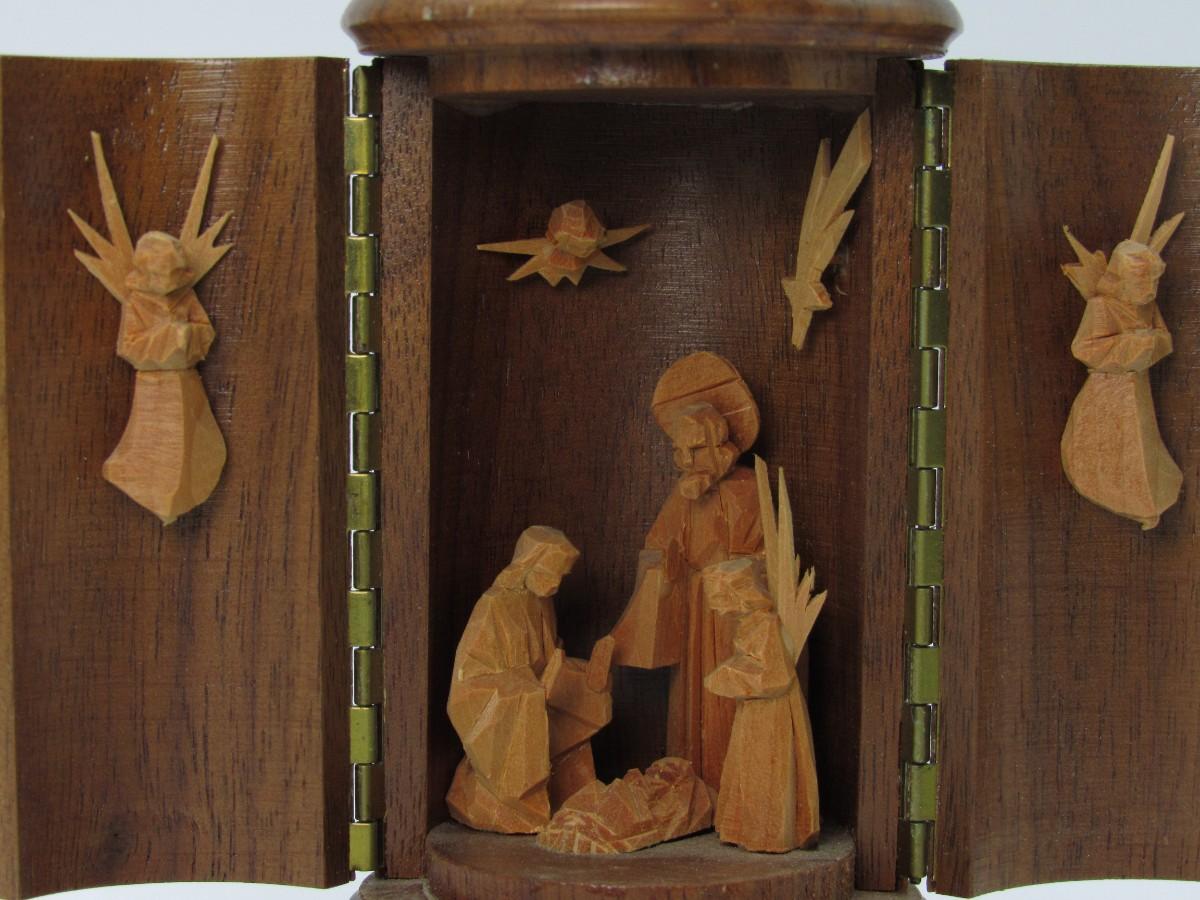 Interesting nativity set piece that can be closed or revealed! Small piece, check pictures for sizing. About 5 1/2 inches tall.