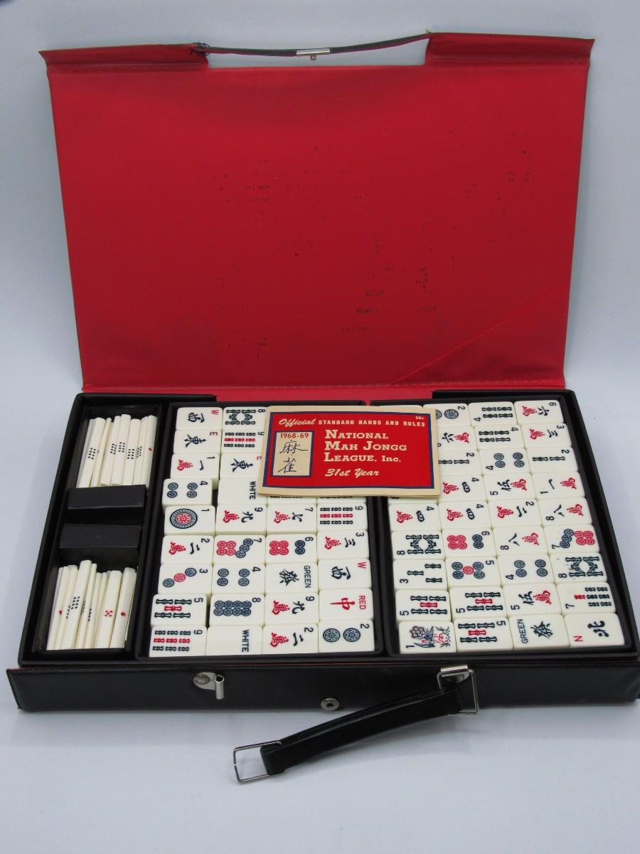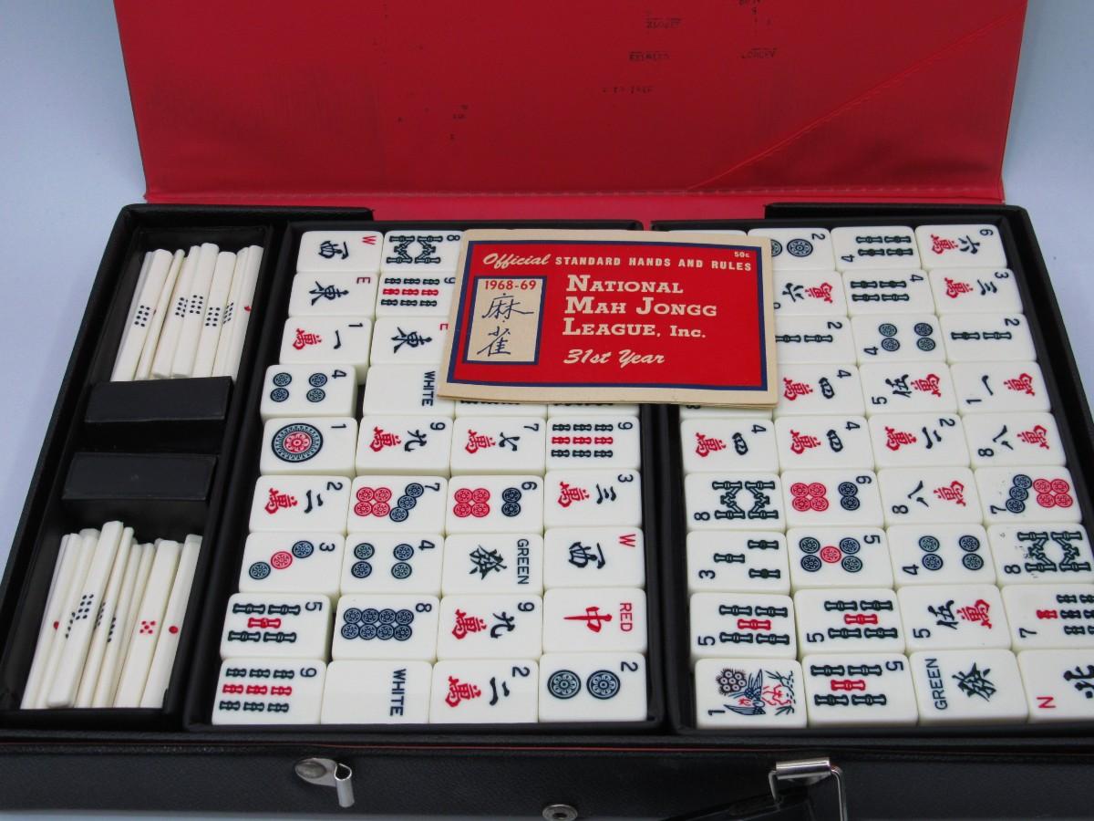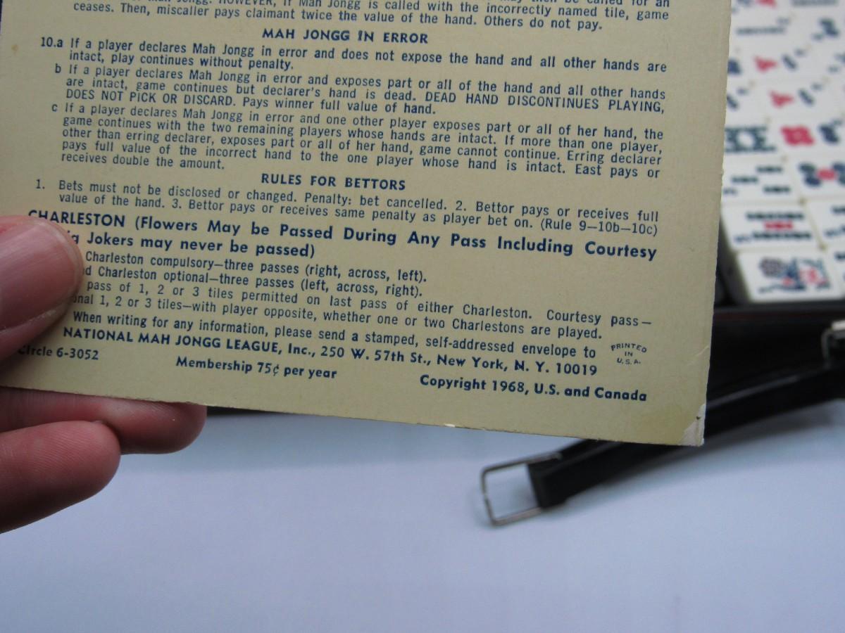 Chinese Mah-Jongg Tile Game Set with Vintage Modern National Mah-Jongg League Inc. 31st Year Pamphlet