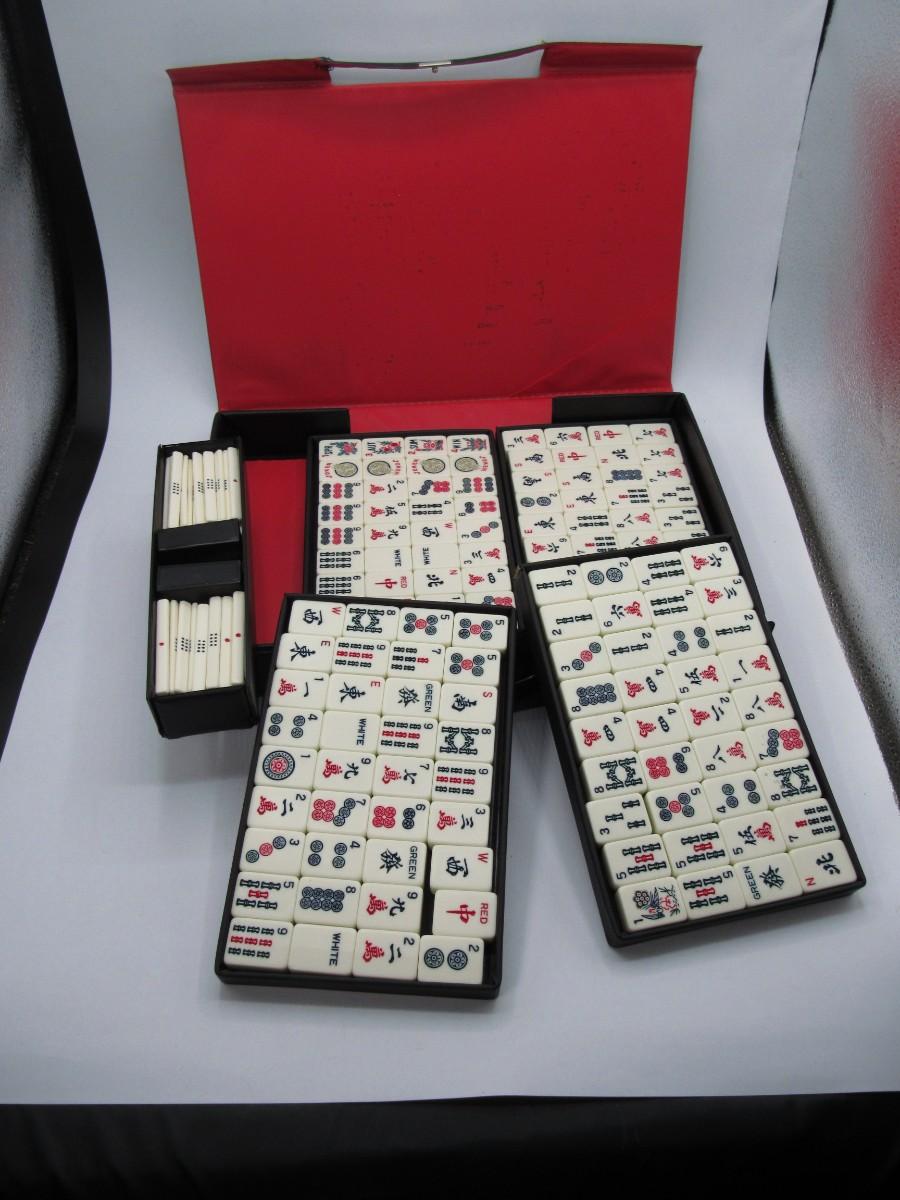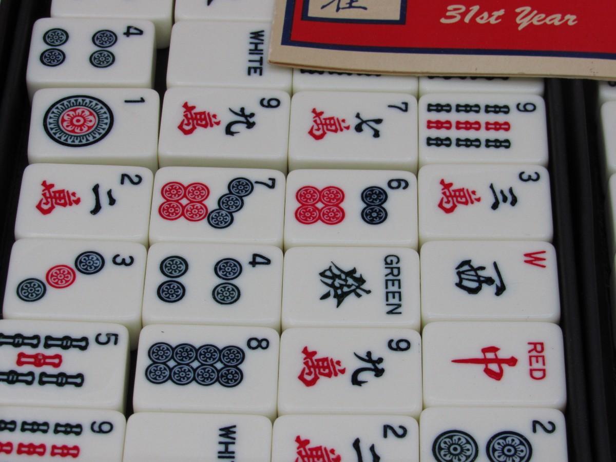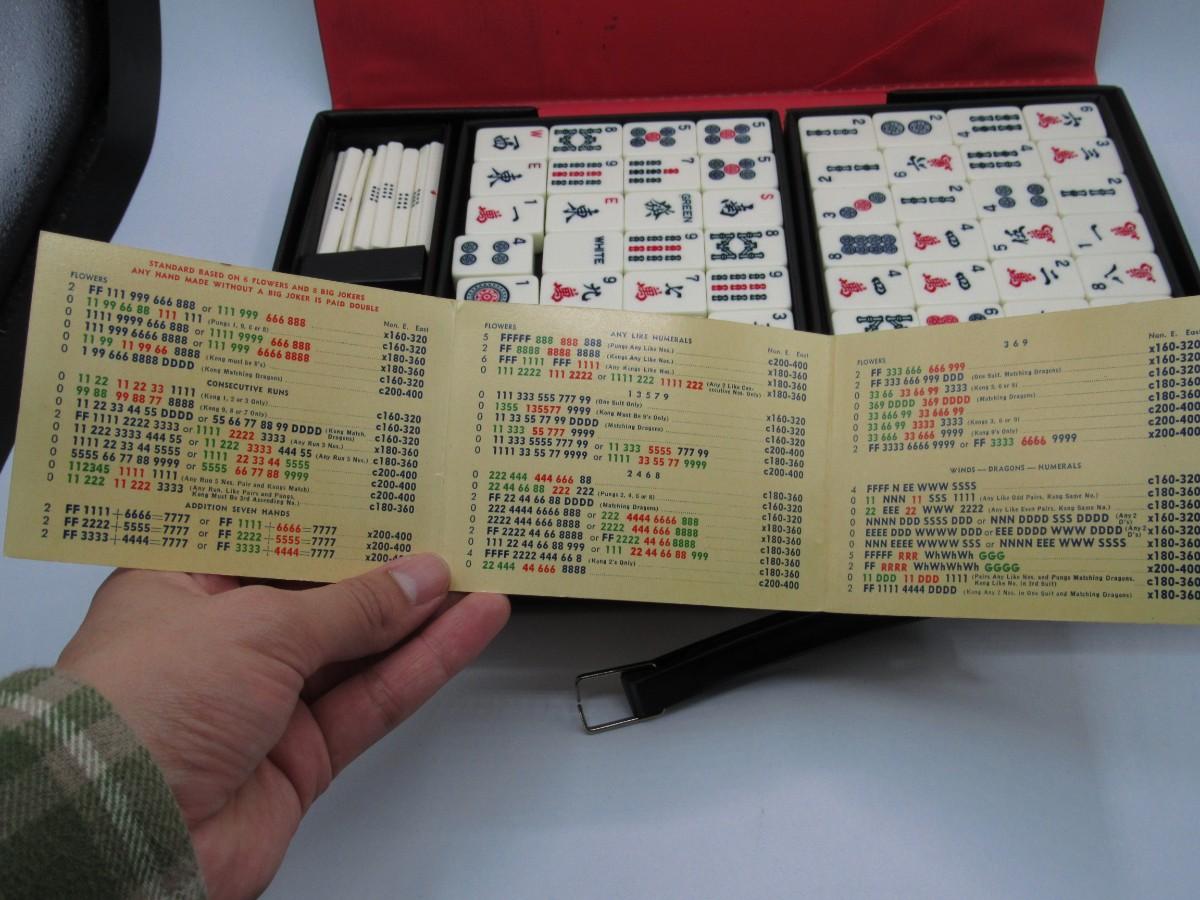 Chinese Mah-Jongg Tile Game Set with Vintage Modern National Mah-Jongg League Inc. 31st Year Pamphlet