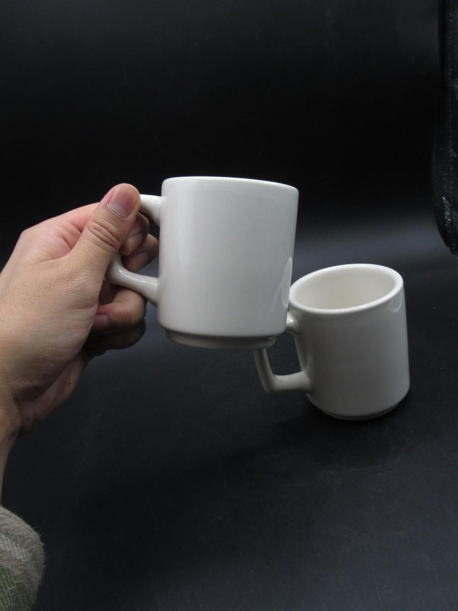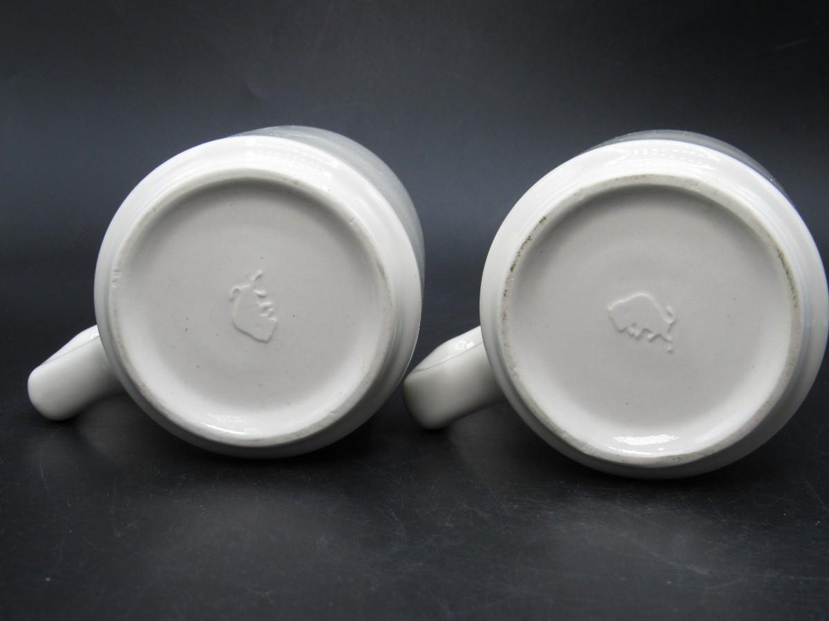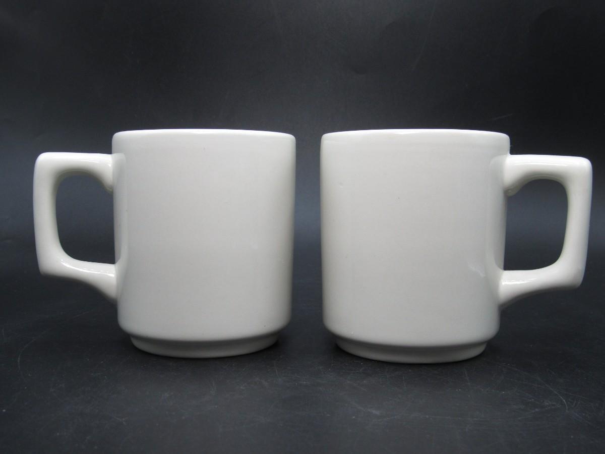 Pair of Retro Buffalo China Restaurant Ware White Ceramic Classic MCM Coffee Mug Cups Squared Handles