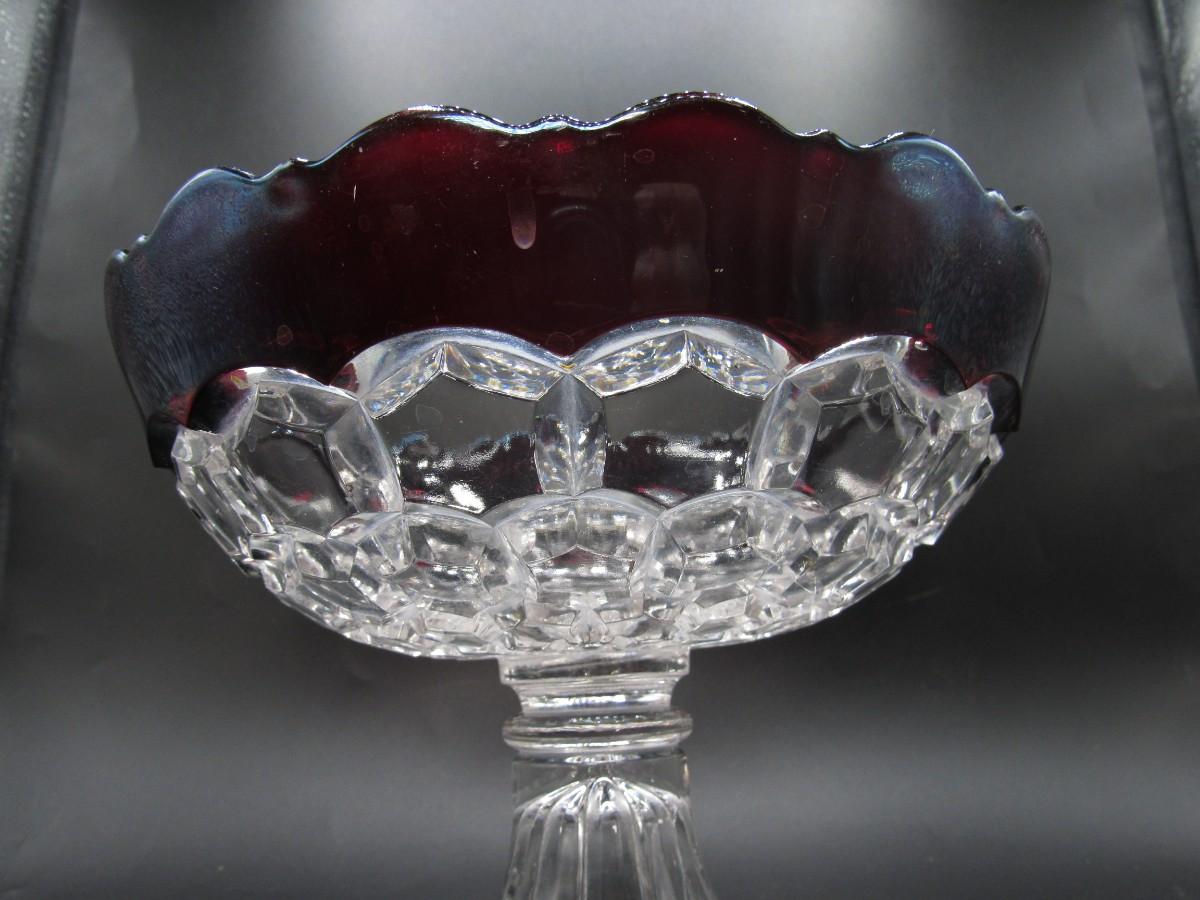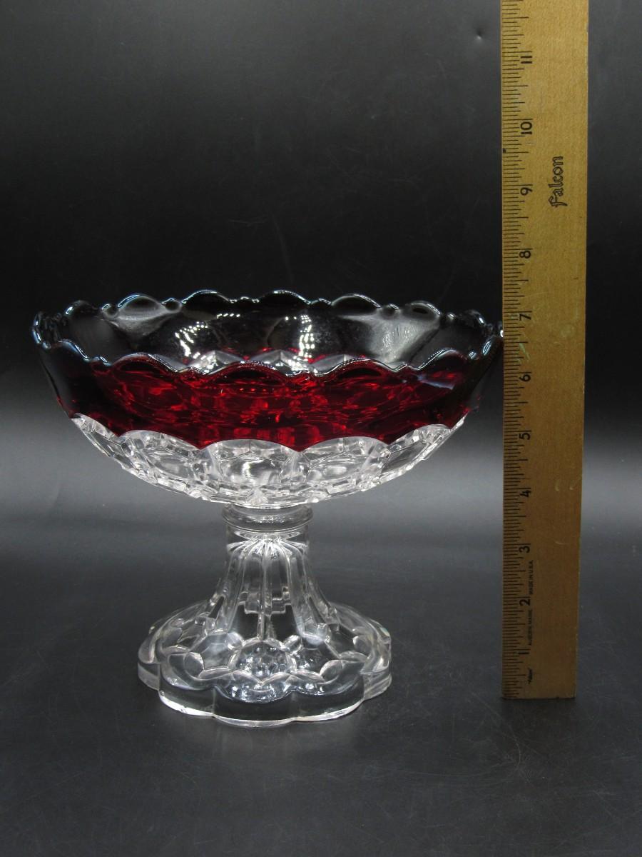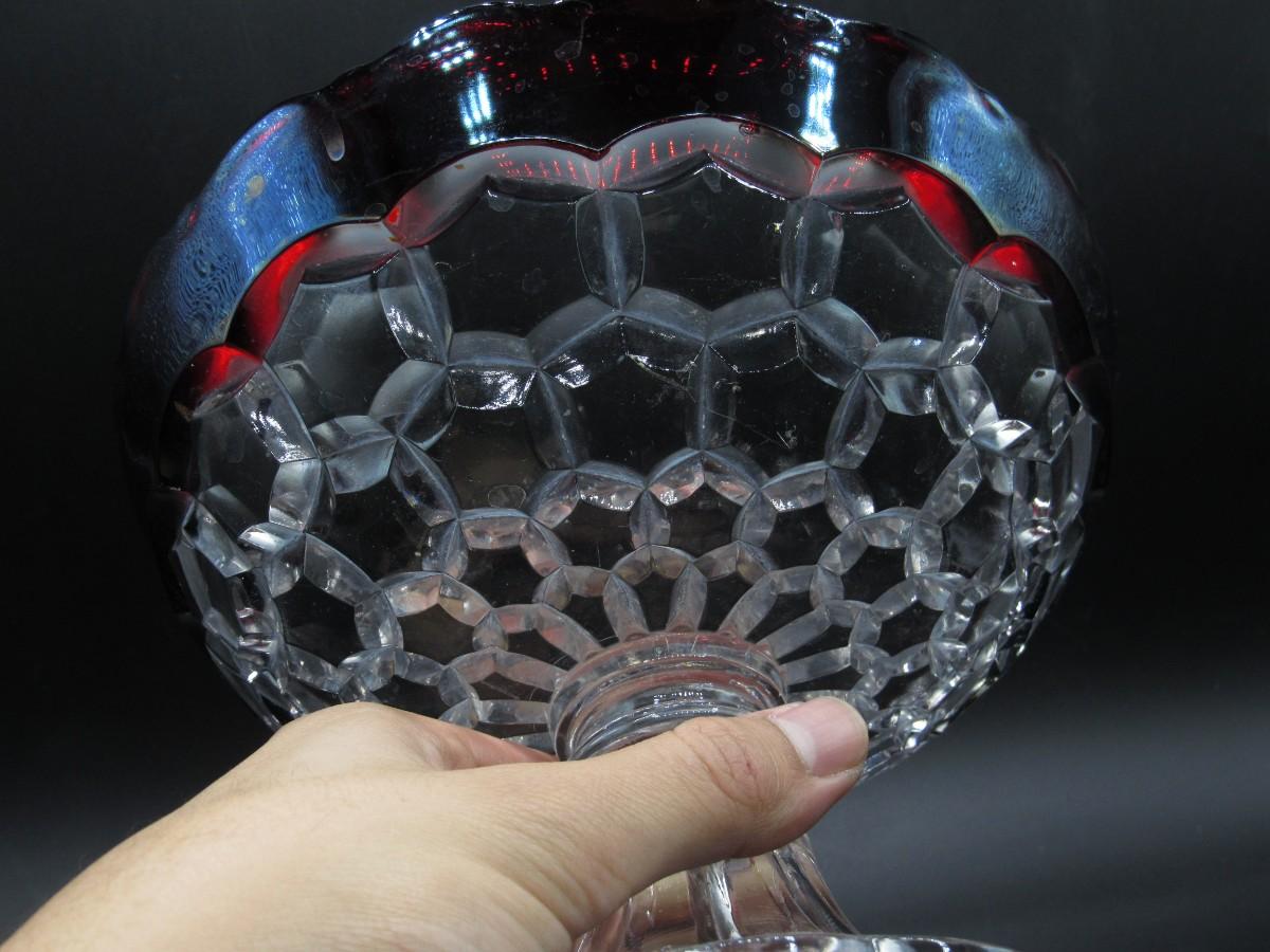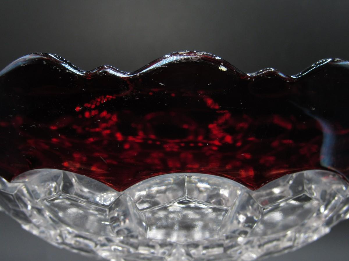 Vintage Ruby Red Edged Glass Footed Pedestal Compote Candy Dish Bowl