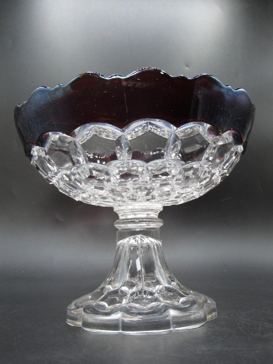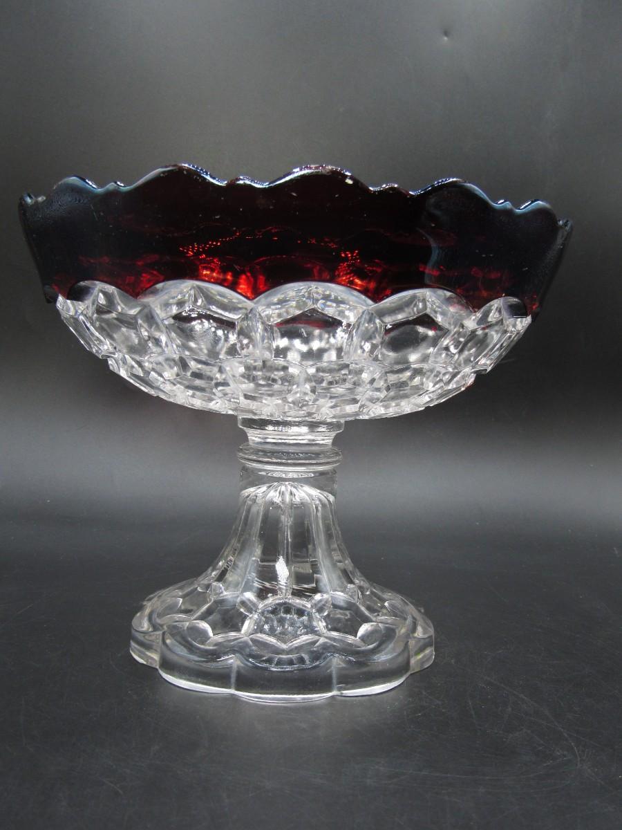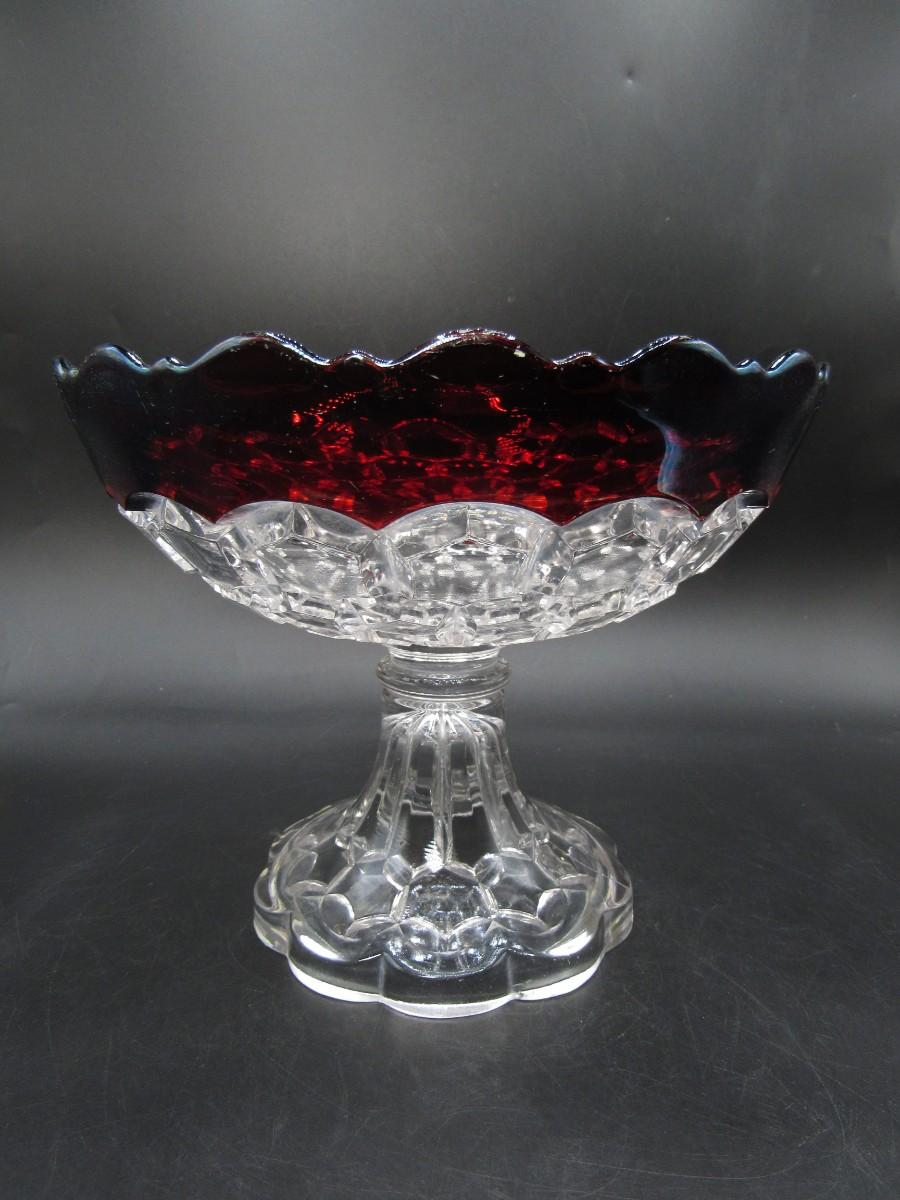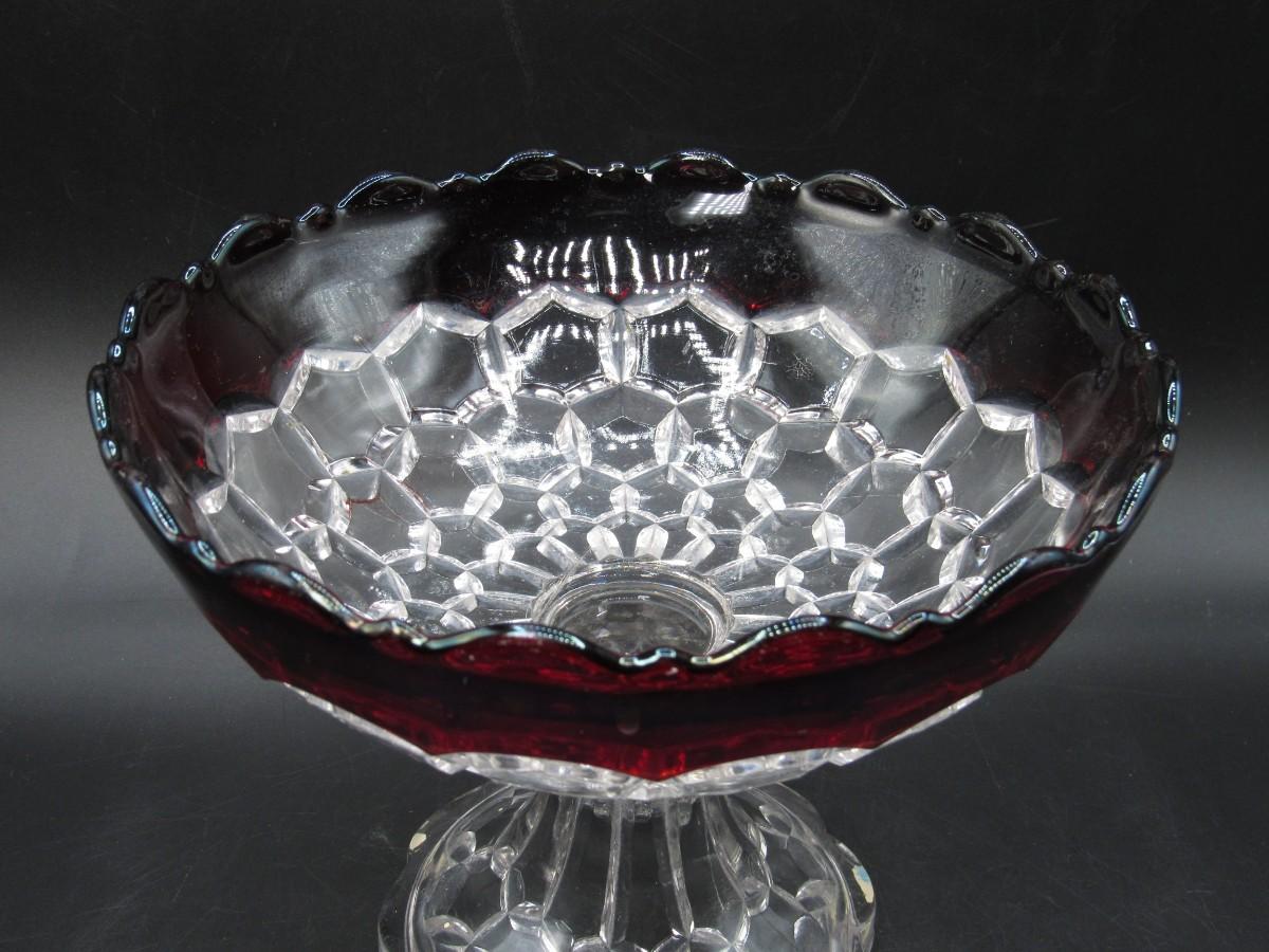 Vintage Ruby Red Edged Glass Footed Pedestal Compote Candy Dish Bowl