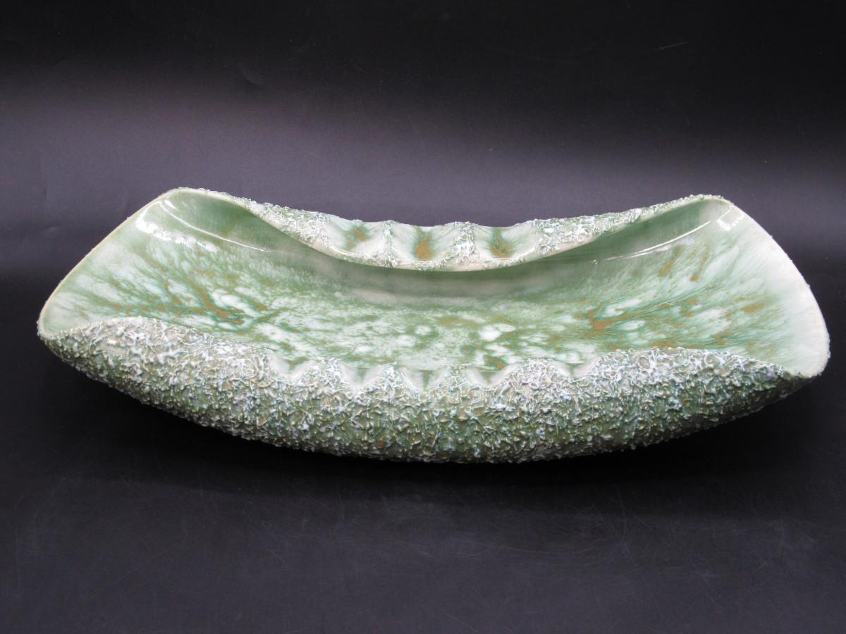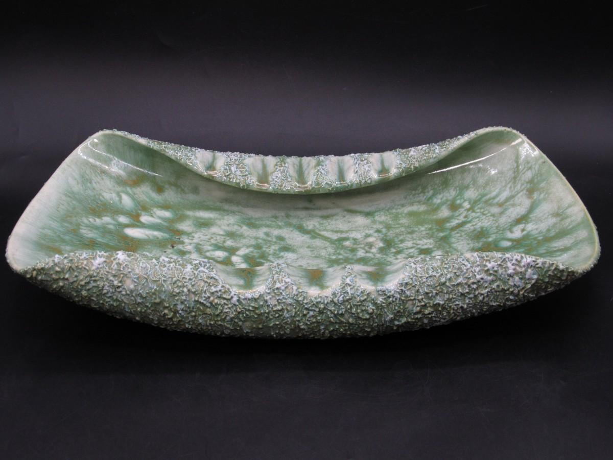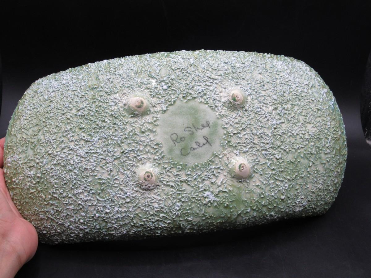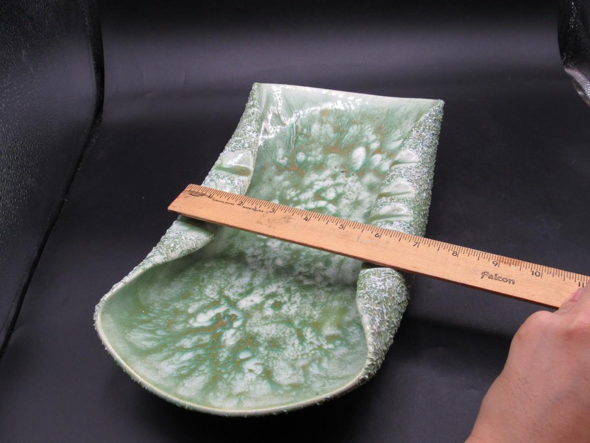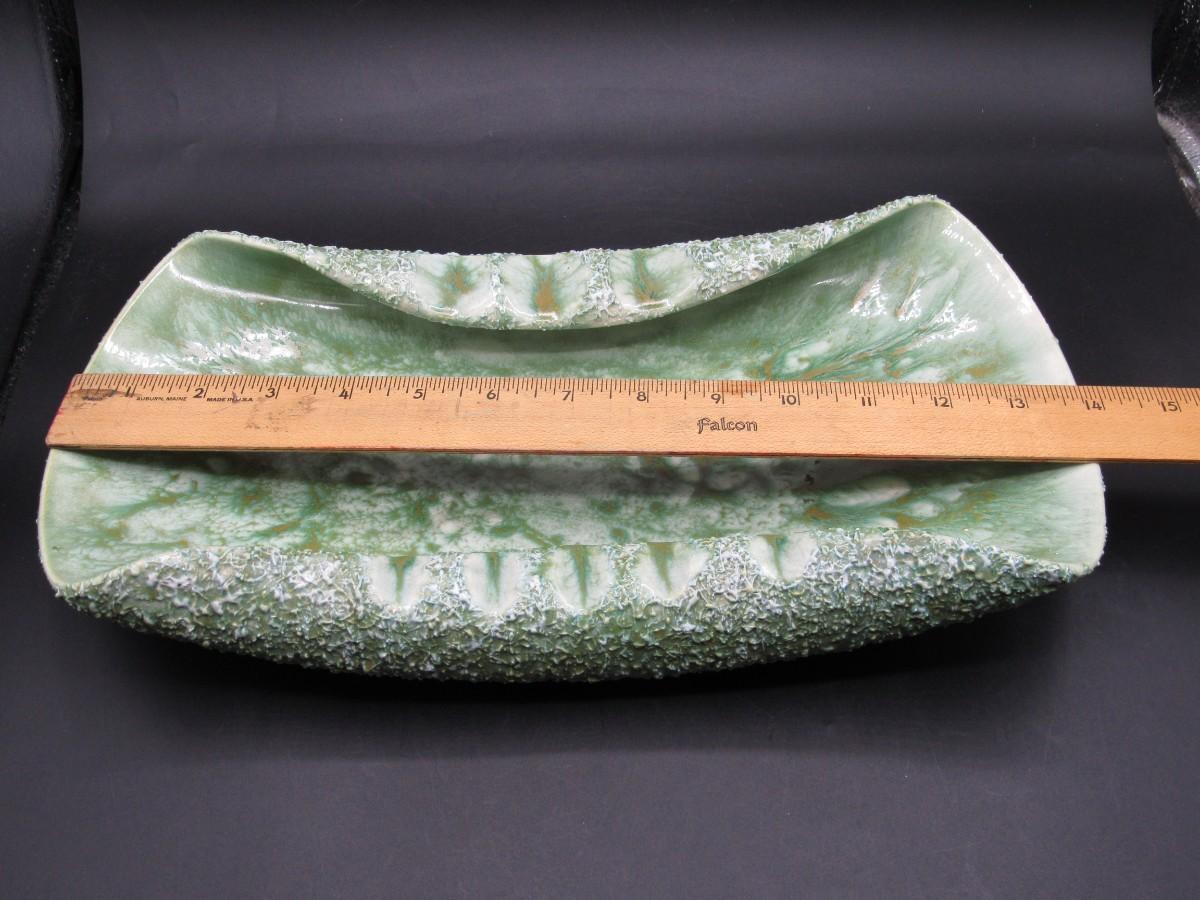 MCM Midcentury Textured Crystalline Ceramic California Pottery Console Art Bowl Ashtray Signed Artist Ro Shep. In good vintage condition. Textured pale green color ceramic ashtray art bowl. About 14" length.