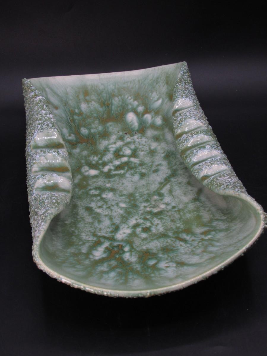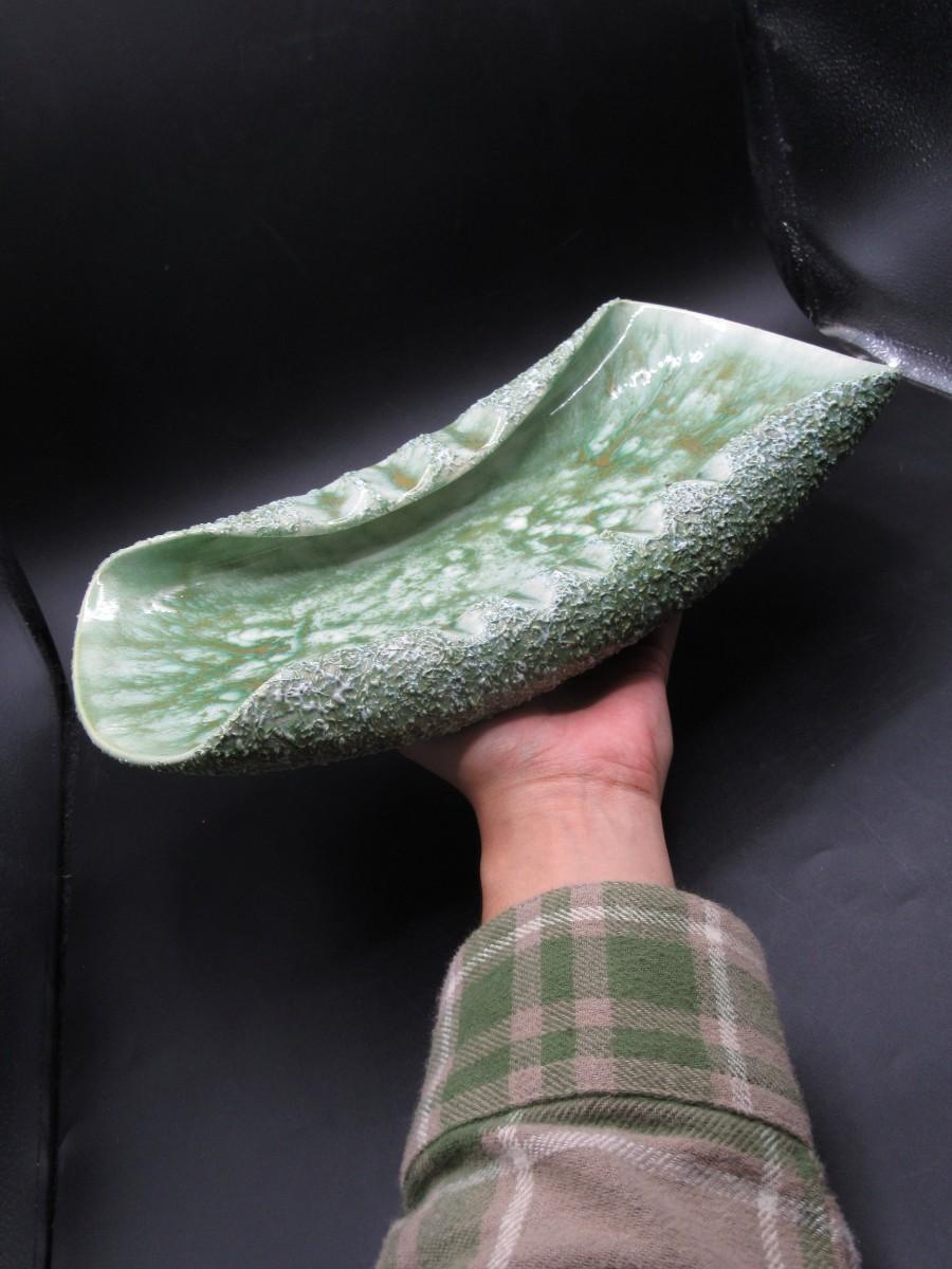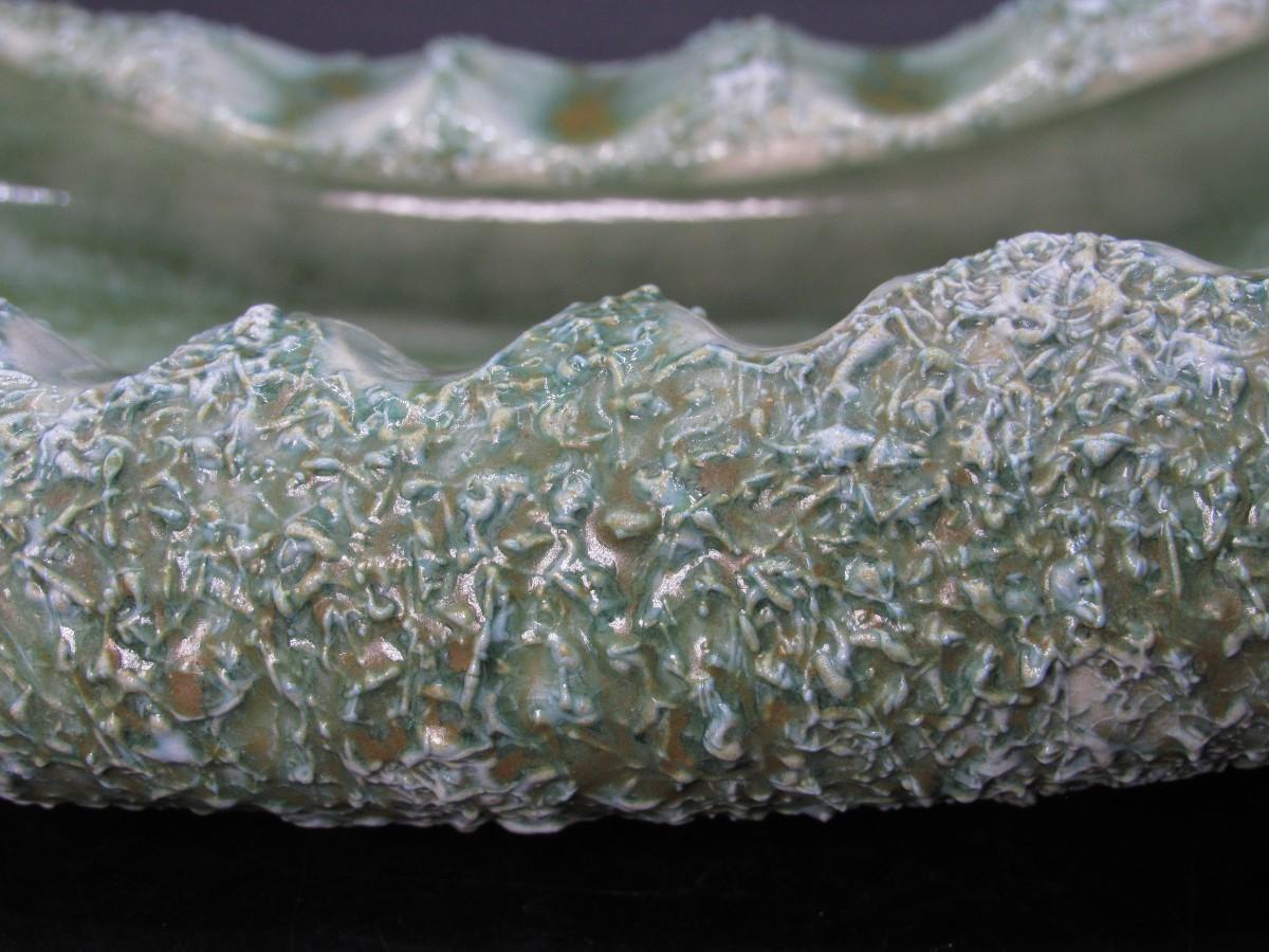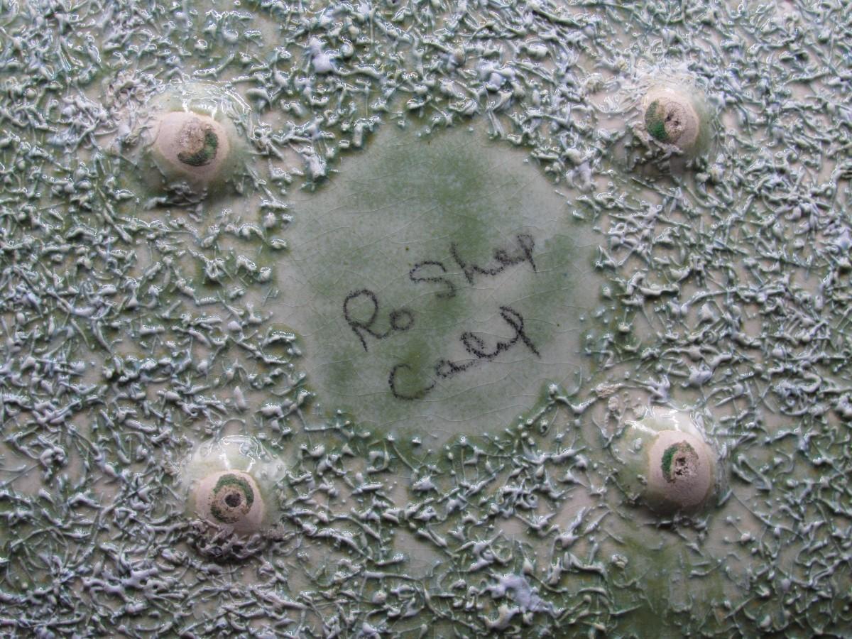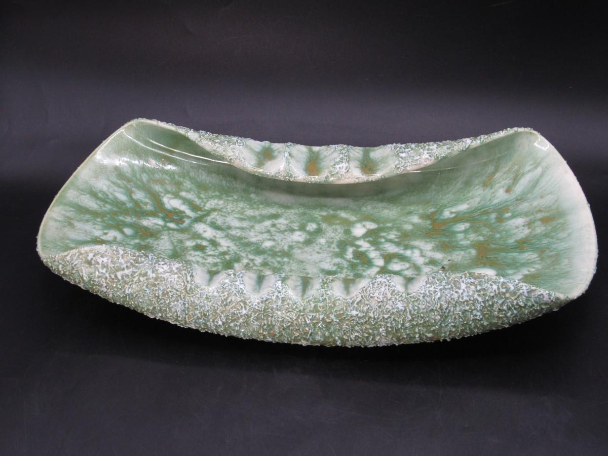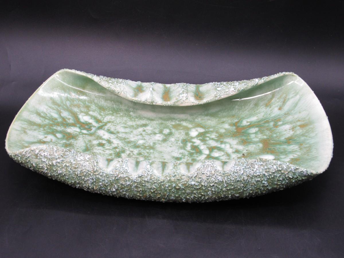 MCM Midcentury Textured Crystalline Ceramic California Pottery Console Art Bowl Ashtray Signed Artist Ro Shep. In good vintage condition. Textured pale green color ceramic ashtray art bowl. About 14" length.