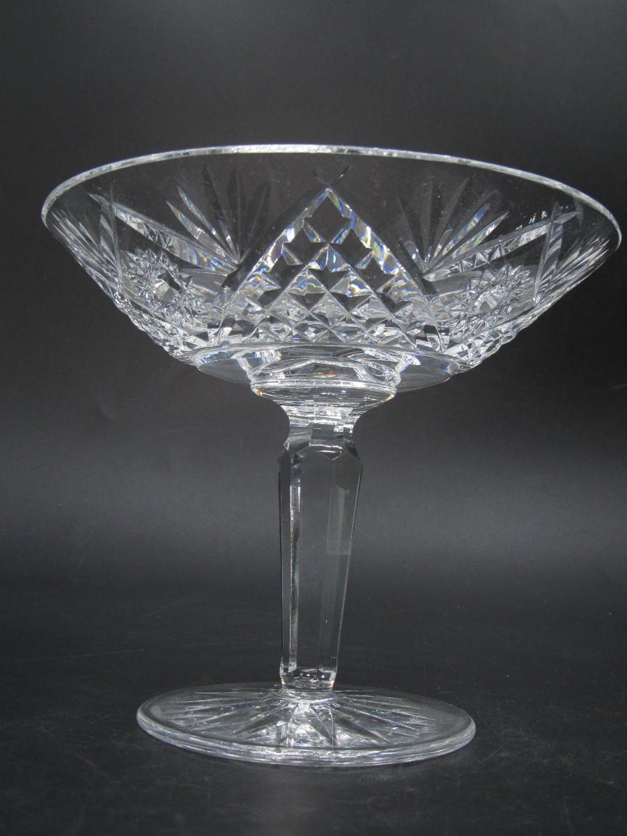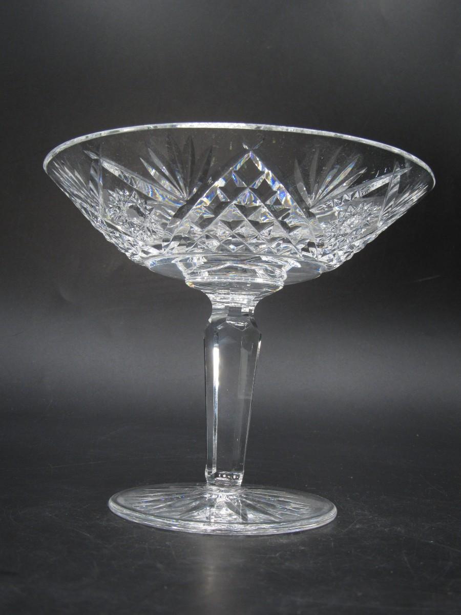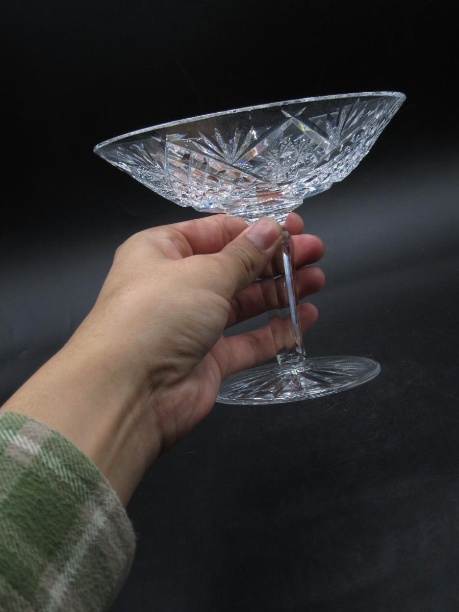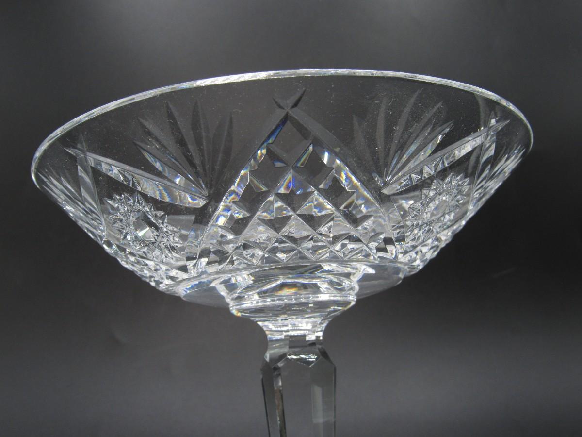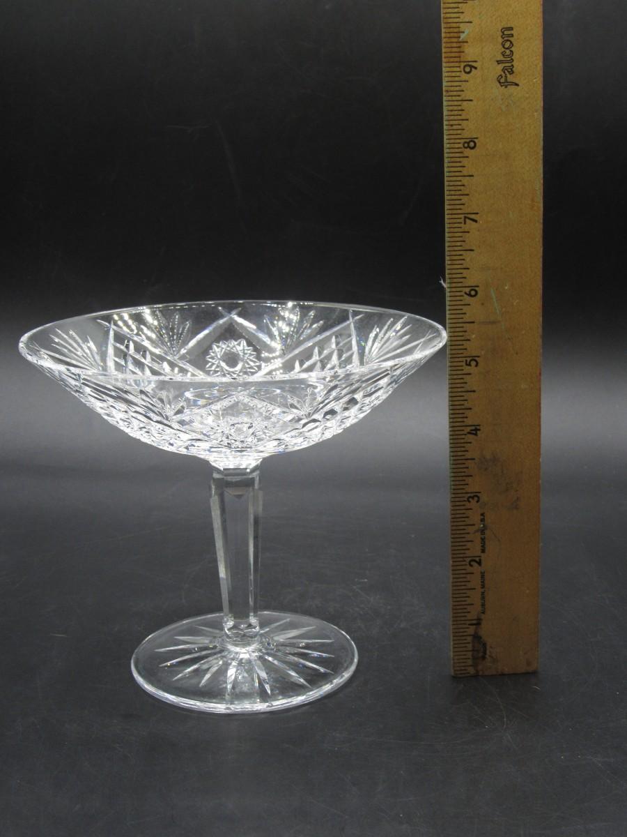Vintage Cut Crystal Glass Martini Glass Shaped Art Deco Compote Candy Dish Diamond and Star Pattern