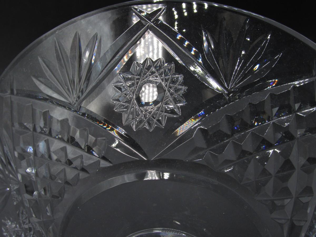 Vintage Cut Crystal Glass Martini Glass Shaped Art Deco Compote Candy Dish Diamond and Star Pattern. In good condition. Brilliant sparkle from the cut pattern.