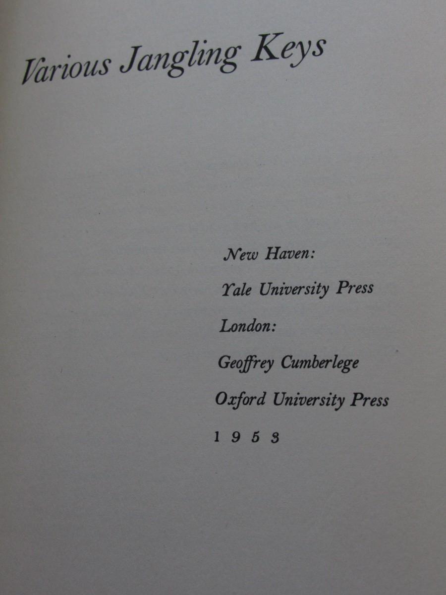 Vintage Yale Series of Younger Poets 1953 Varius Jangling Keys Hardcoverbook