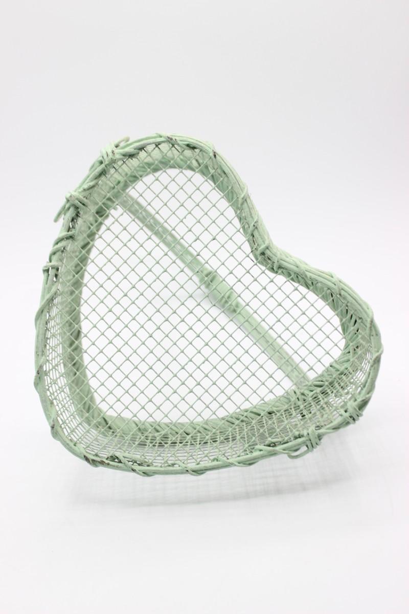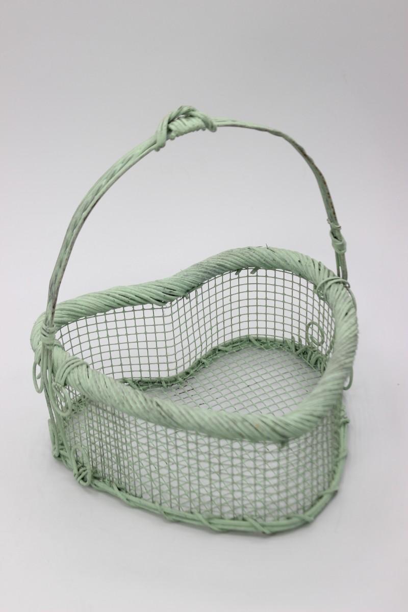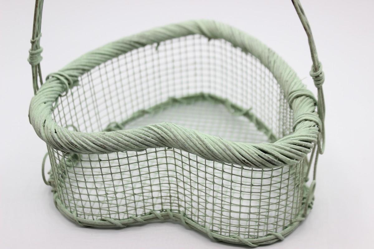 Weathered Cottagecore Shabby Chic Mint Green Heart Shaped Basket
