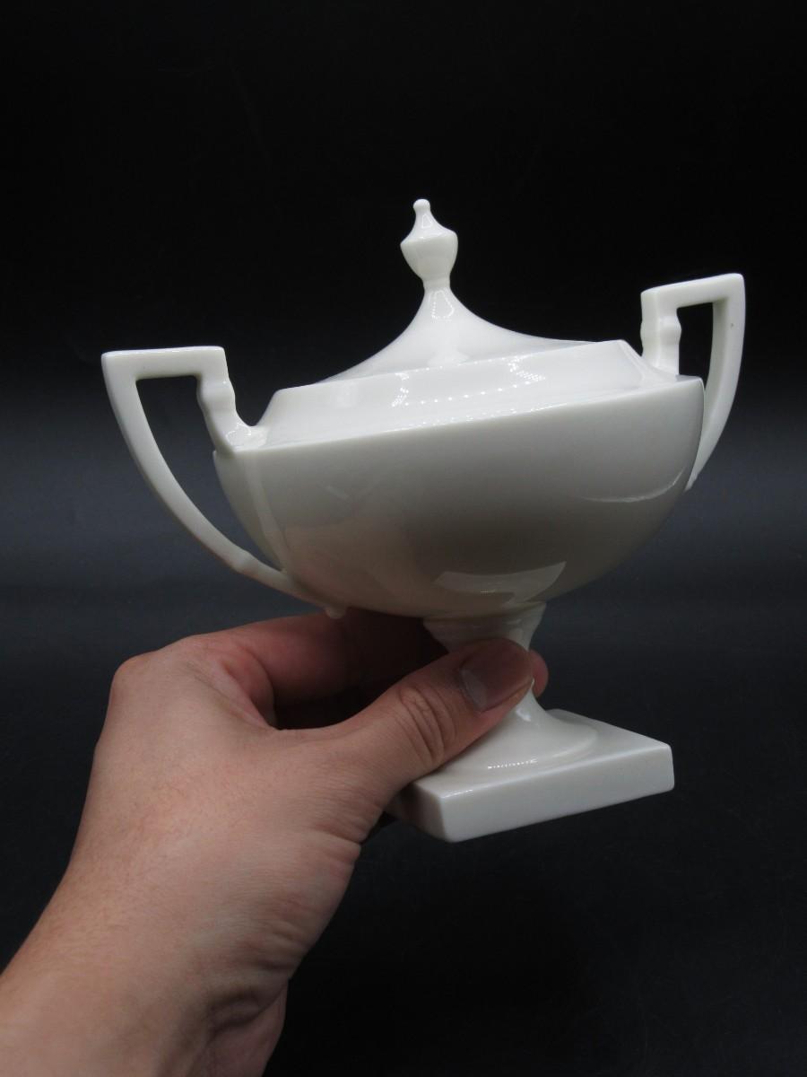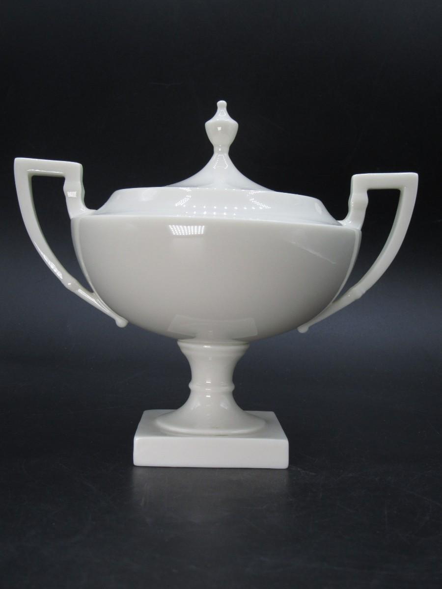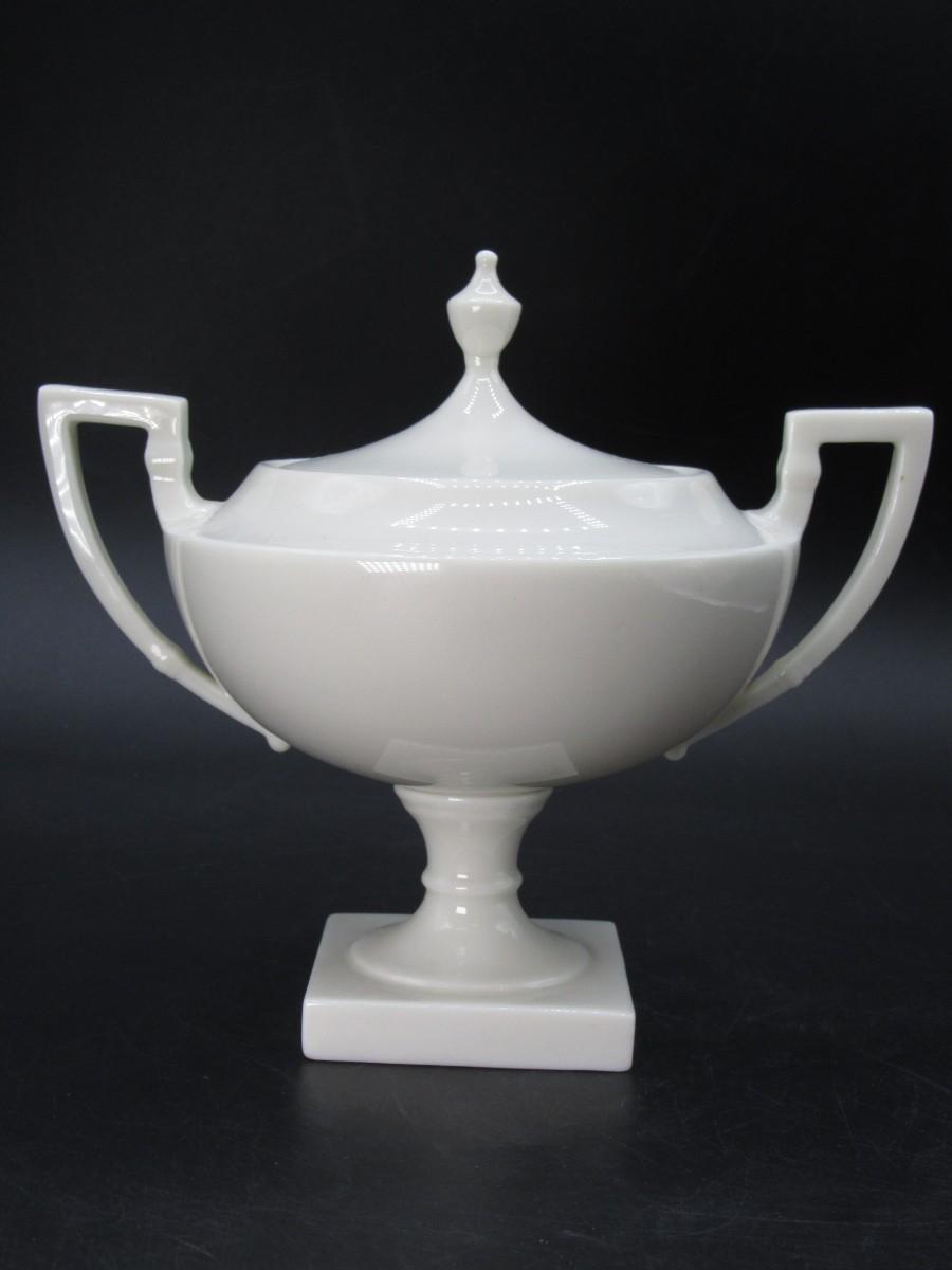 Vintage White Lenox Green Label Porcelain Trophy Style Double Handle Lidded Sugar Bowl Dish