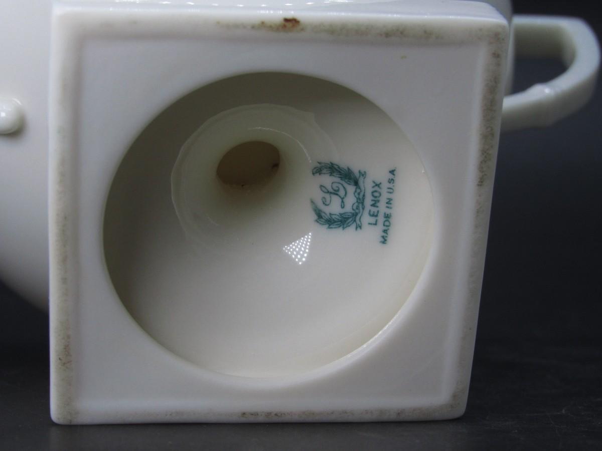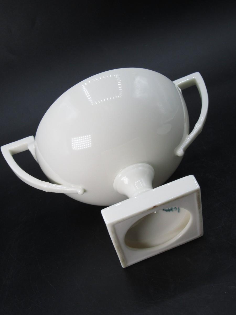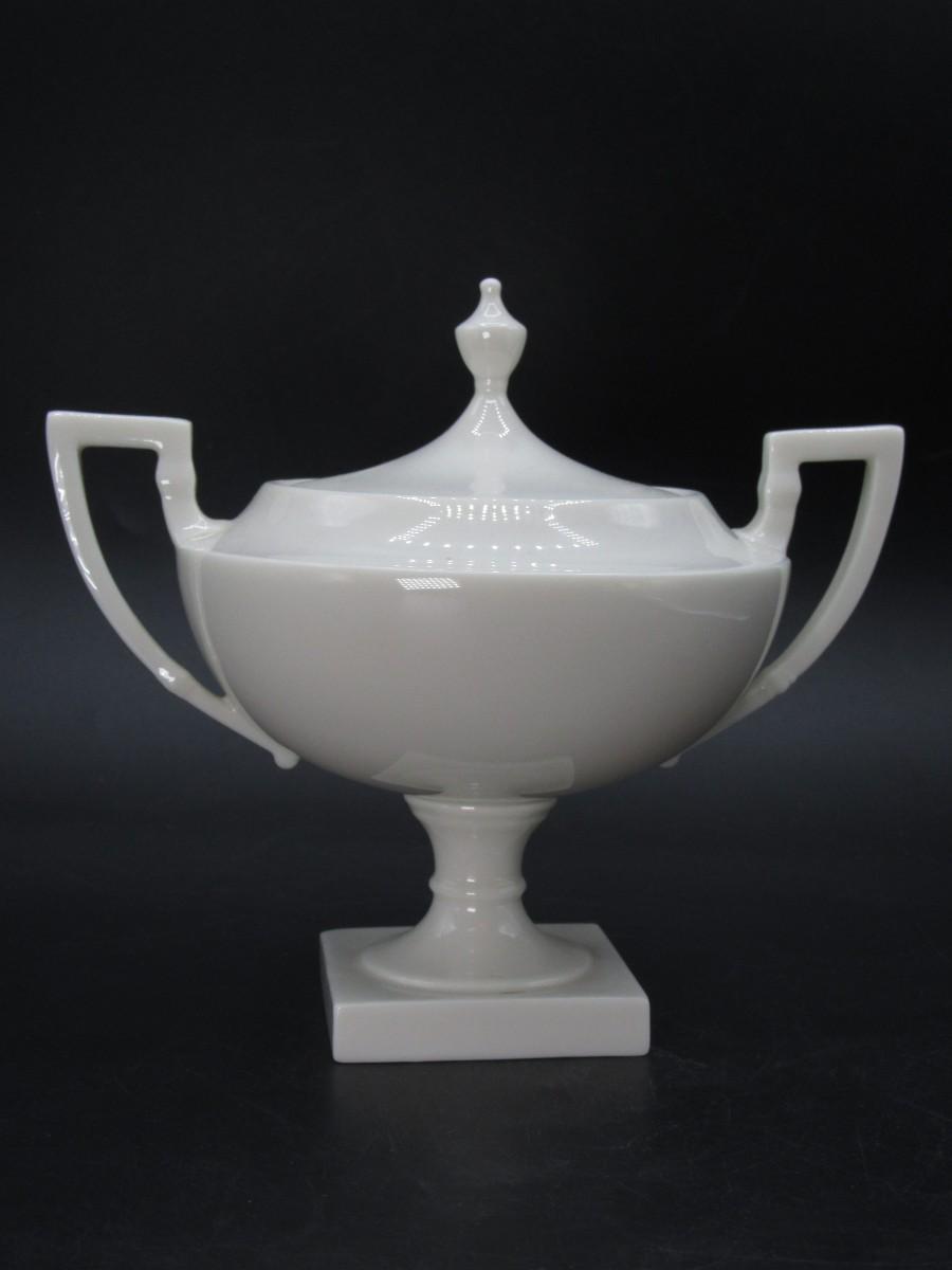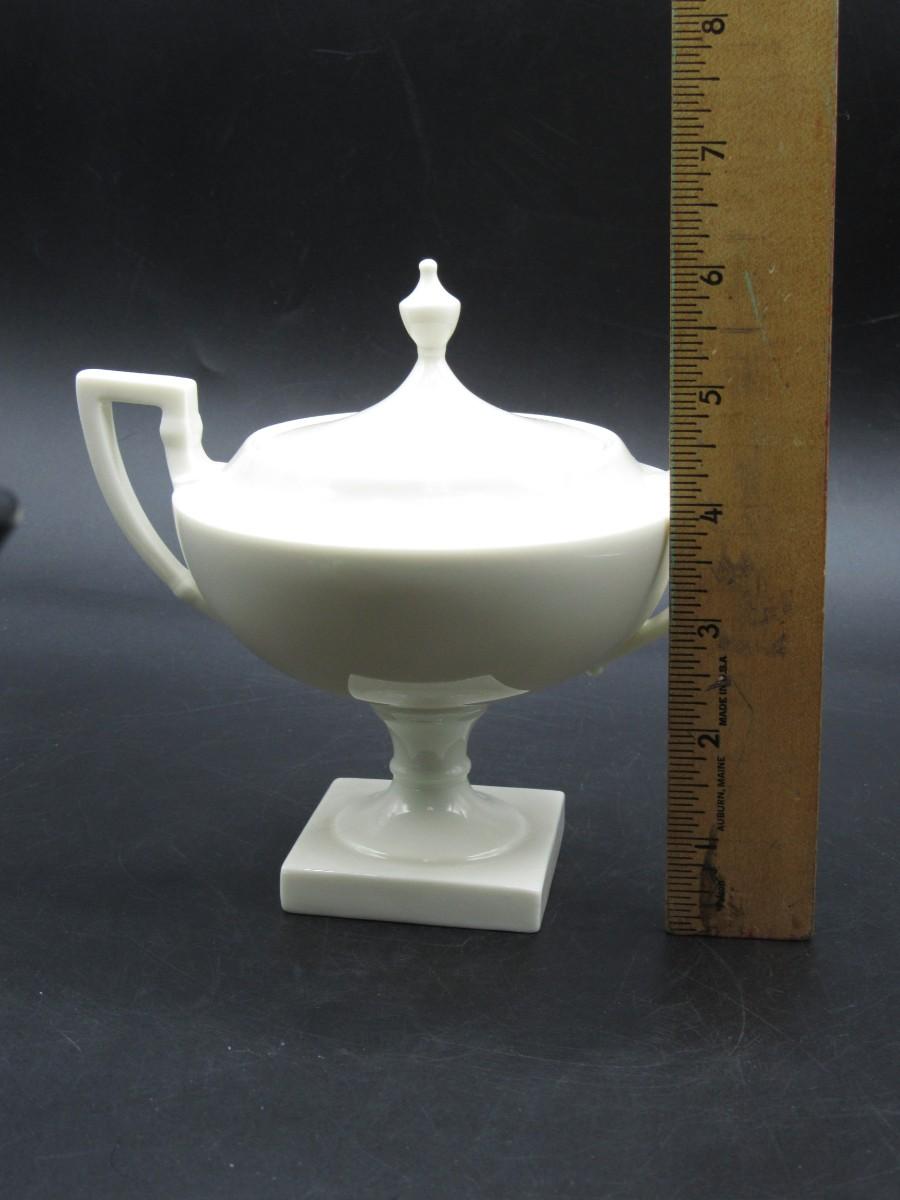 Vintage White Lenox Green Label Porcelain Trophy Style Double Handle Lidded Sugar Bowl Dish
