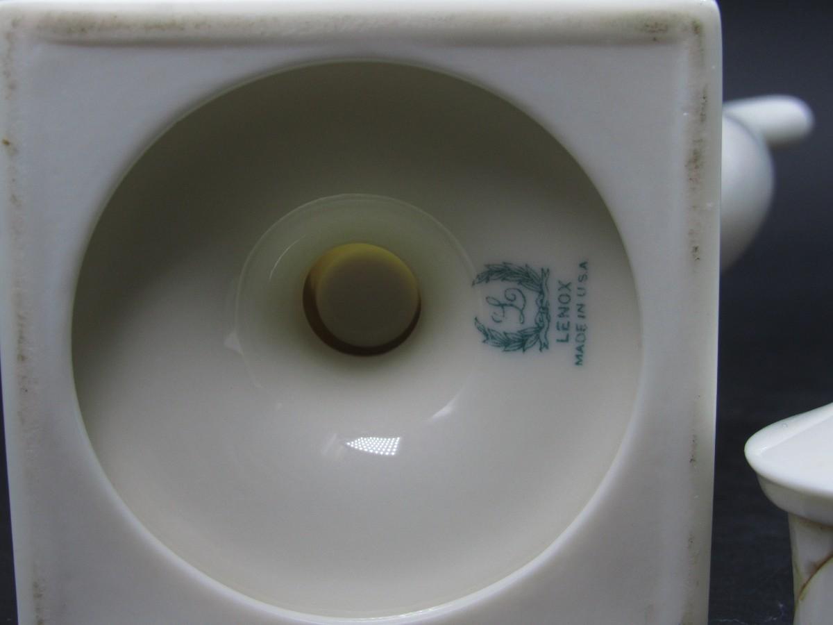 Vintage White Lenox China Footed Teapot Coffee Pot Green Label