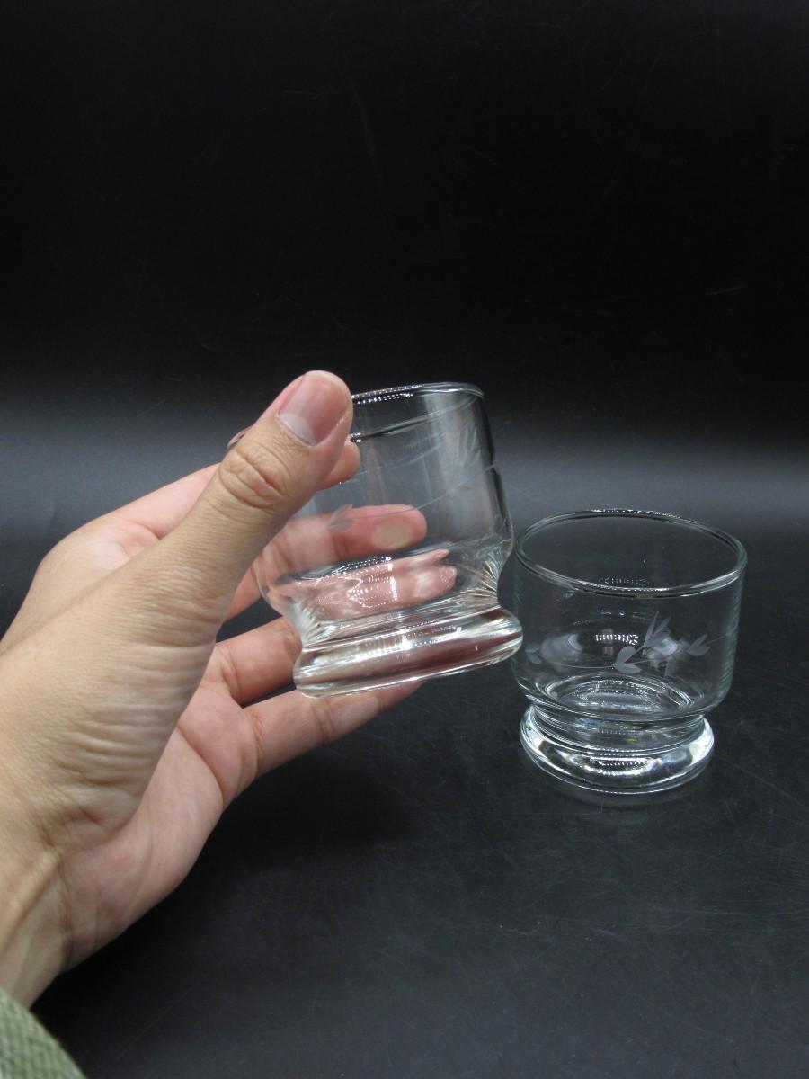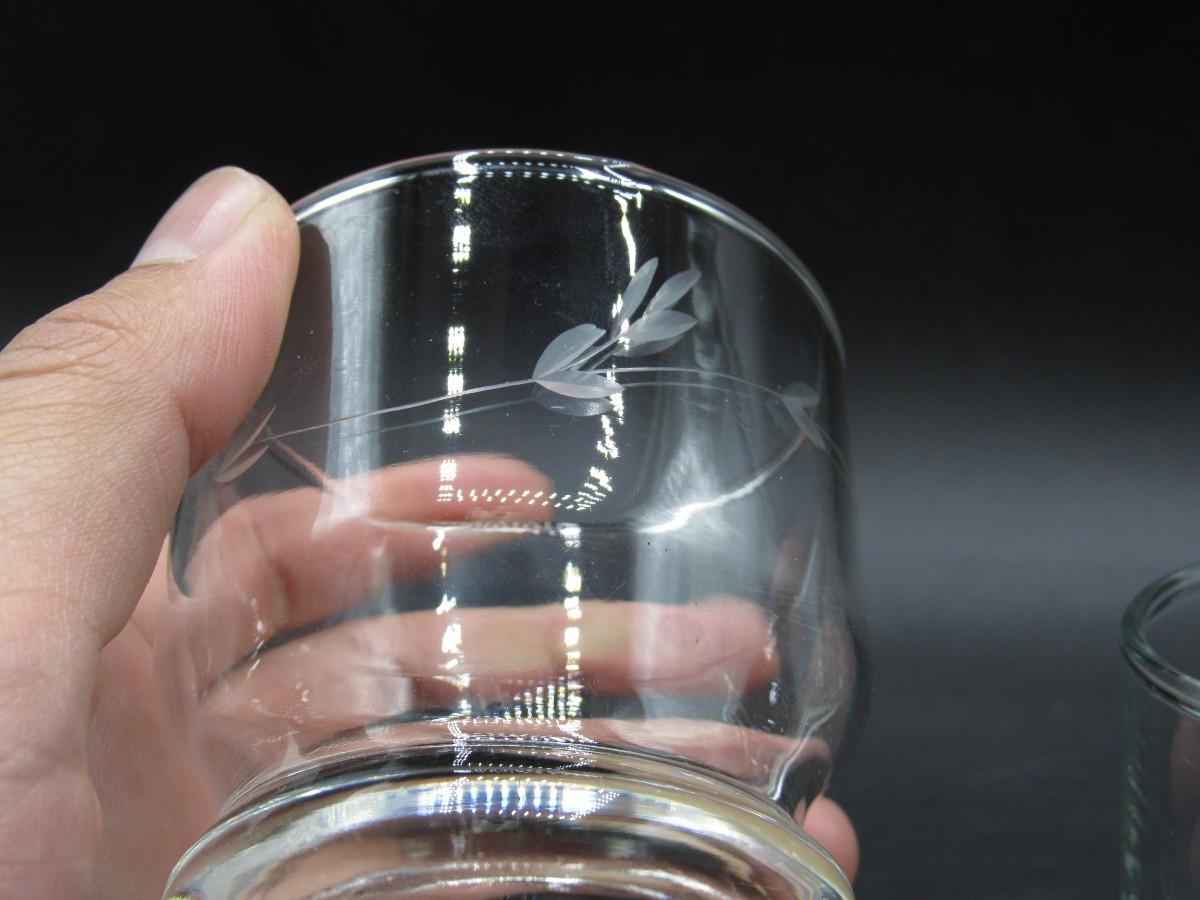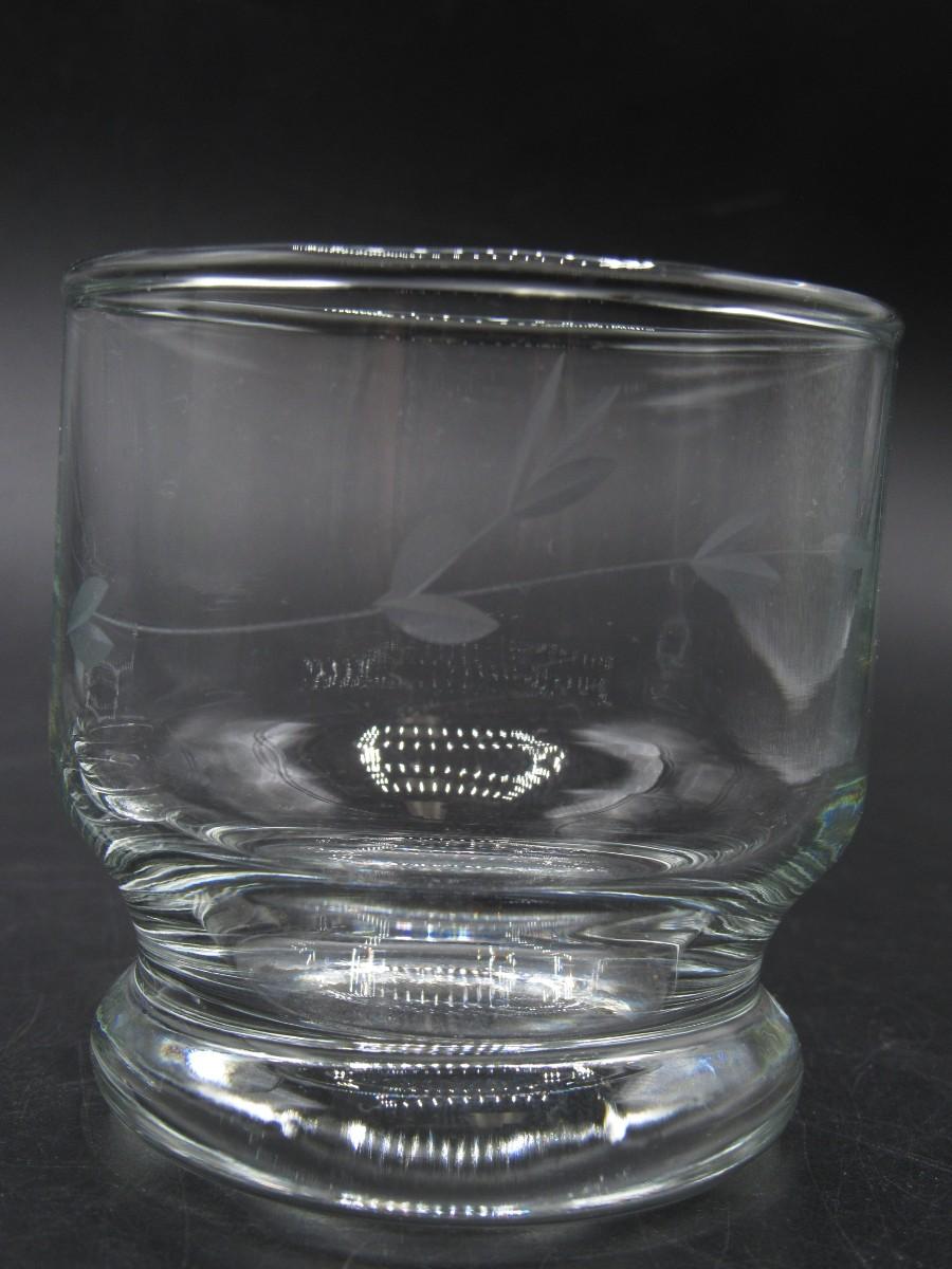 Pair of Vintage Flower Vine Etched Rocks Lowball Juice Glasses. In good condition. 3" size.