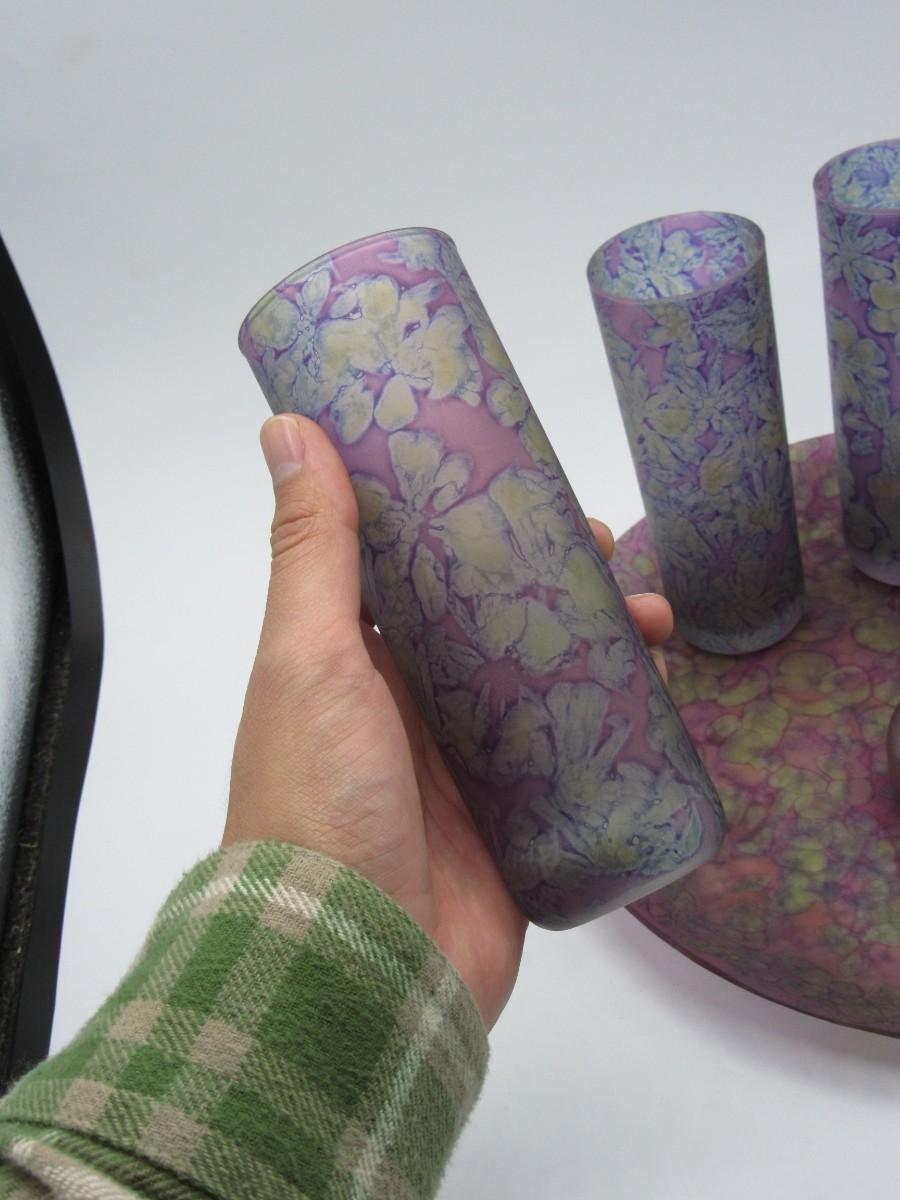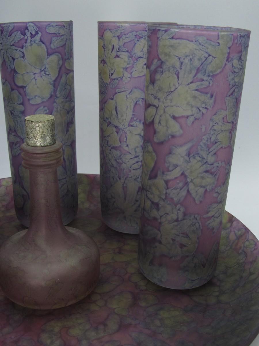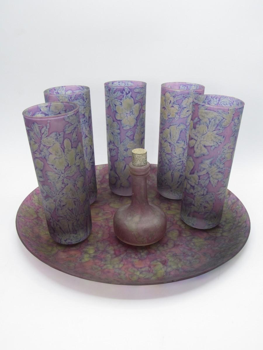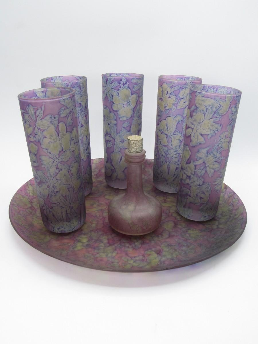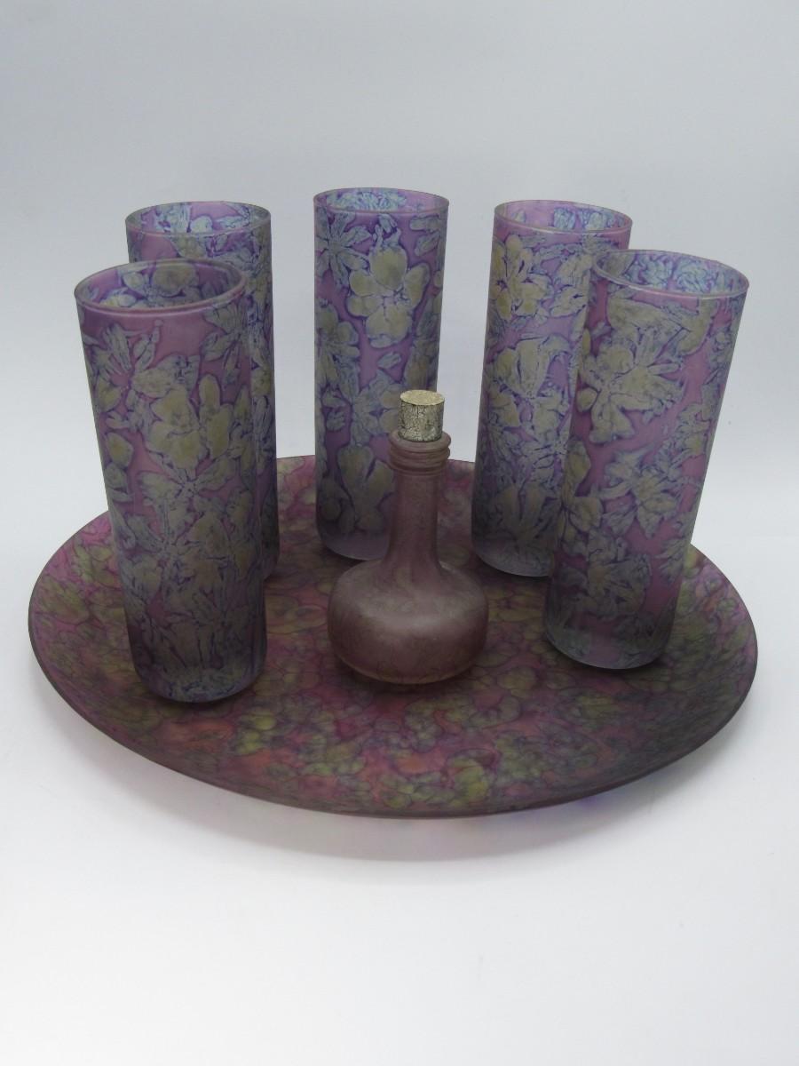 Vintage Groovy Art Deco Purple Leaf Design Matte Glass Drink Serving Set