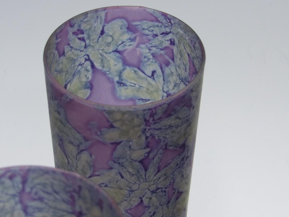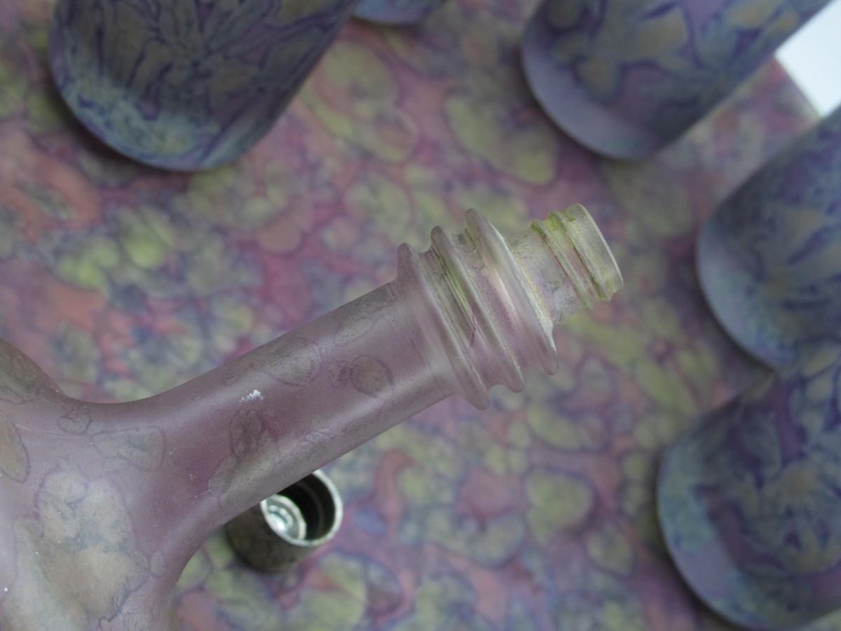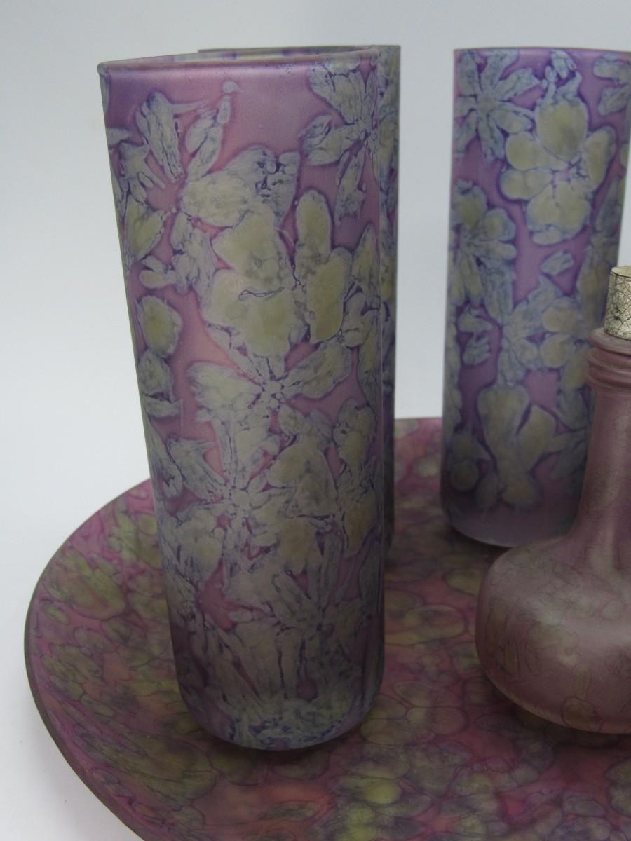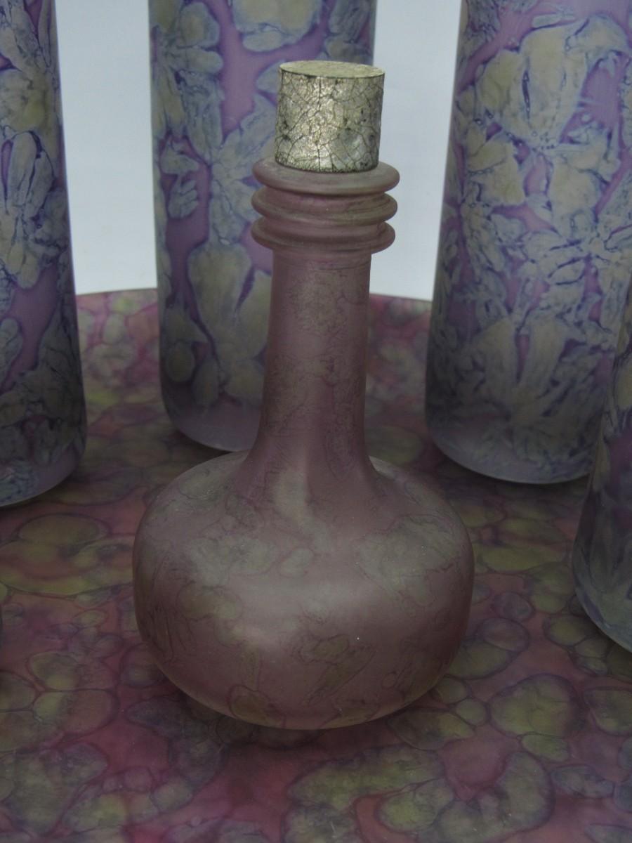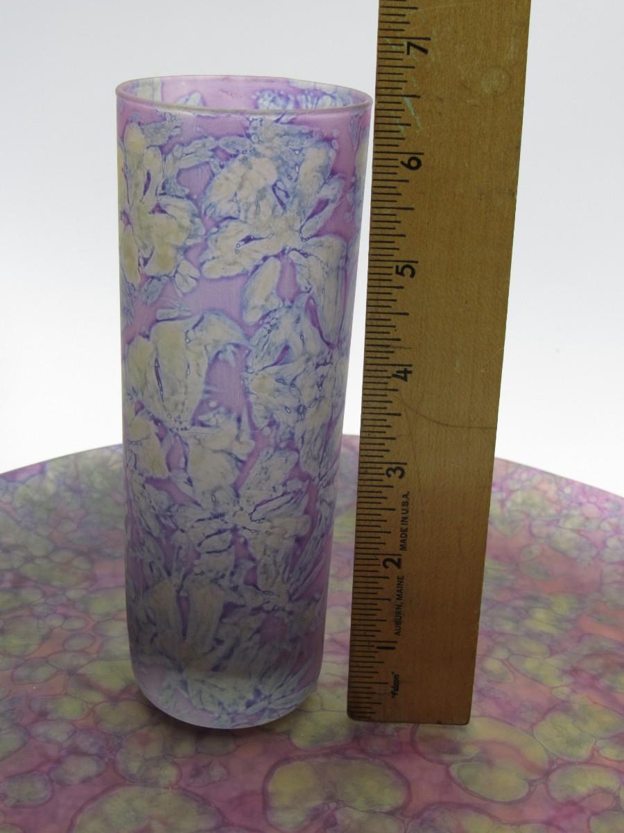 Vintage Groovy Art Deco Purple Leaf Design Matte Glass Drink Serving Set