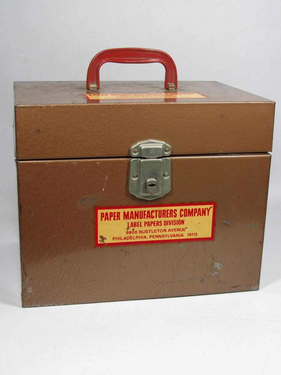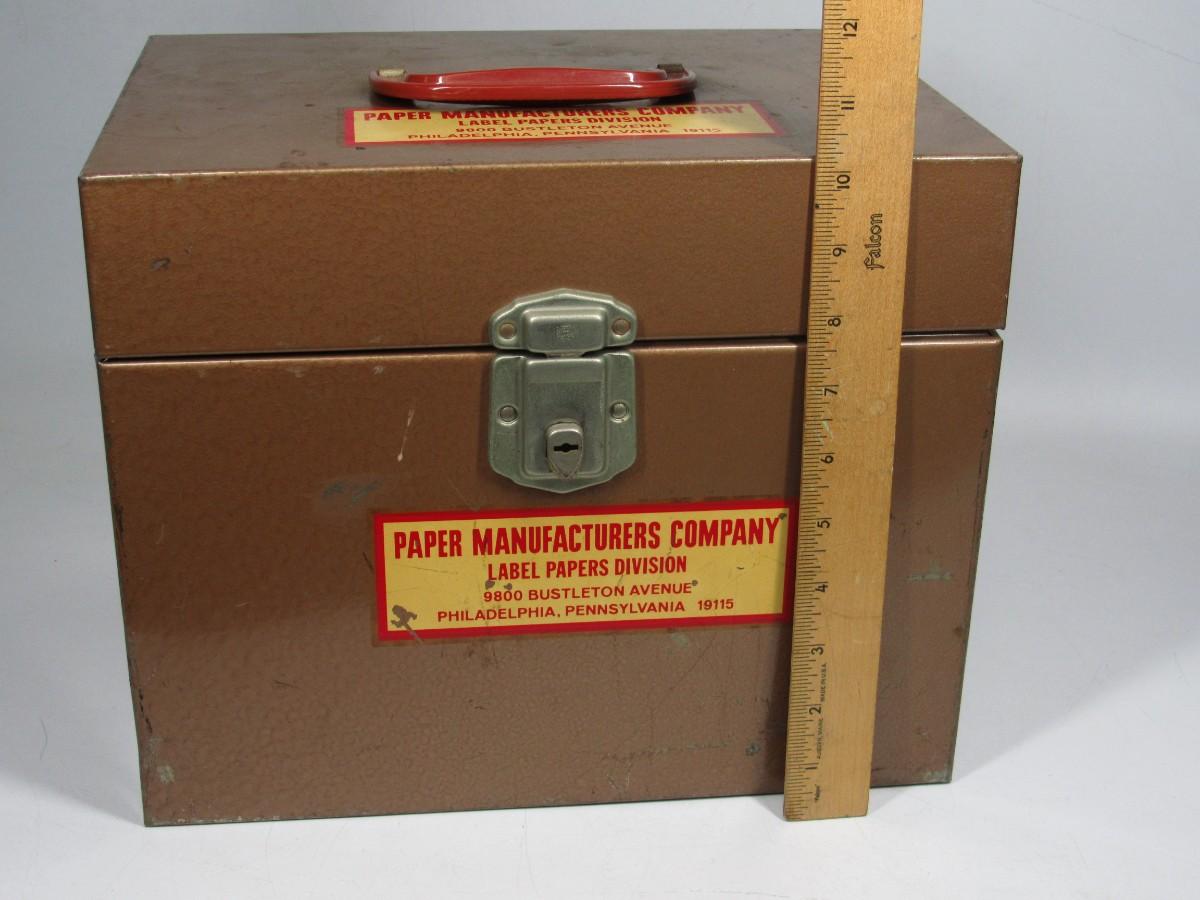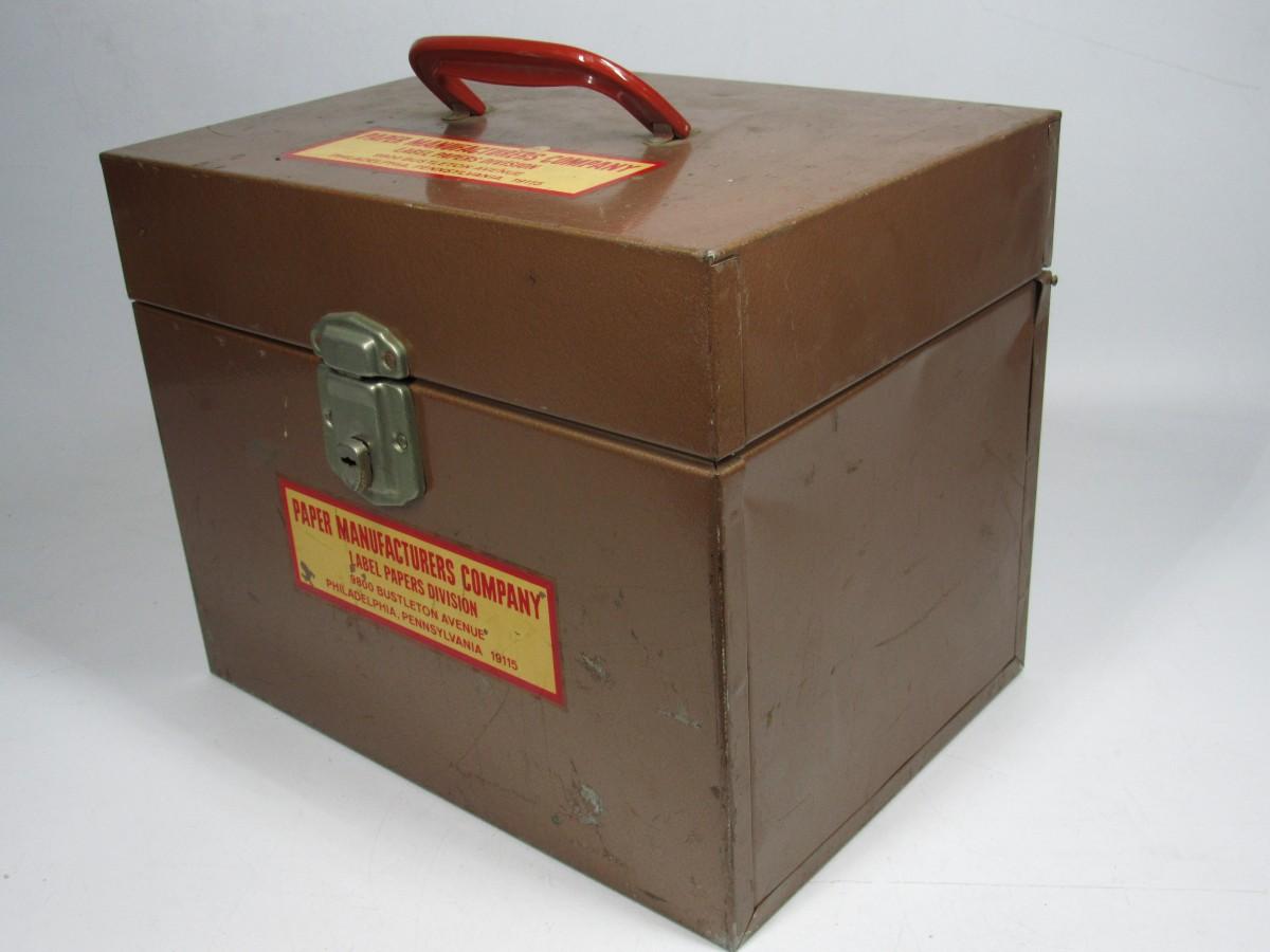 Vintage Paper Manufacturers Company Metal Handled Square Locking Filing Box