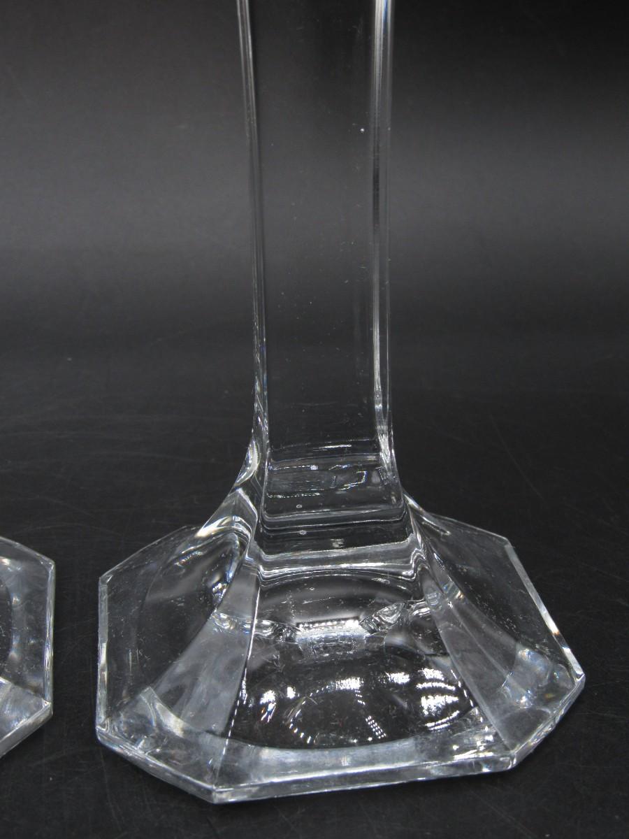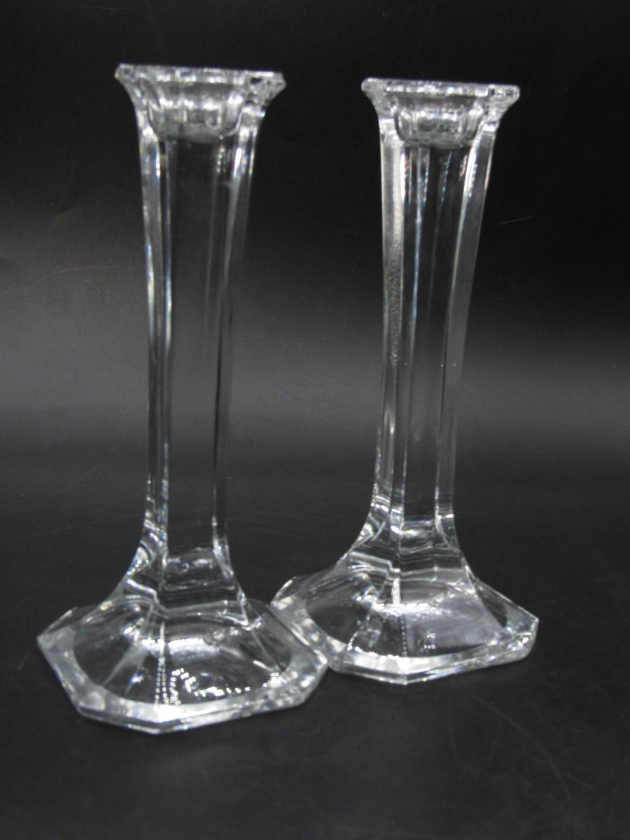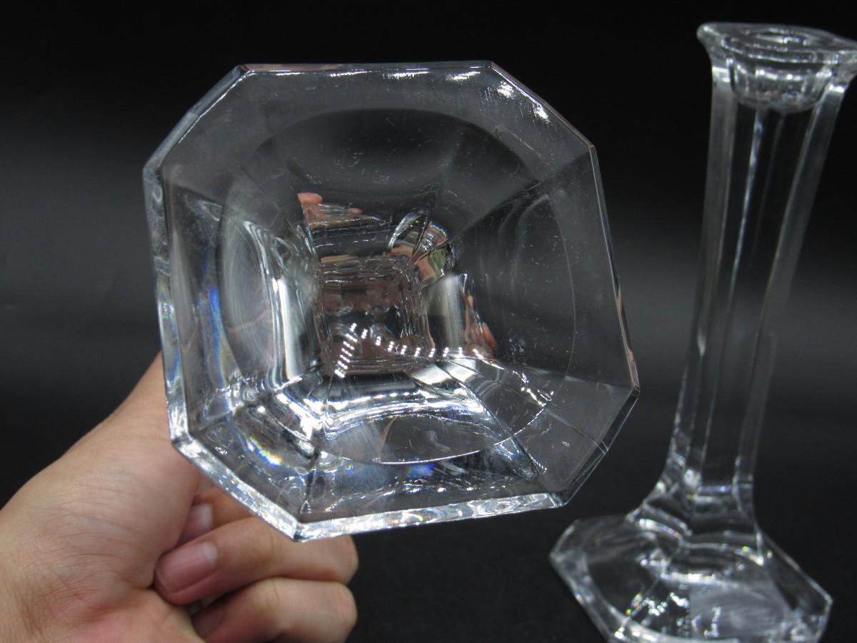Pair of Retro Unmarked Mid Century Modern Squared Off Glass Candle Holders