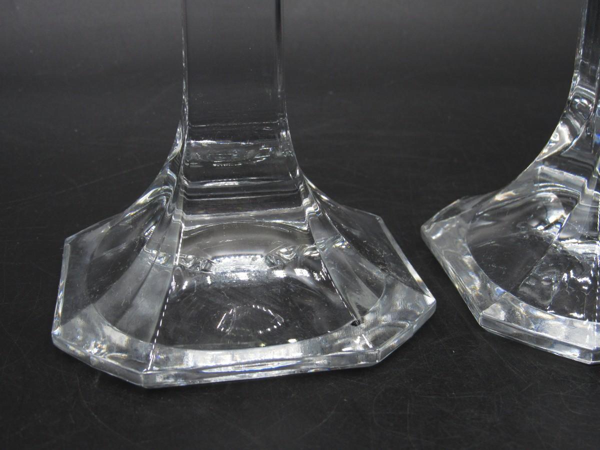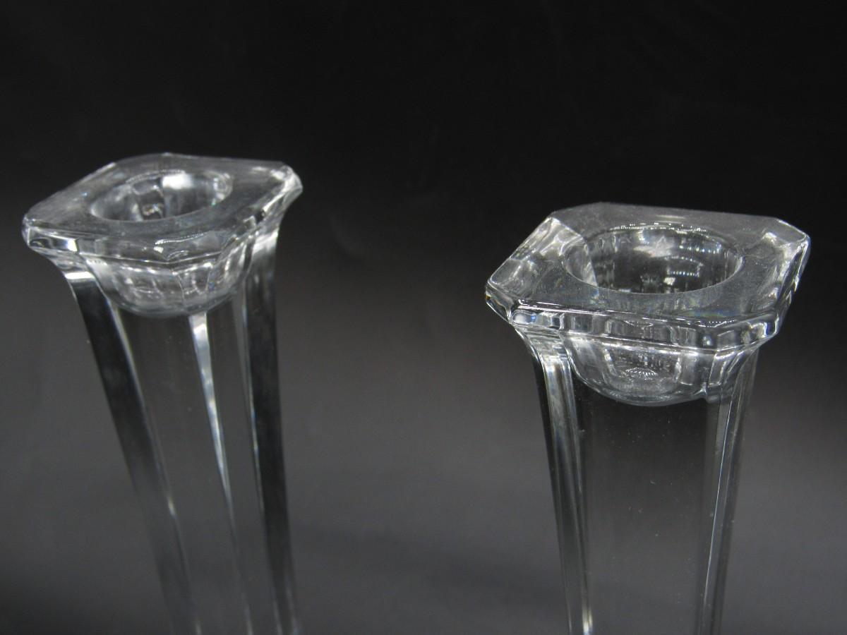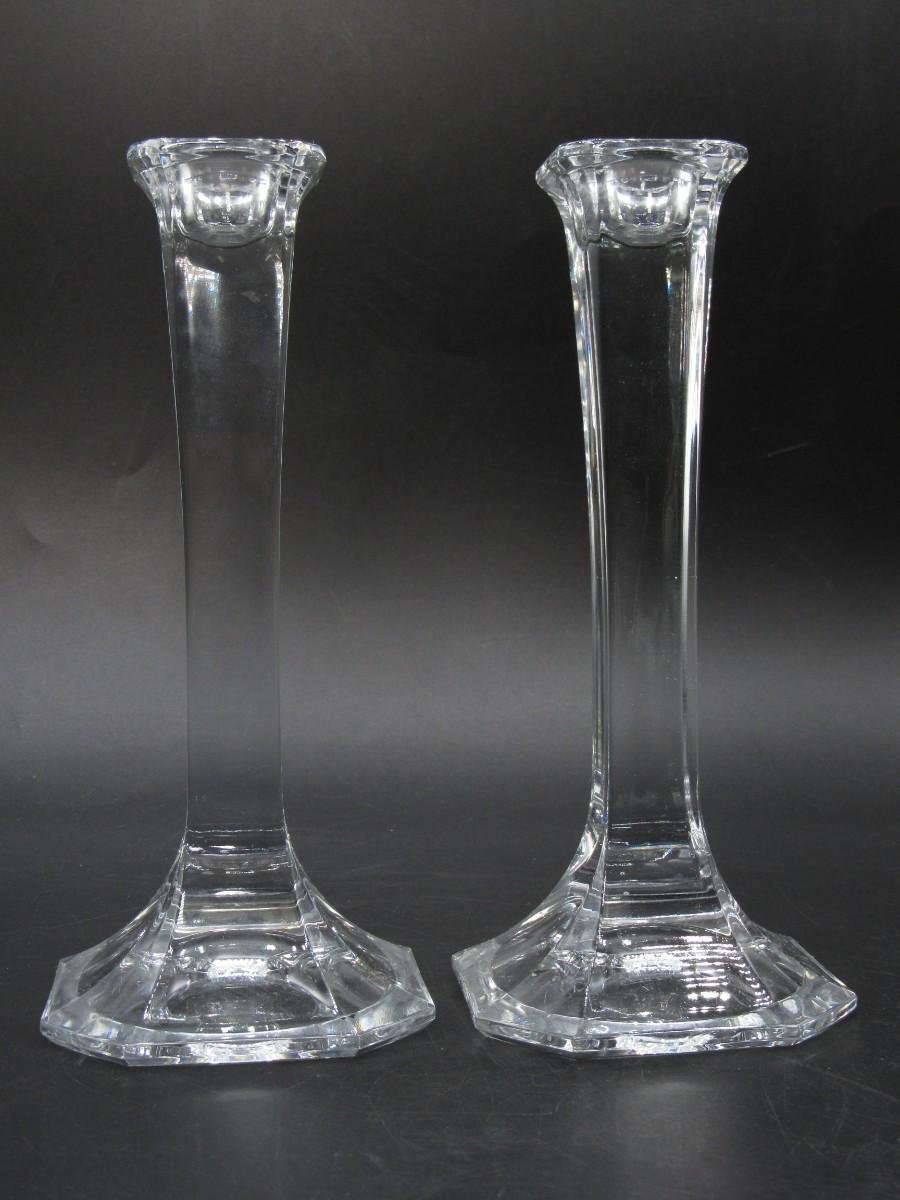 Pair of Retro Unmarked Mid Century Modern Squared Off Glass Candle Holders