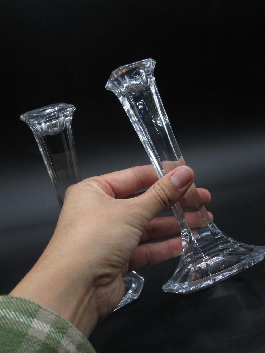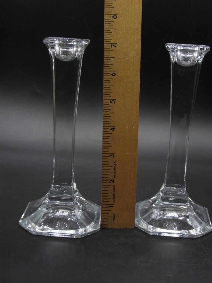 There is no significant damage to the glass candle holders and is in overall good collectible or useable condition. Check pictures for more details and for sizing.