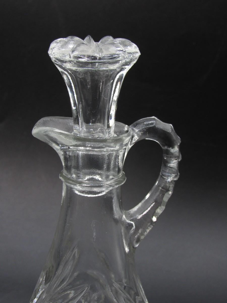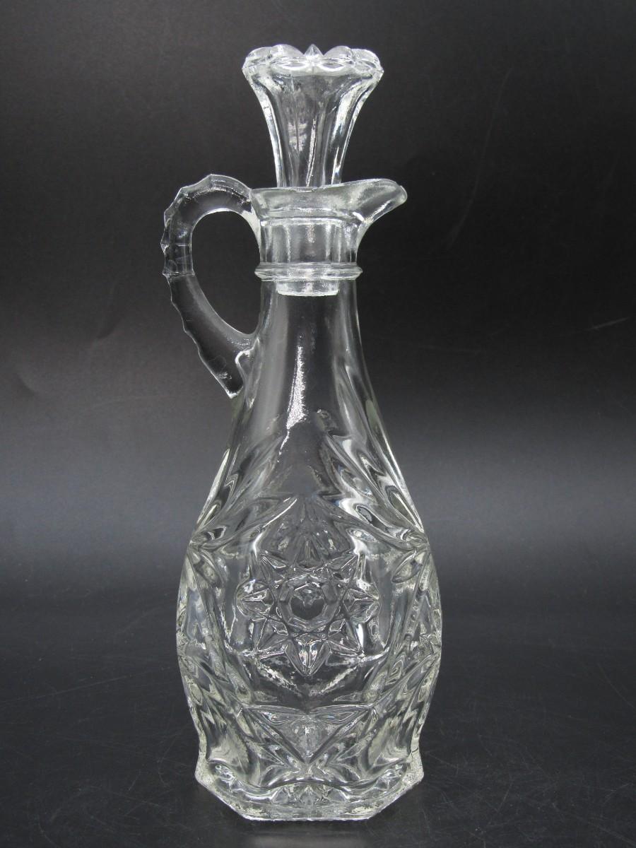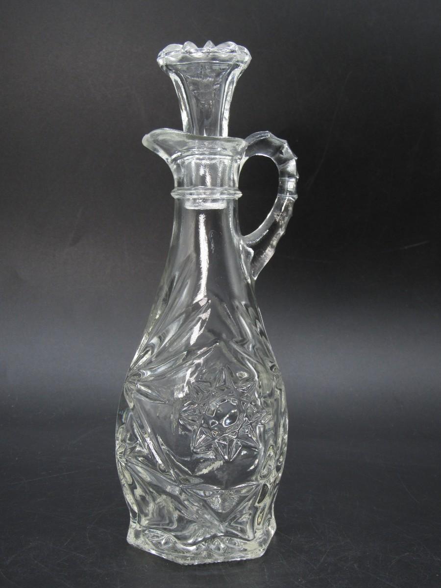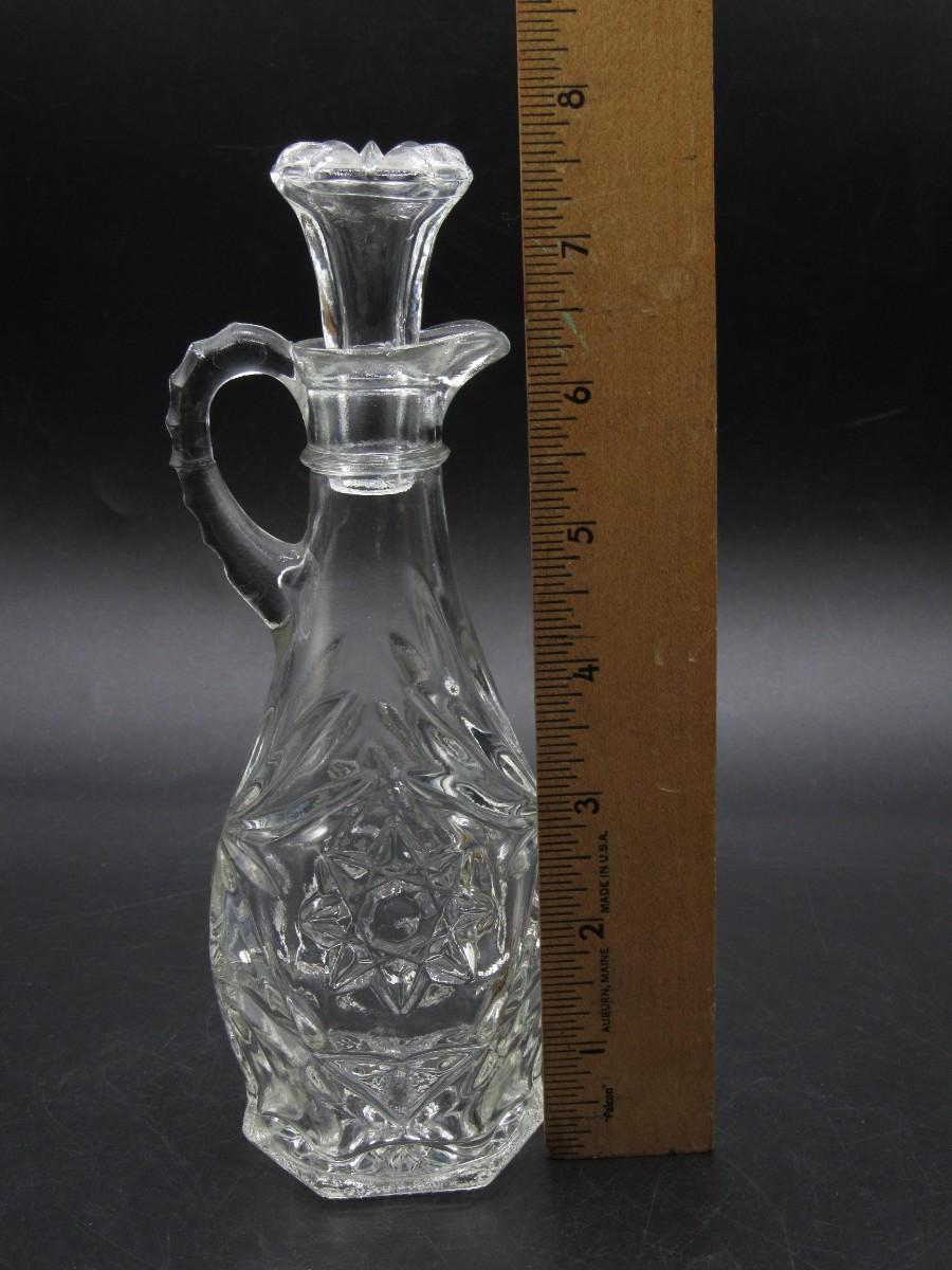 Small Vintage Intricate Crystal Prescut Glass Cruet Oil Kitchenware Bottle