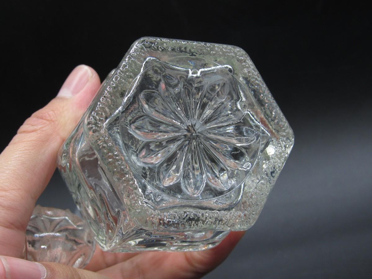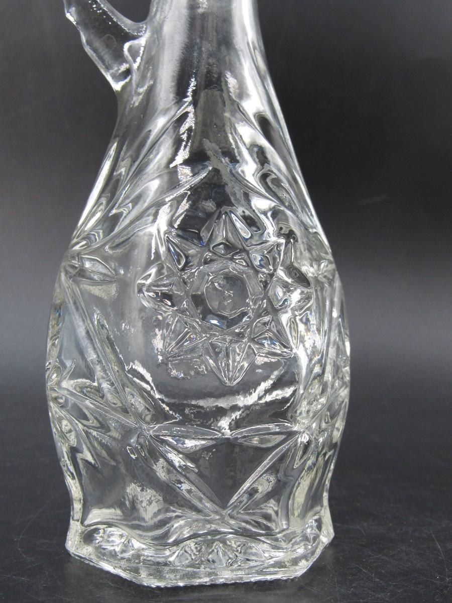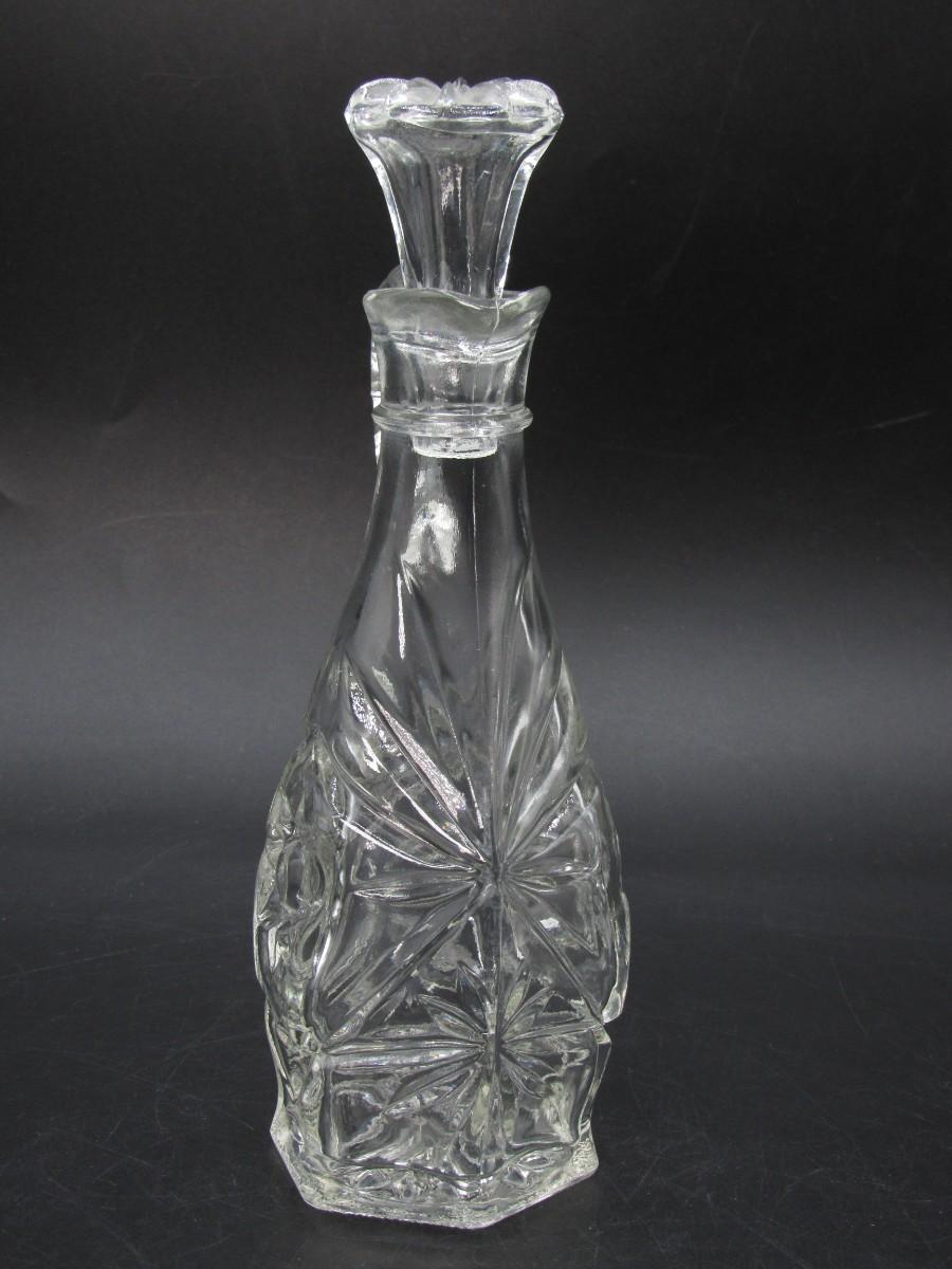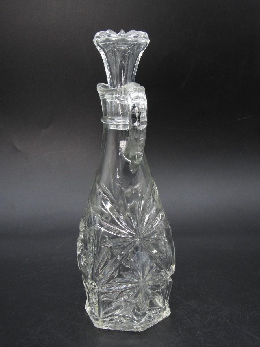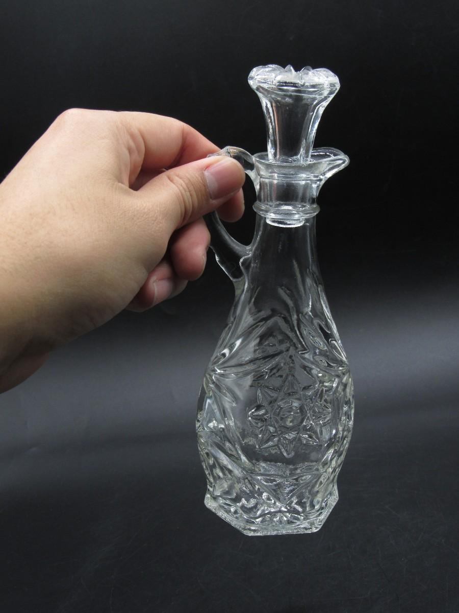 Small Vintage Intricate Crystal Prescut Glass Cruet Oil Kitchenware Bottle