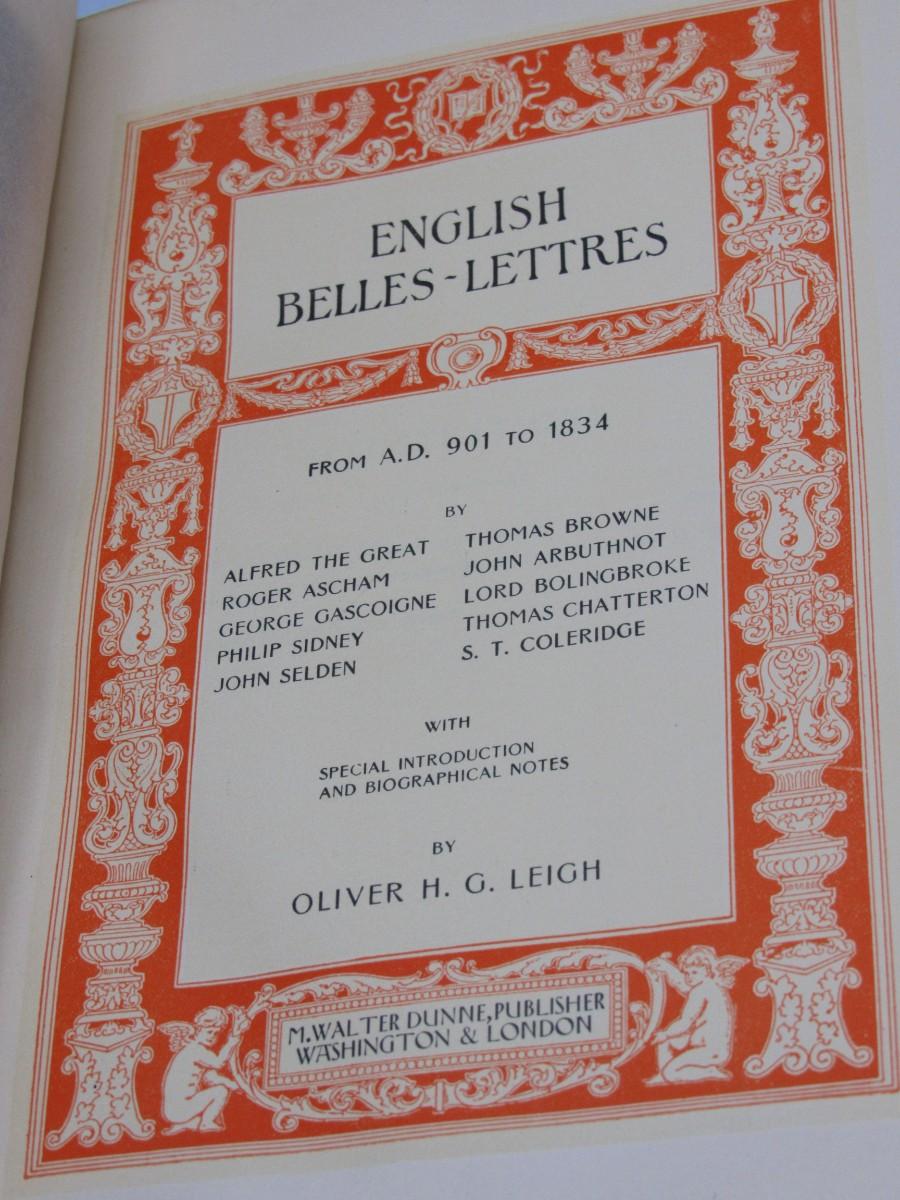 Antique 1901 Universal Classics Library English Belles-Lettres Collectible Literary Book