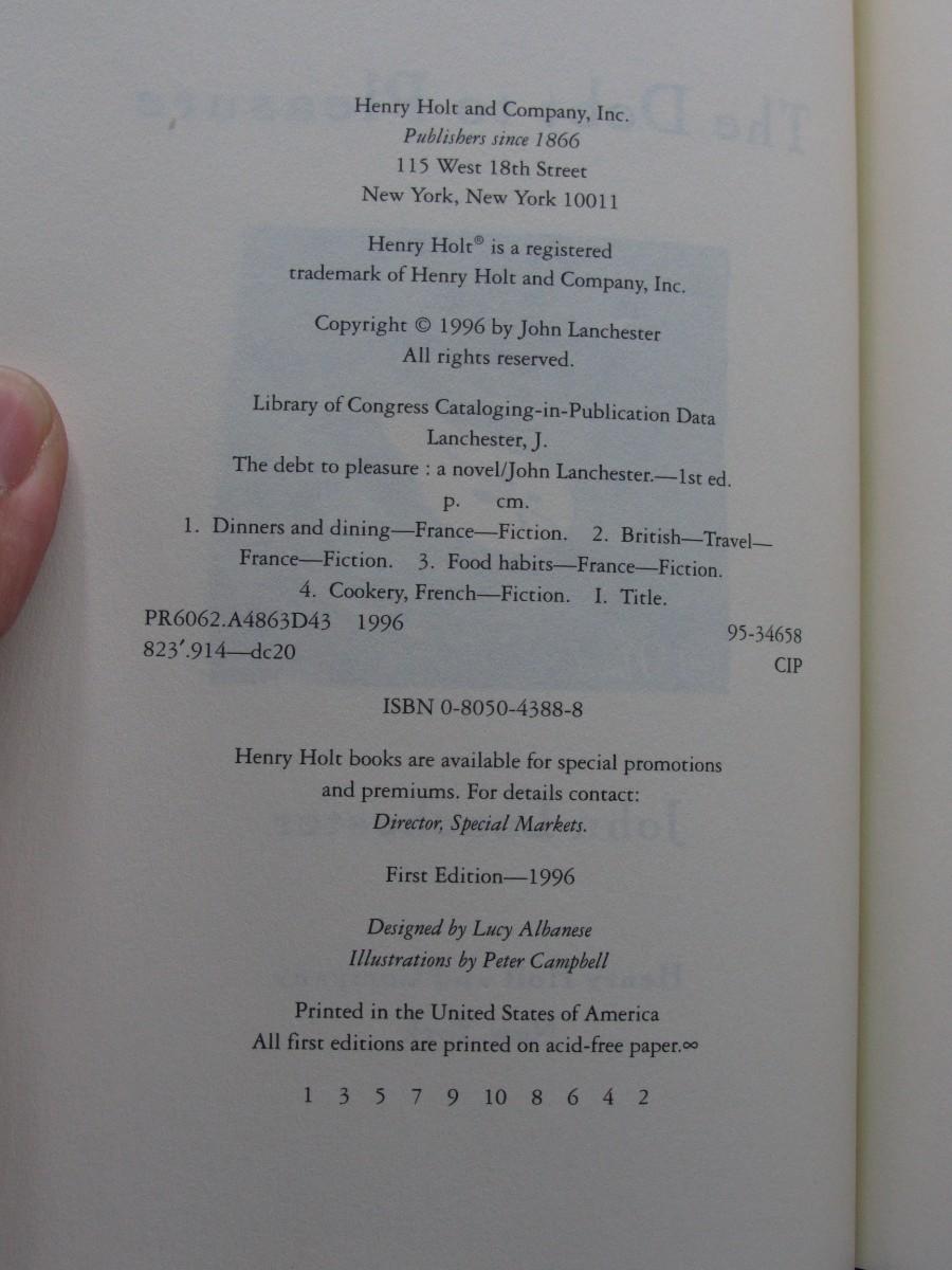 The Debt to Pleasure John Lanchester First Edition 1996 Retro Novel Book