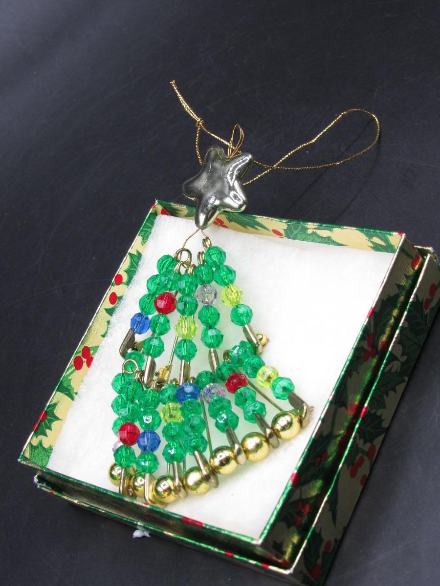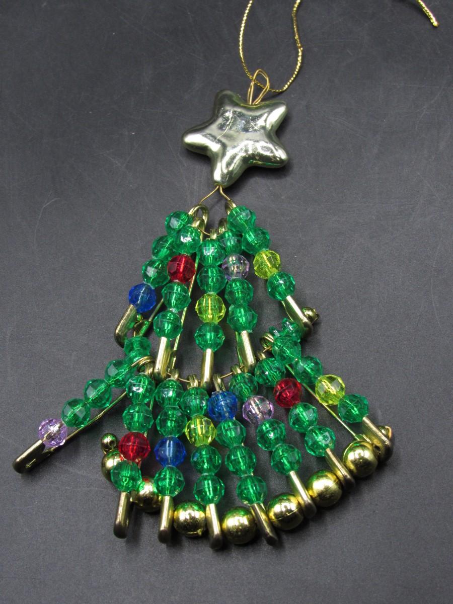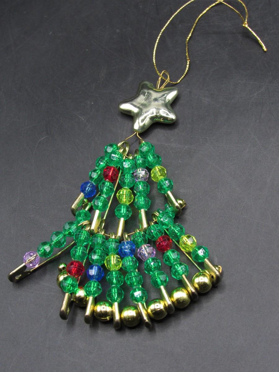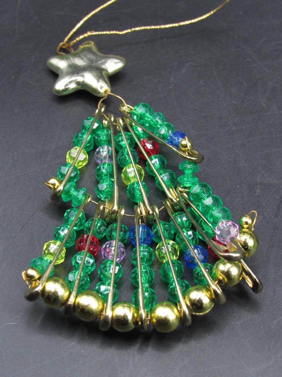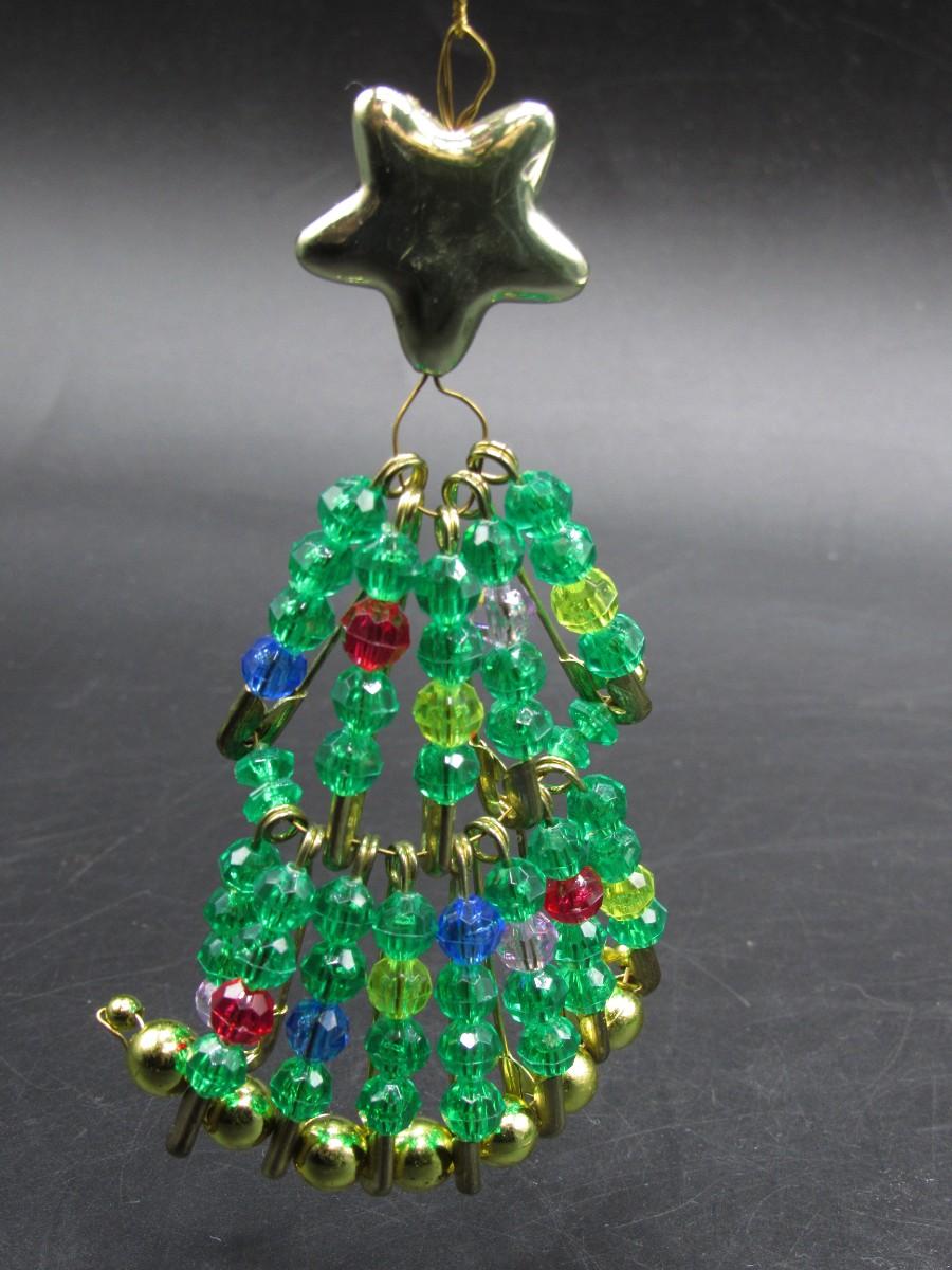 Retro Handmade Crafted Bobby Pin Beaded Christmas Tree Ornament Decor
