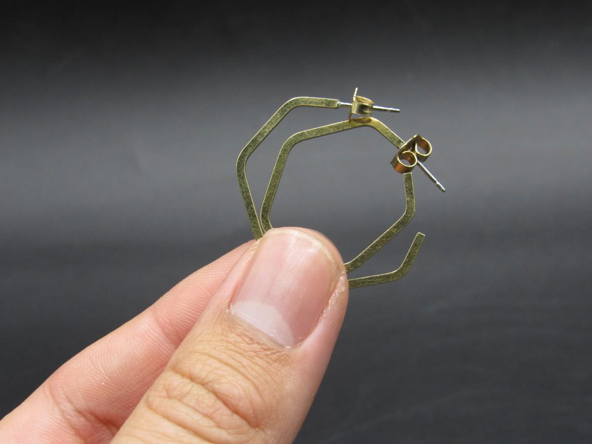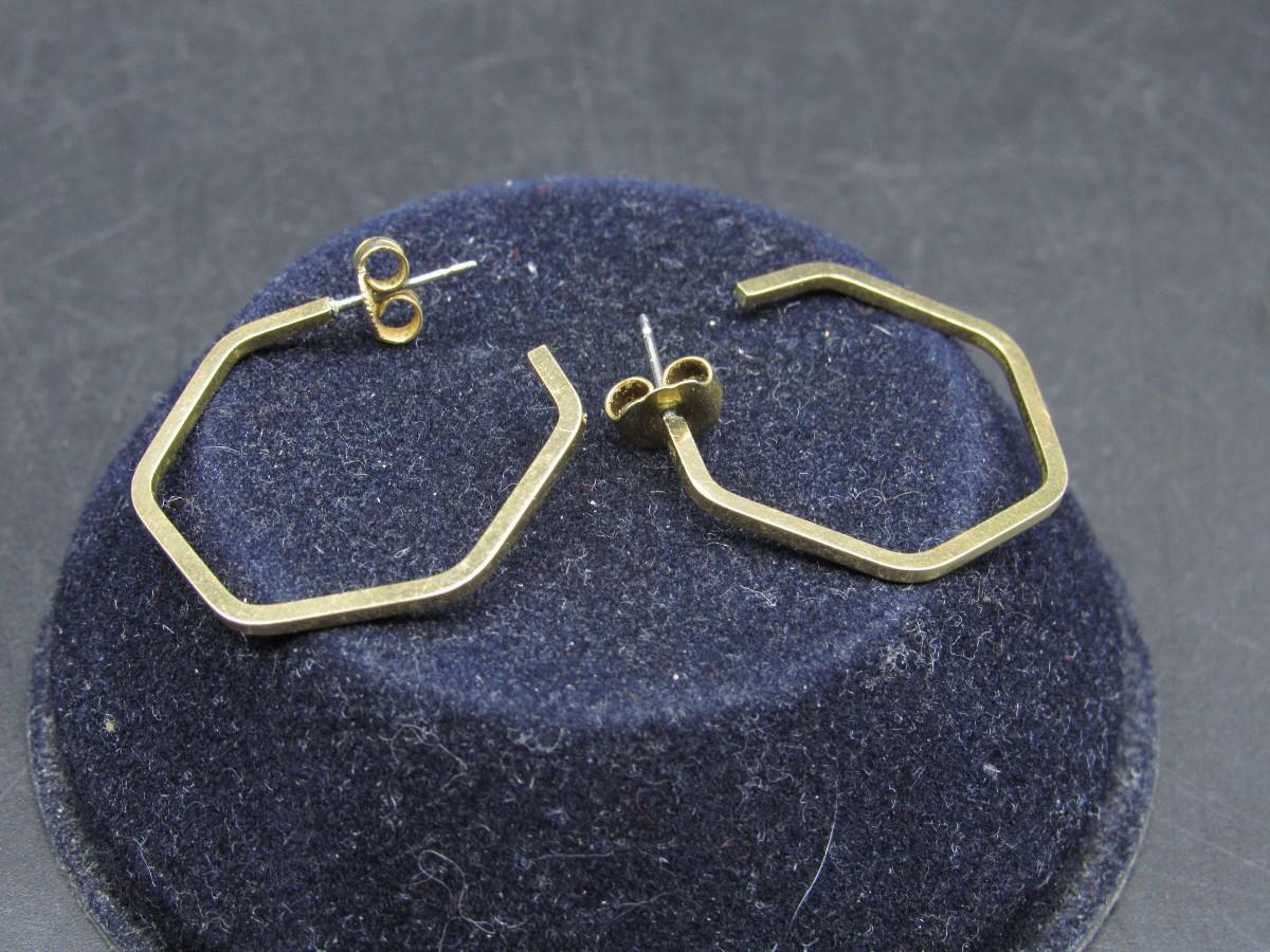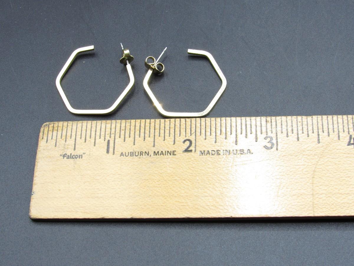 Retro Hexagon Gold Tone Shaped Hoop Earrings