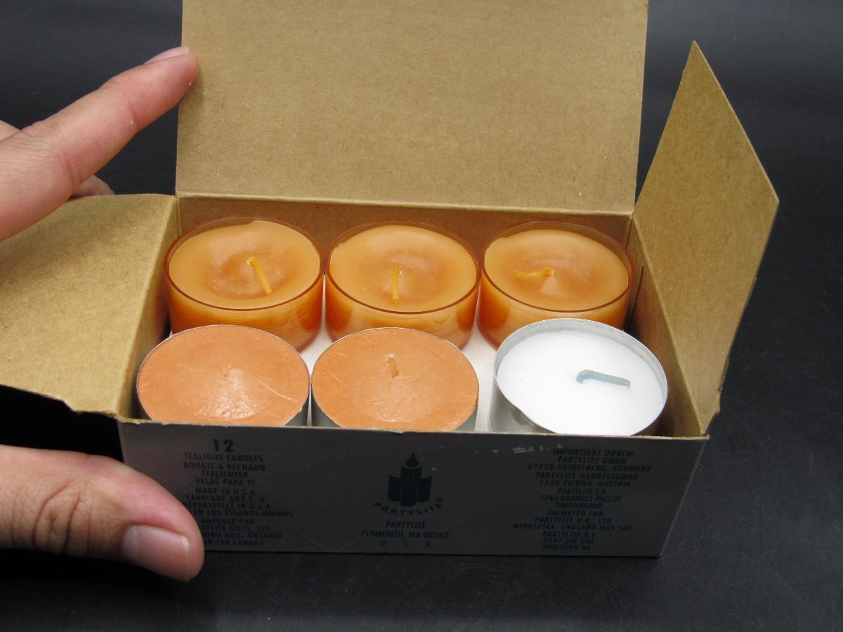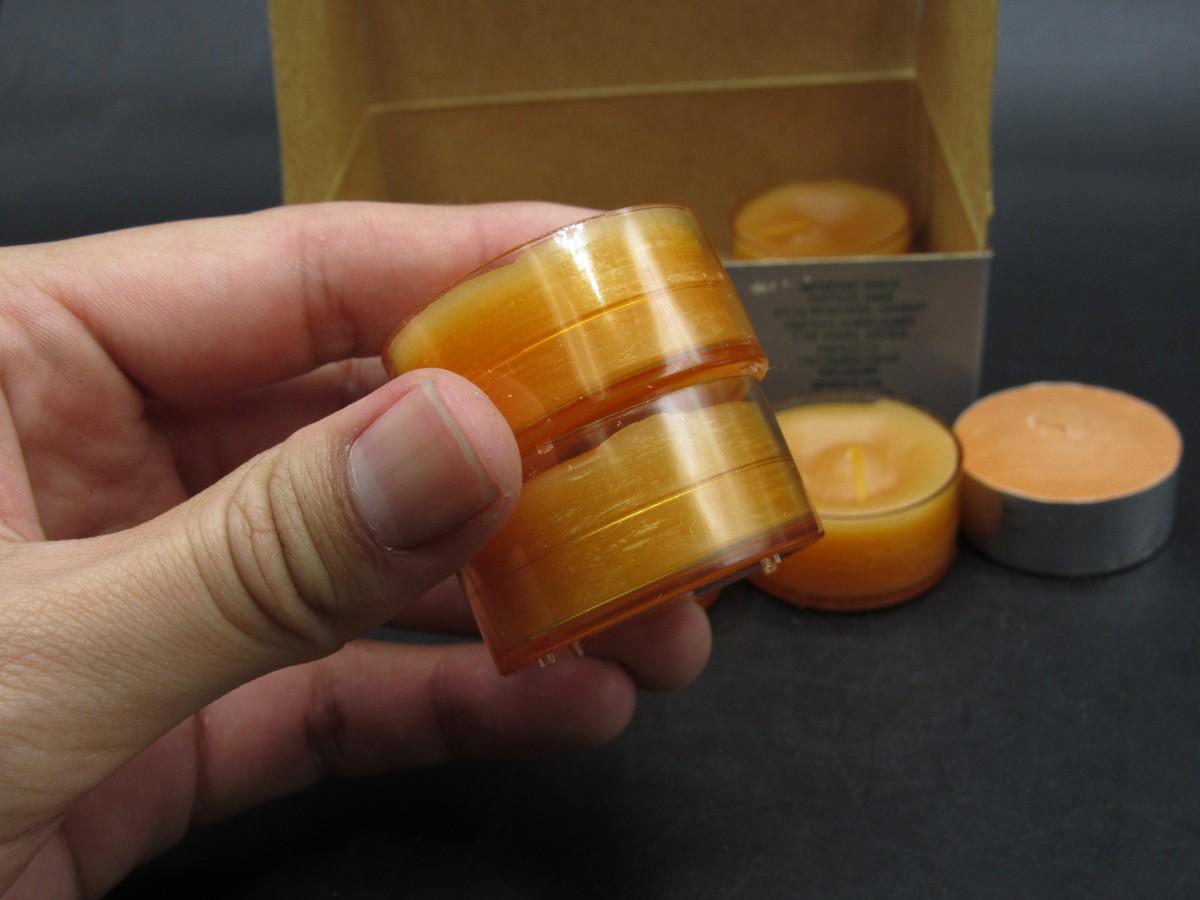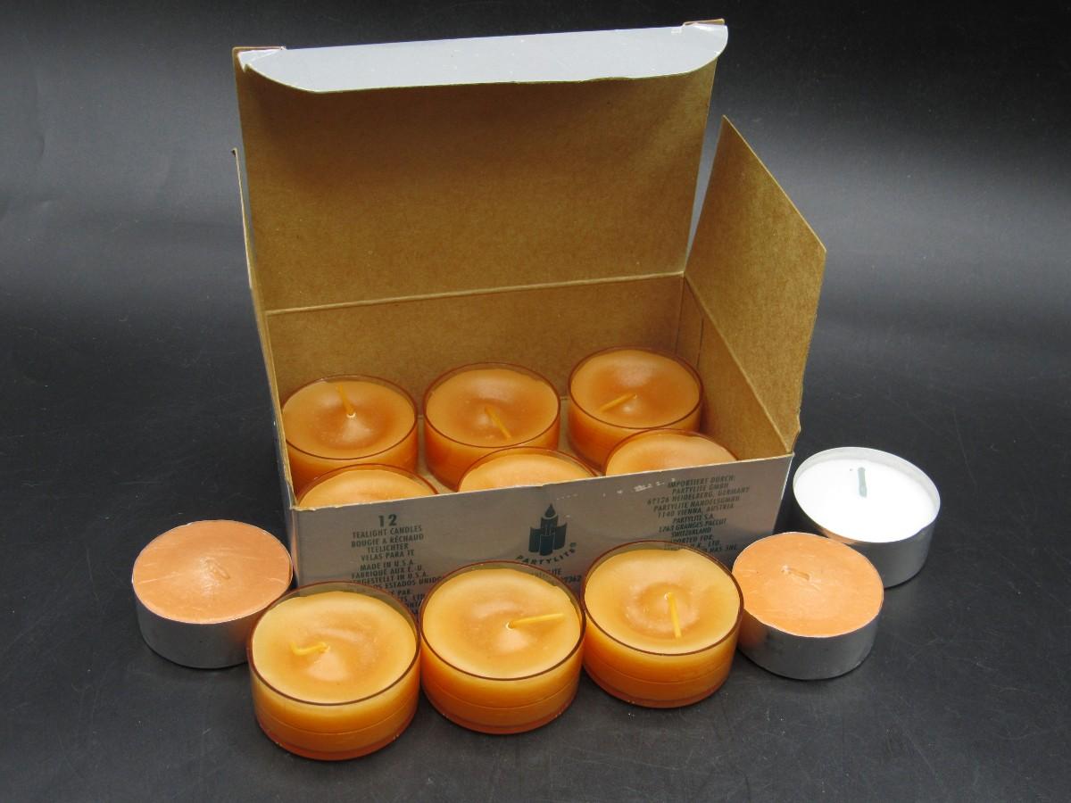 Comes with 9 pumpkin spice tealight candles, and the rest of the tealight candles are normal and not part of the original set. All in ready to use condition!