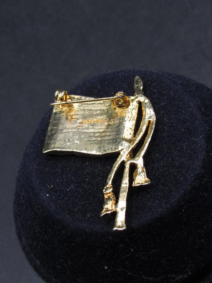 There is no significant damage to the pin and is in good collectible or wearable condition. Check pictures for more details and sizing.